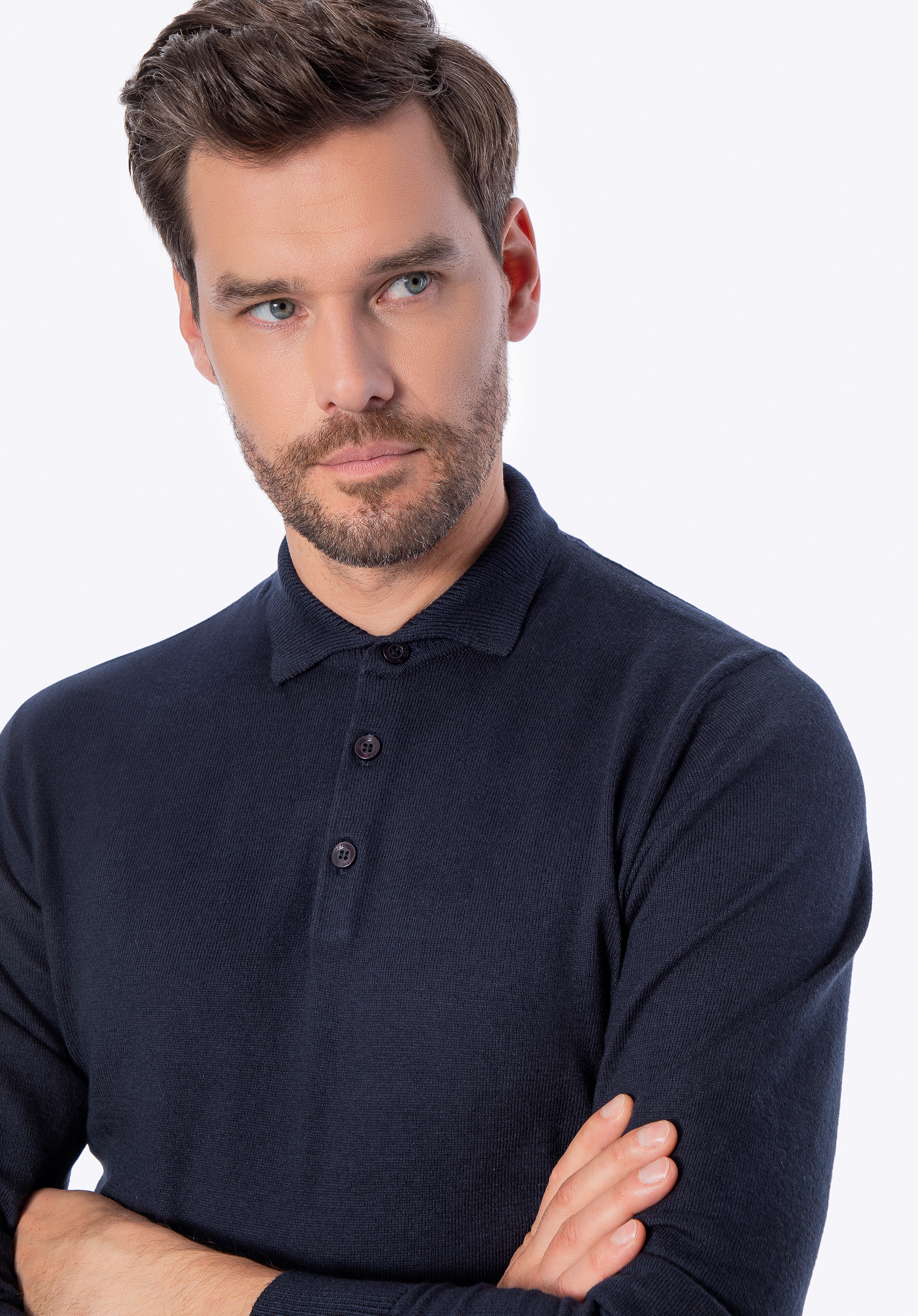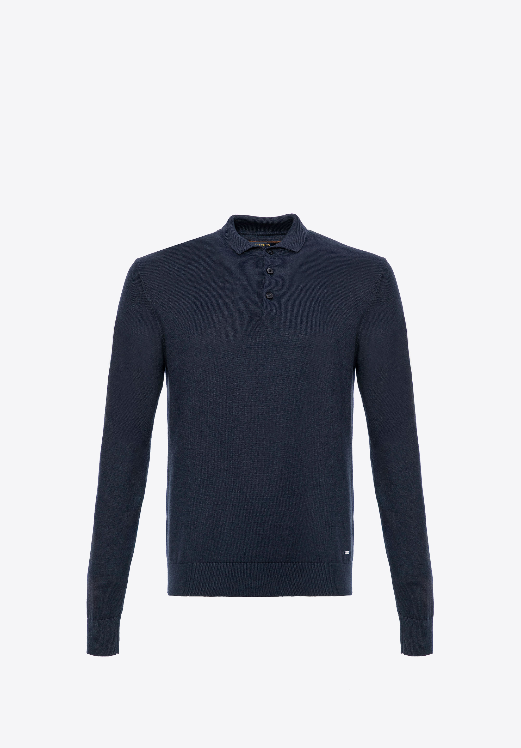 Férfi pamut és kasmír keverék pulóver Szín: sötétkék