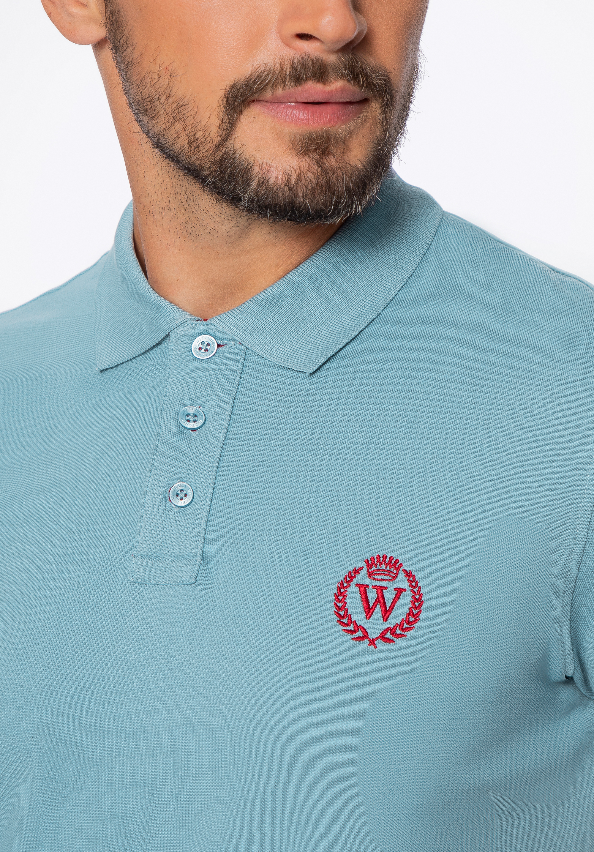 Ez a férfi galléros póló ötvözi az időtlen eleganciát és a modern stílust. 100% kiváló minőségű pamutból készült, így egész napos kényelmet és szabad mozgást biztosít neked – bármilyen alkalomra is veszed fel. A klasszikus gallér és a gombos záródás elegáns részleteket ad a megjelenésedhez, így a póló tökéletesen mutat hétköznapi és igényesebb összeállításokban is. A gallér színes betétei és a logó frissességet visznek az összképbe, és kiemelik az egyéni stílusodat. A megjelenést a babérlevéllel és koronával hímzett „W” logó teszi teljessé. Az alsó dupla varrás gondoskodik a tartósságról, hogy a póló sokáig megtartsa formáját.