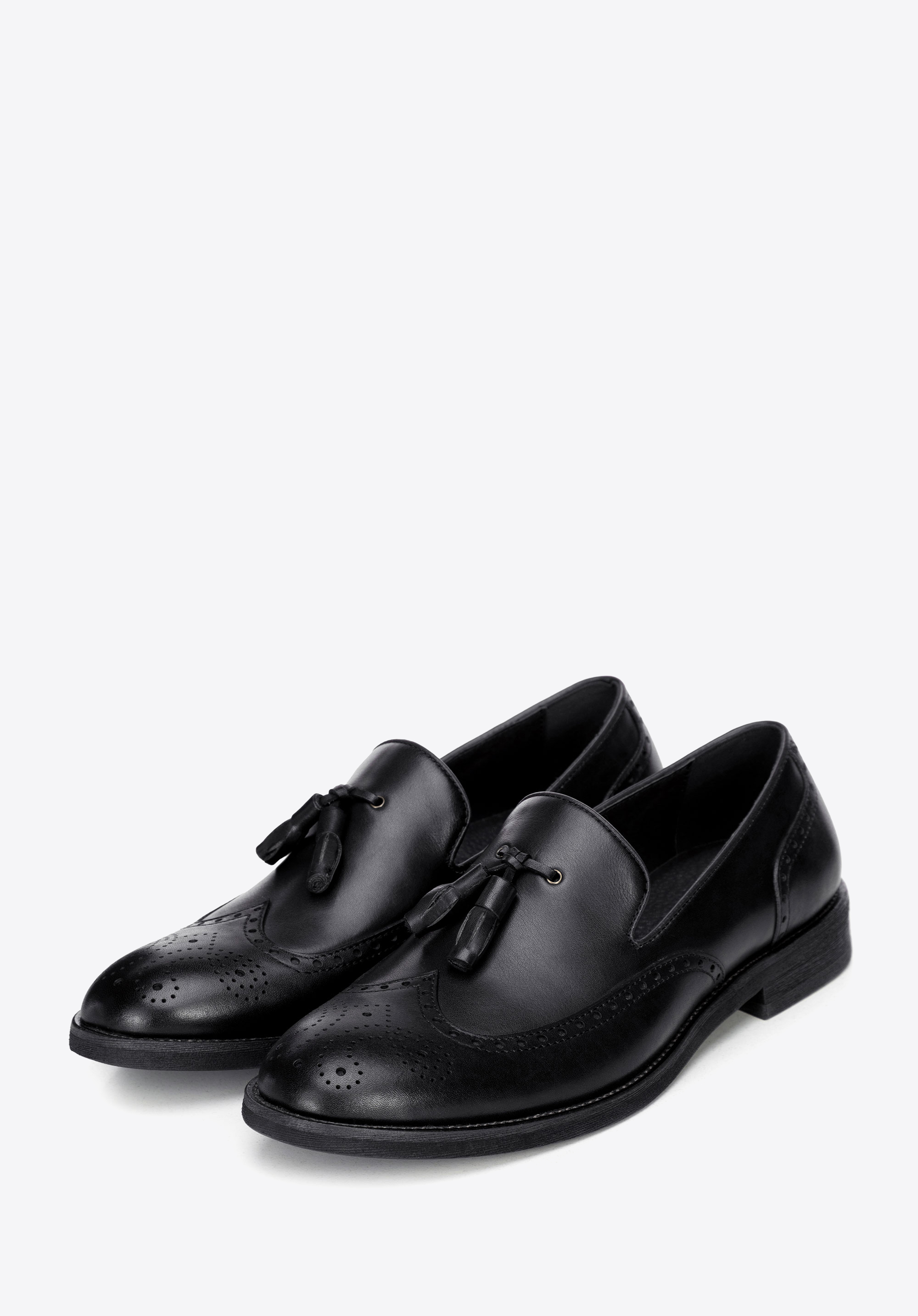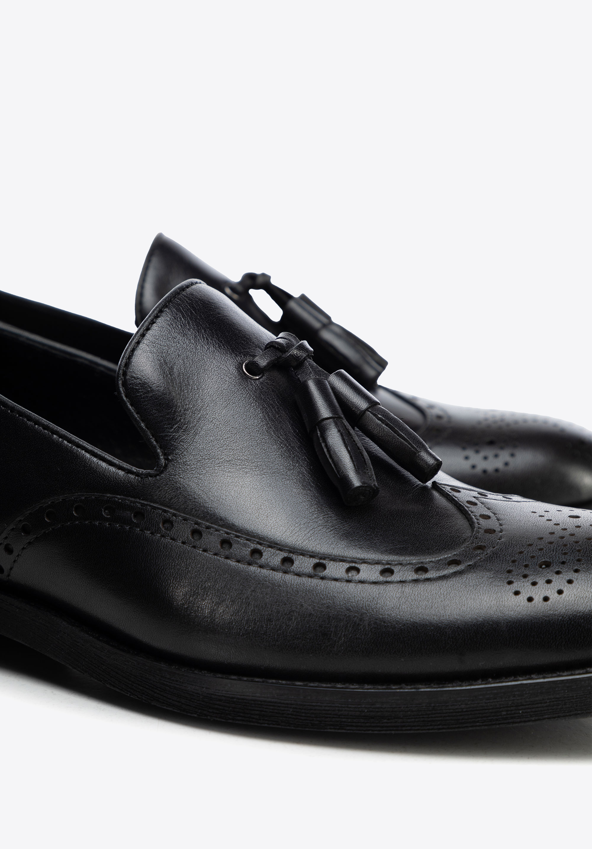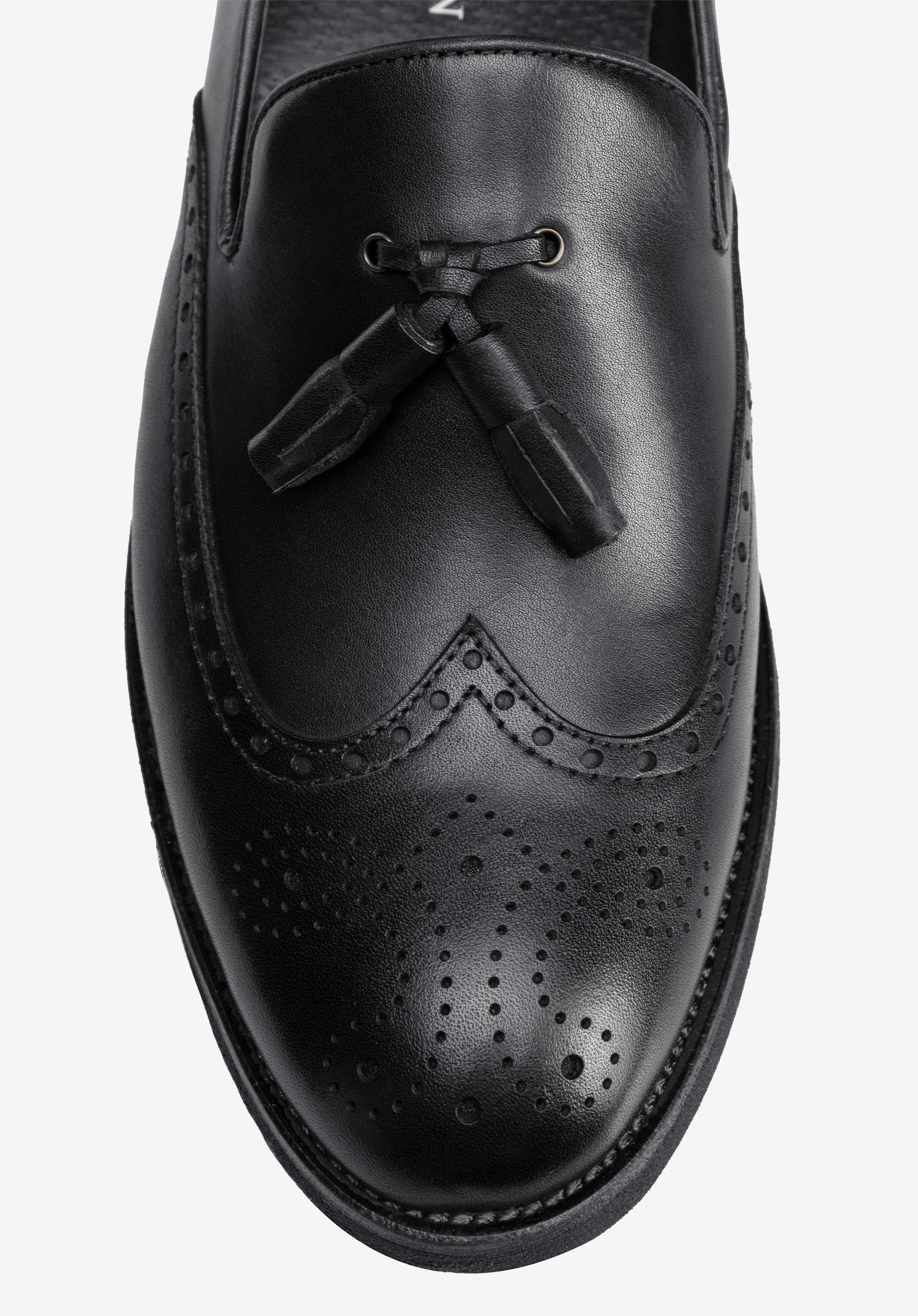 Elegáns mokaszin, amely ötvözi a tökéletes illeszkedést és finom díszítőelemeket ötvözik. A perforációknak köszönhetően a cipők a klasszikus és a modern stílust ötvözik, a természetesbőr pedig minden lépésnél kivételes kényelmet biztosít. Ideálisak mindennapi öltözékekhez, amelyek finom, de elegáns jellegükkel tűnnek ki.