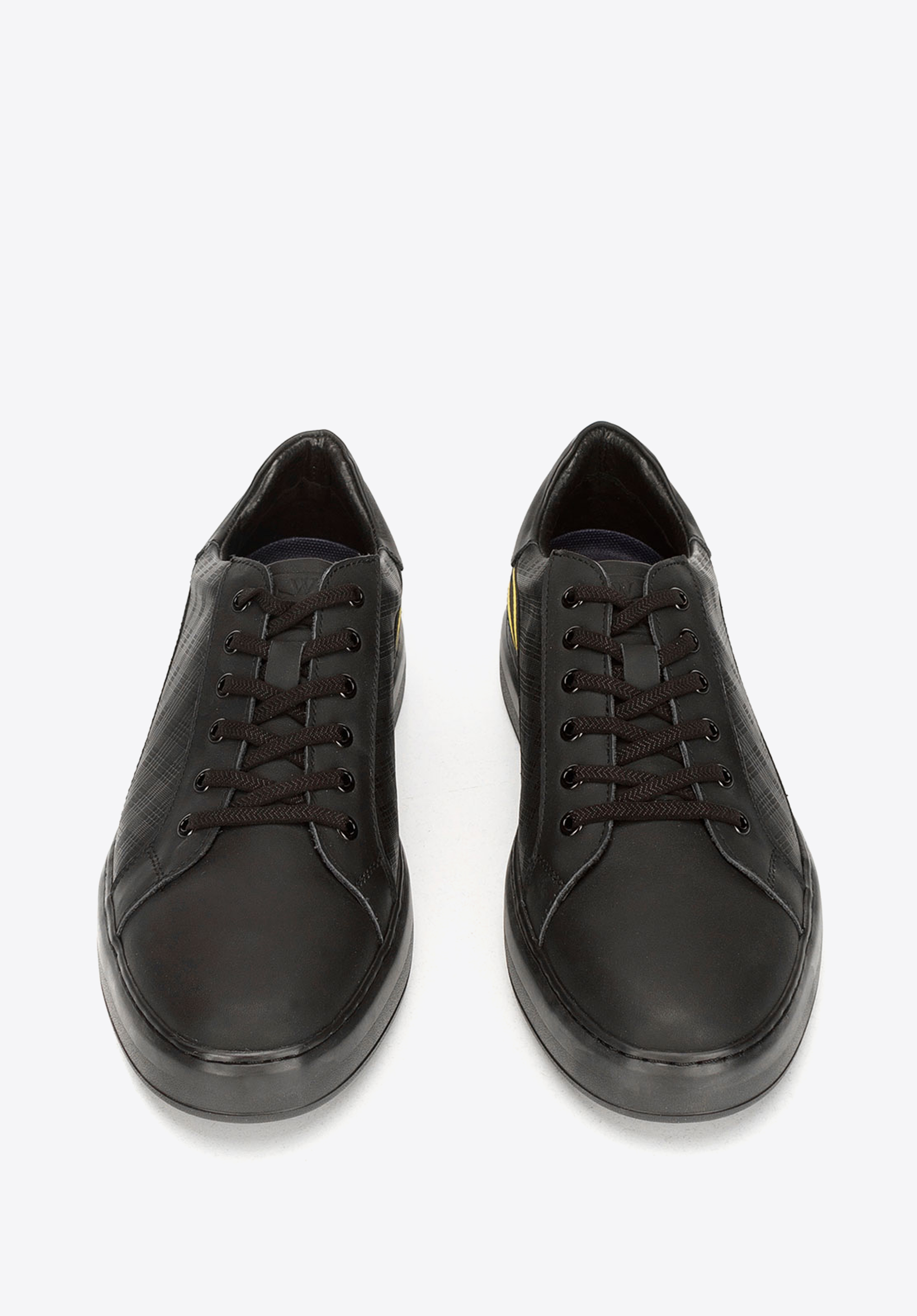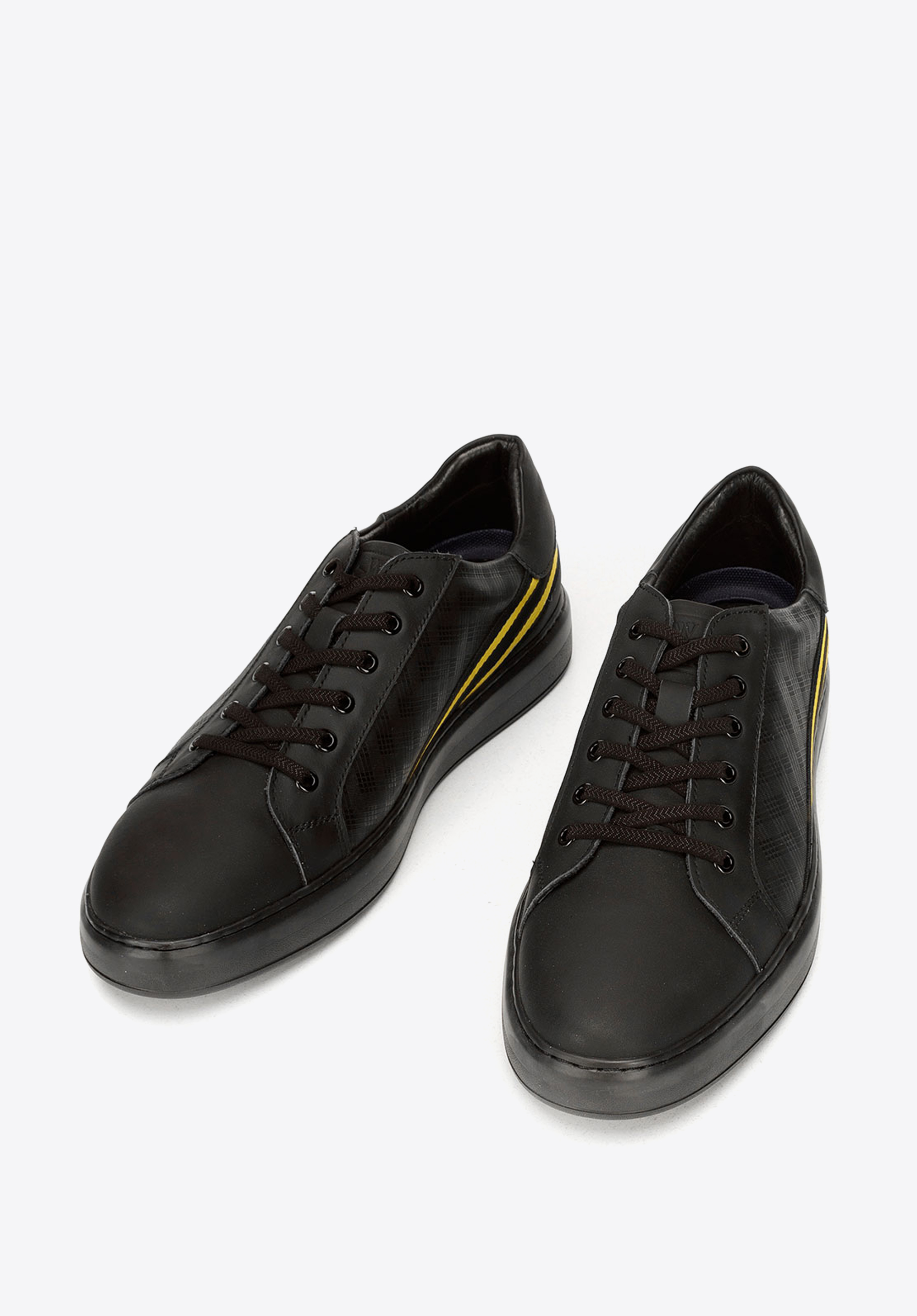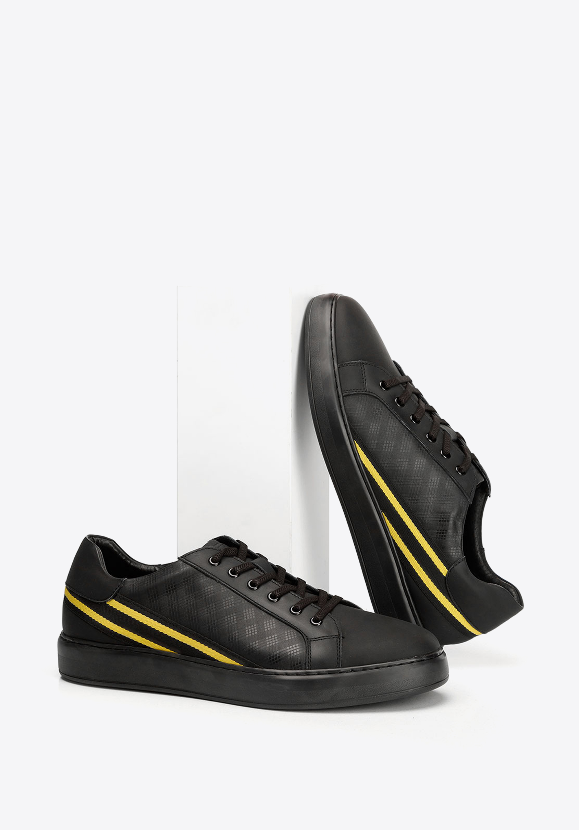 Férfi sneaker bőrből kontraszt csíkokkal fekete sárga