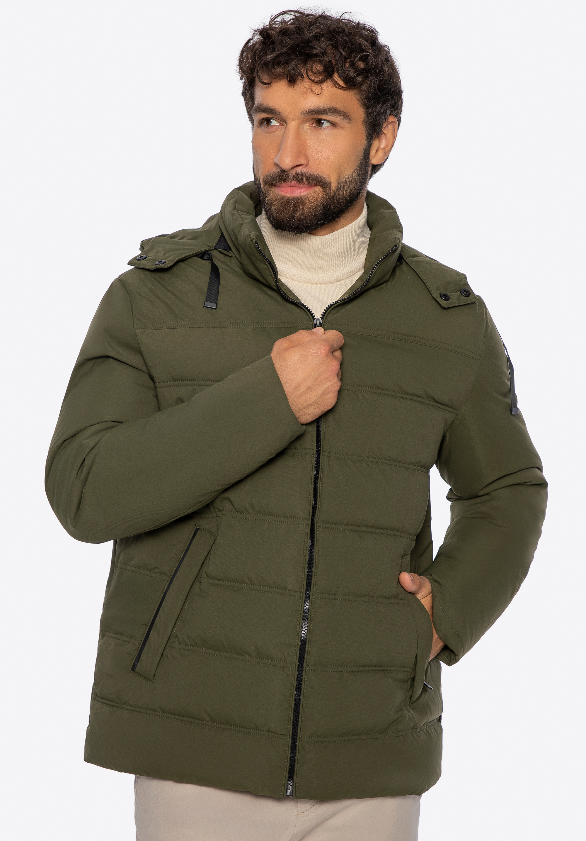 Ez a férfi steppelt kabát tökéletes választás az őszi-téli szezonra, ötvözve a kényelmet, a funkcionalitást és a modern stílust. Tartós poliészterből készült, könnyű, tartós és kényelmes viseletet garantálva hideg időben. A steppelt kialakítás egyenletes szigetelést biztosít, míg az állítható, húzózsinóros kapucni hatékony védelmet nyújt a szél és a hideg ellen. A praktikus zsebek kényelmessé és funkcionálissá teszik ezt a kabátot bármilyen helyzetben.