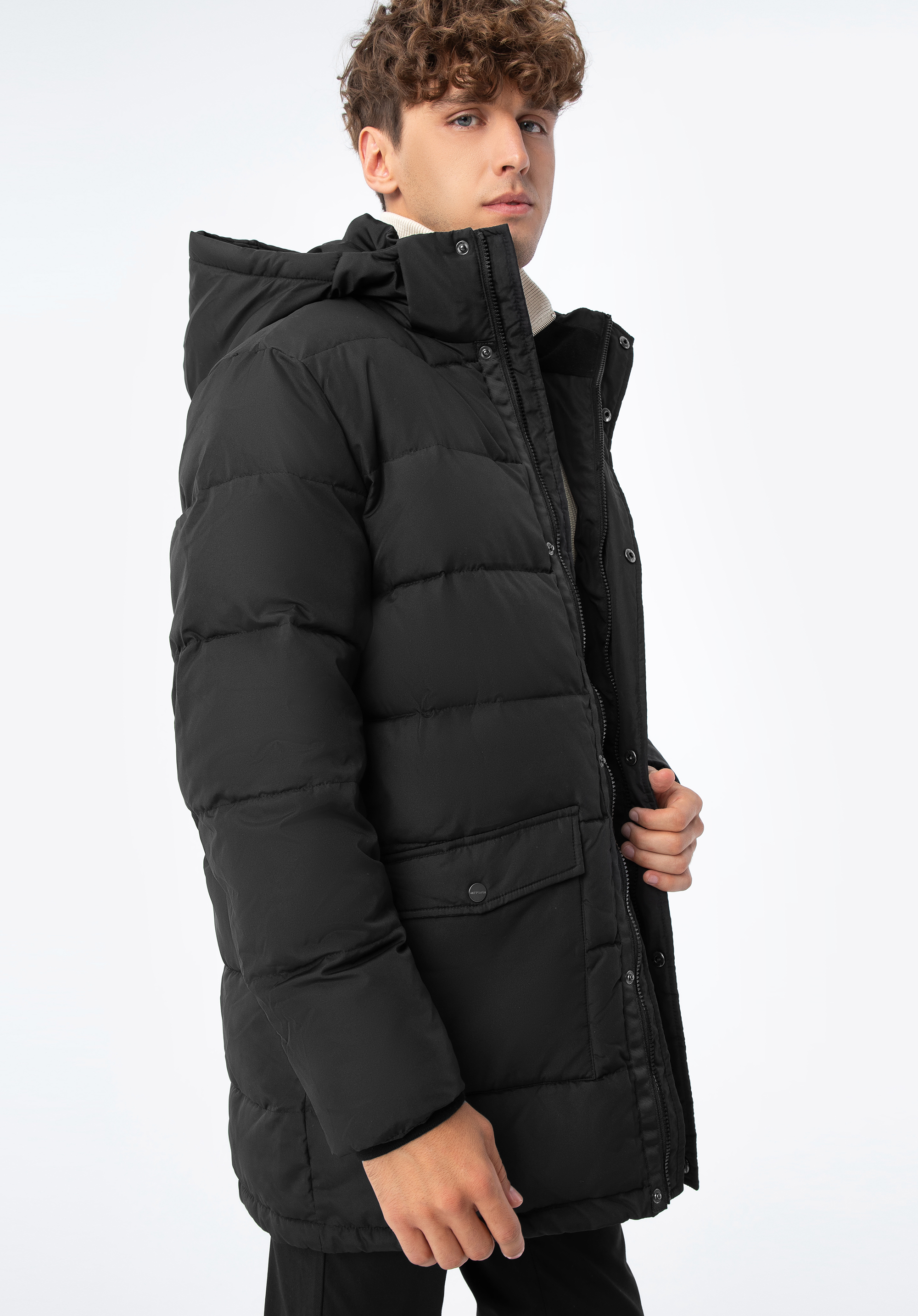 Univerzális és klasszikus steppelt téli kabát. Egyszerűségének köszönhetően tökéletes lesz a hétköznapi szettekhez - farmerhez vagy kordbársony nadrághoz. Praktikus bélelt kapucnival rendelkezik, tépőzárral. A kabát oldalán két zseb található, amelyekbe elrejtheted kezeidet, valamint a telefonodat vagy a pénztárcádat. A kabát kiváló minőségű, könnyen kezelhető poliészterből készült, és puha béléssel rendelkezik a kényelem és a melegség érdekében. Ez a férfi téli kabát kapucnival egy bevált modell az őszi és téli szezonra.