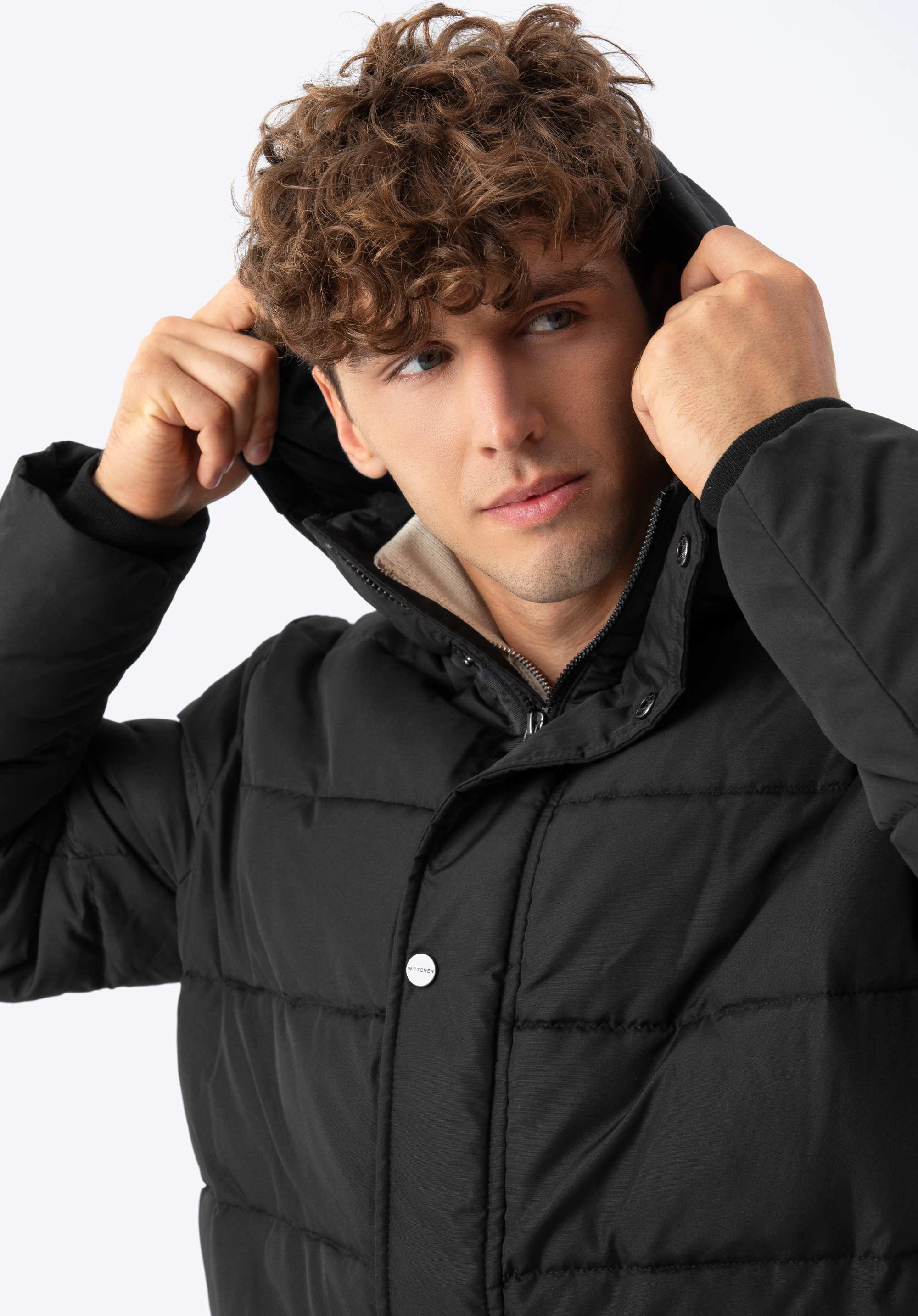 Férfi kabát kapucnival.