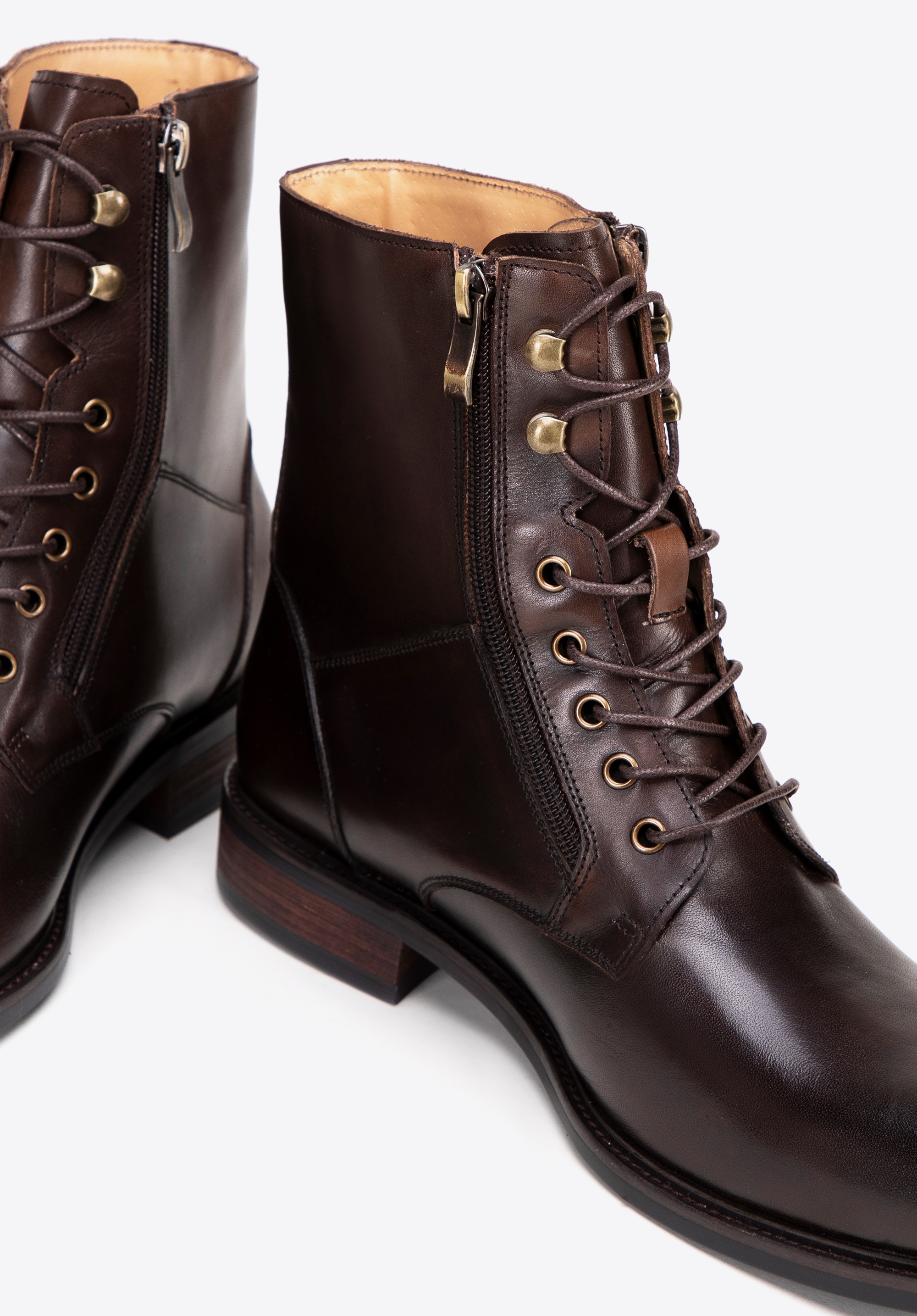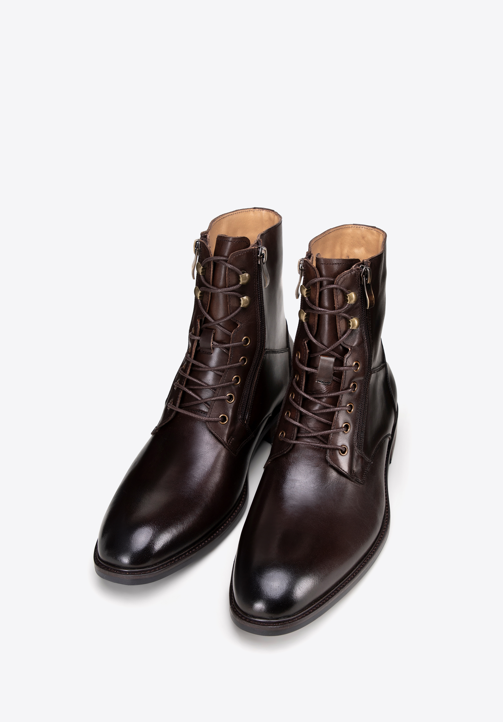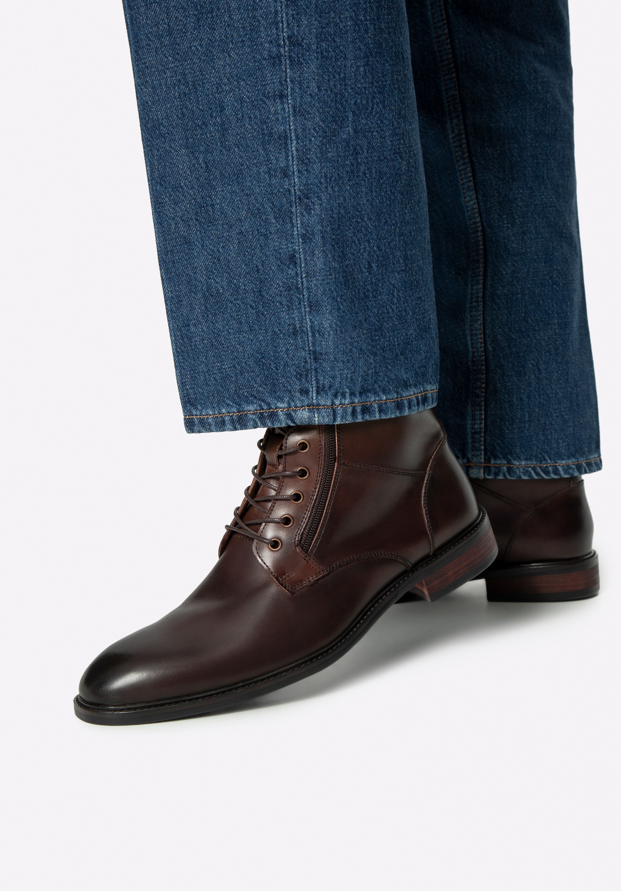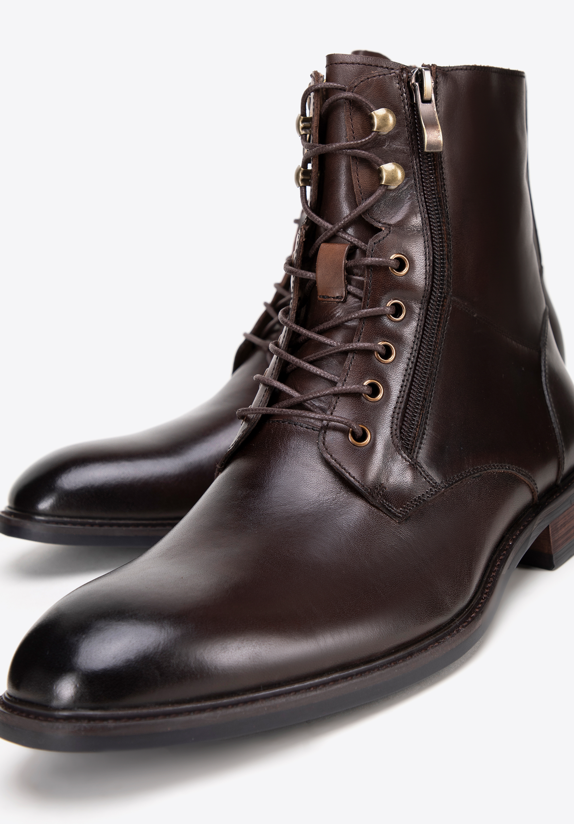 Természetes bőrből készült férfi bakancsaink az elegancia és a kényelem megtestesítői. Fűzős és ráadásul cipzáras, mandula alakú orrmerevítővel, tökéletesen kiemelik a klasszikus stílust, miközben maximális kényelmet biztosítanak. A cipő belseje, beleértve a talpbetétet és a bélést is, kiváló minőségű bőrből készült, ami garantálja a kényelmet a mindennapi viselet során.