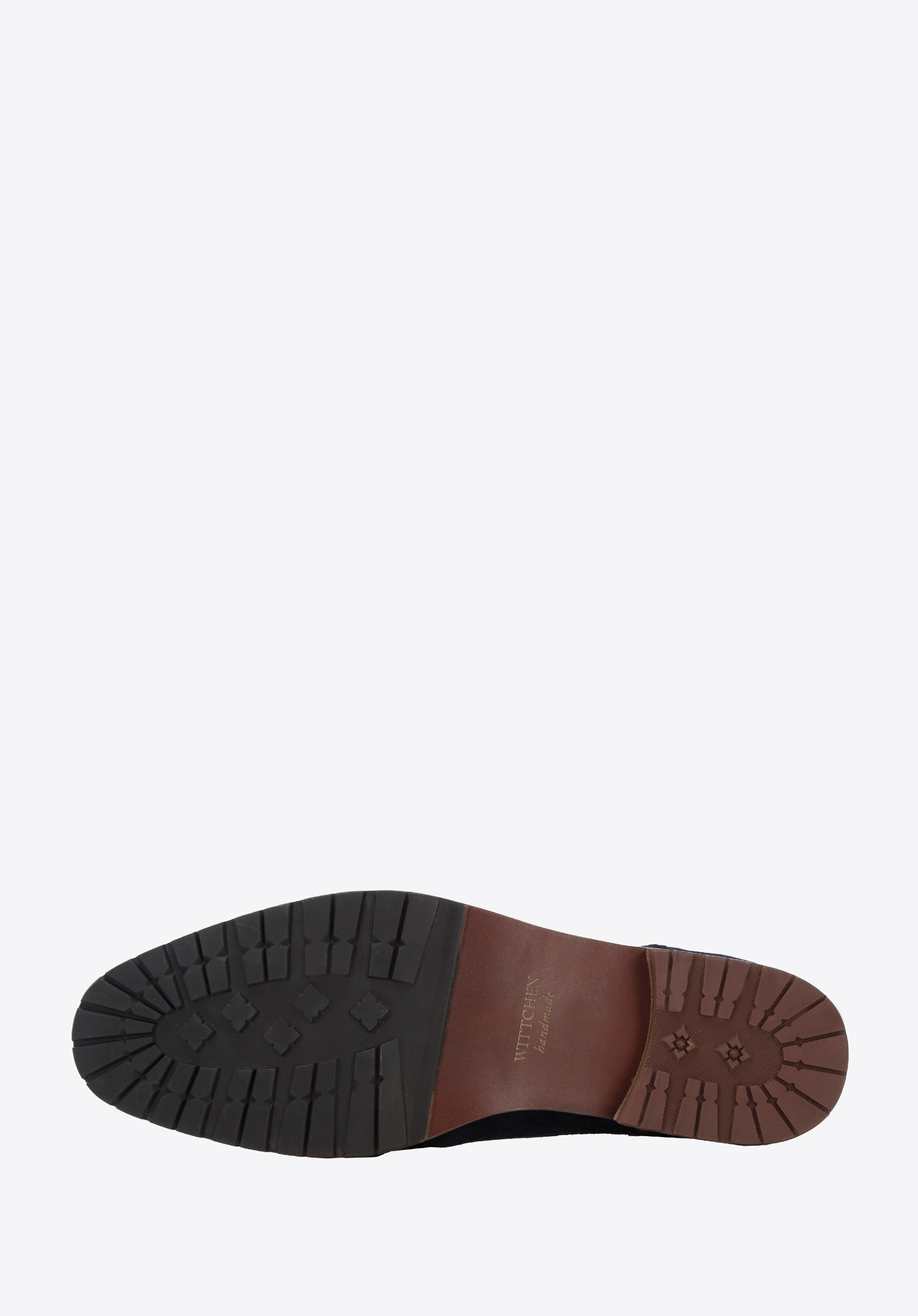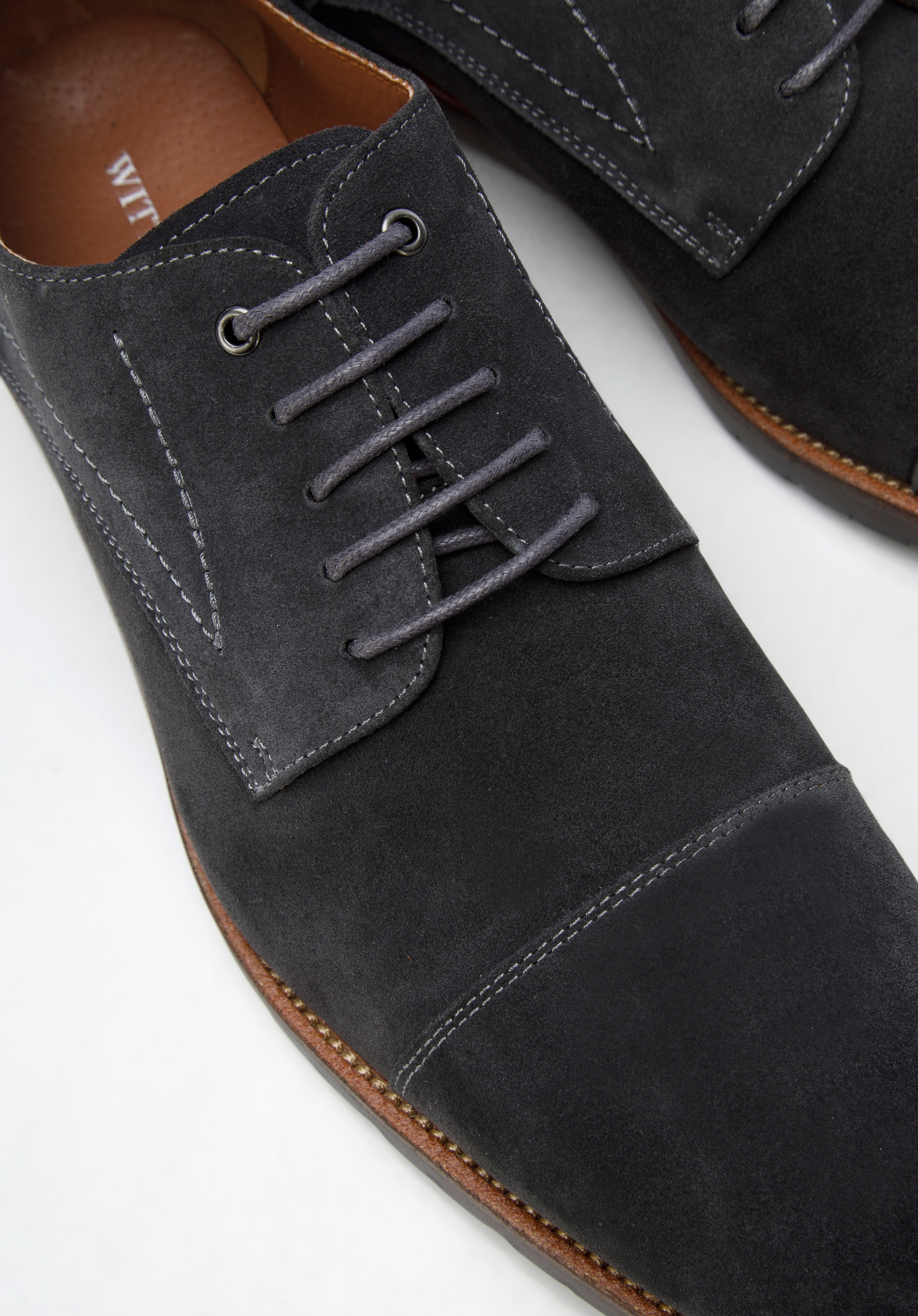 Férfi velúrbőr derby díszes szegéllyel sötét szürke