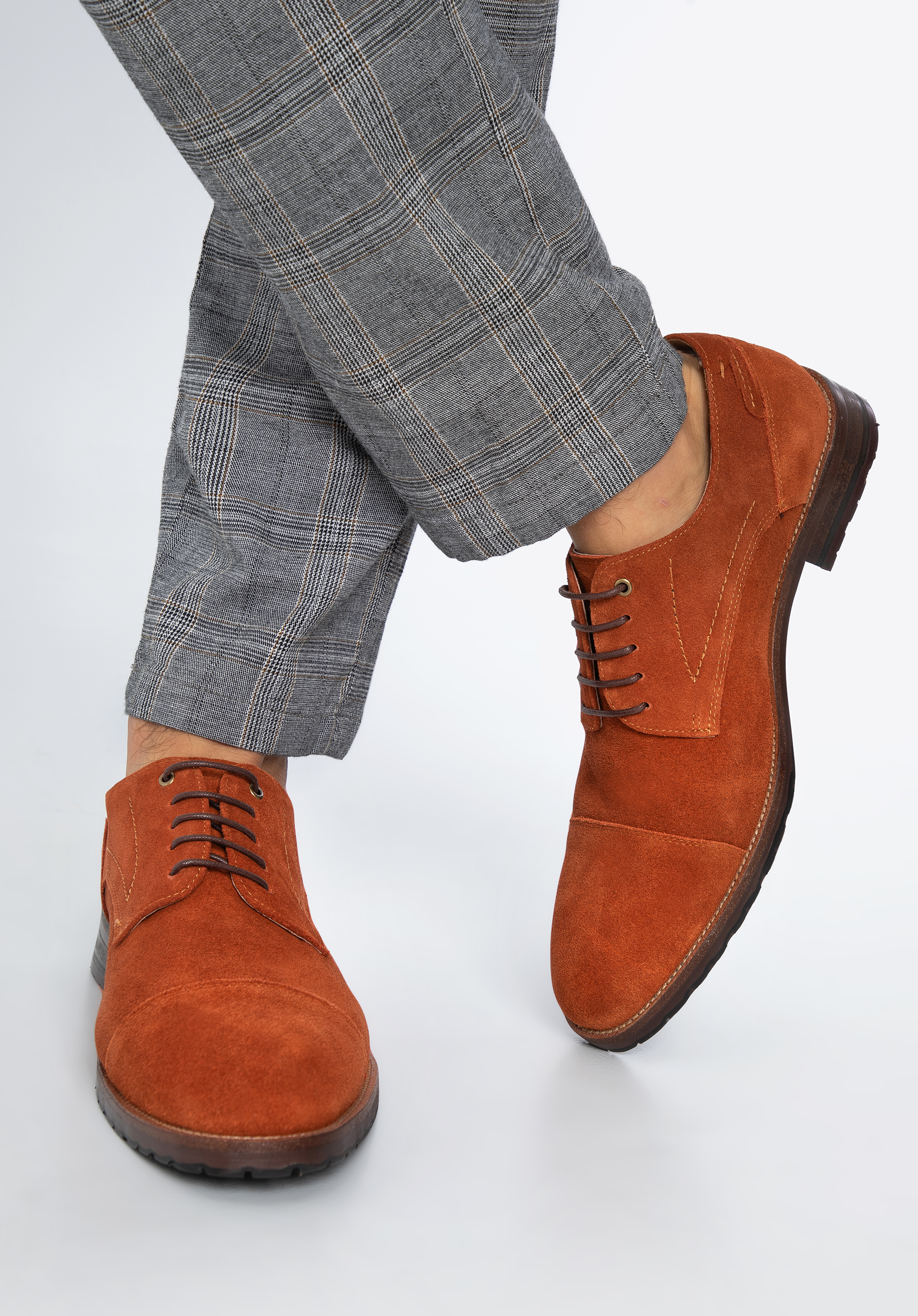 Férfi velúrbőr derby díszes szegéllyel tégla vörös