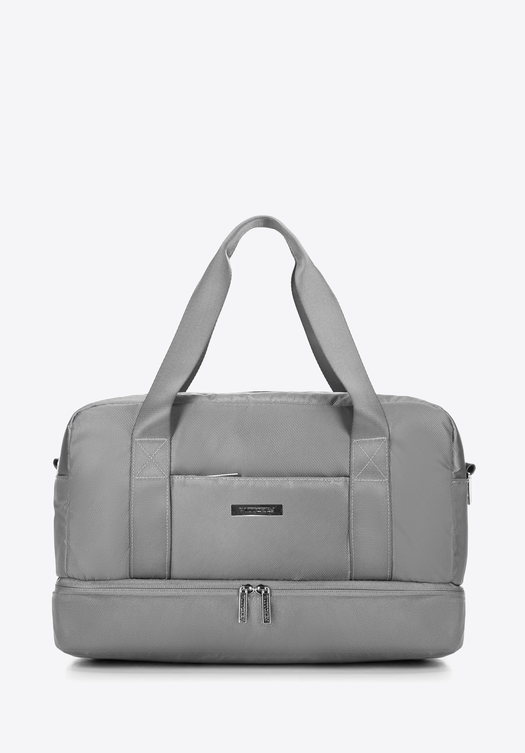 A táska méretei miatt ingyenes kézipoggyászként felvihető a Wizz Air és a Ryanair járataira. Könnyű, praktikus táska, amely új, kedvenc utazótársad lesz. Ideális rövid utazásra ingyenes kézipoggyászként, de az uszodába vagy a fitneszterembe is tökéletes megoldás. Kicsi, így nem fog túlterhelni, a legkisebb csomagtartóba is könnyedén behelyezhető. Ennek ellenére mindent tartalmaz majd, ami egy hétvégi kiránduláshoz vagy edzéshez kell. Két fő rekesz és egy külön rekesz a táska alján segít a rend fenntartásában, valamint számos kis zsebe pedig tökéletes az apróbb tárgyak számára. A bordázott, enyhén fényes felülete foltálló, és gyorsan megszárad, ha vízzel érintkezik.