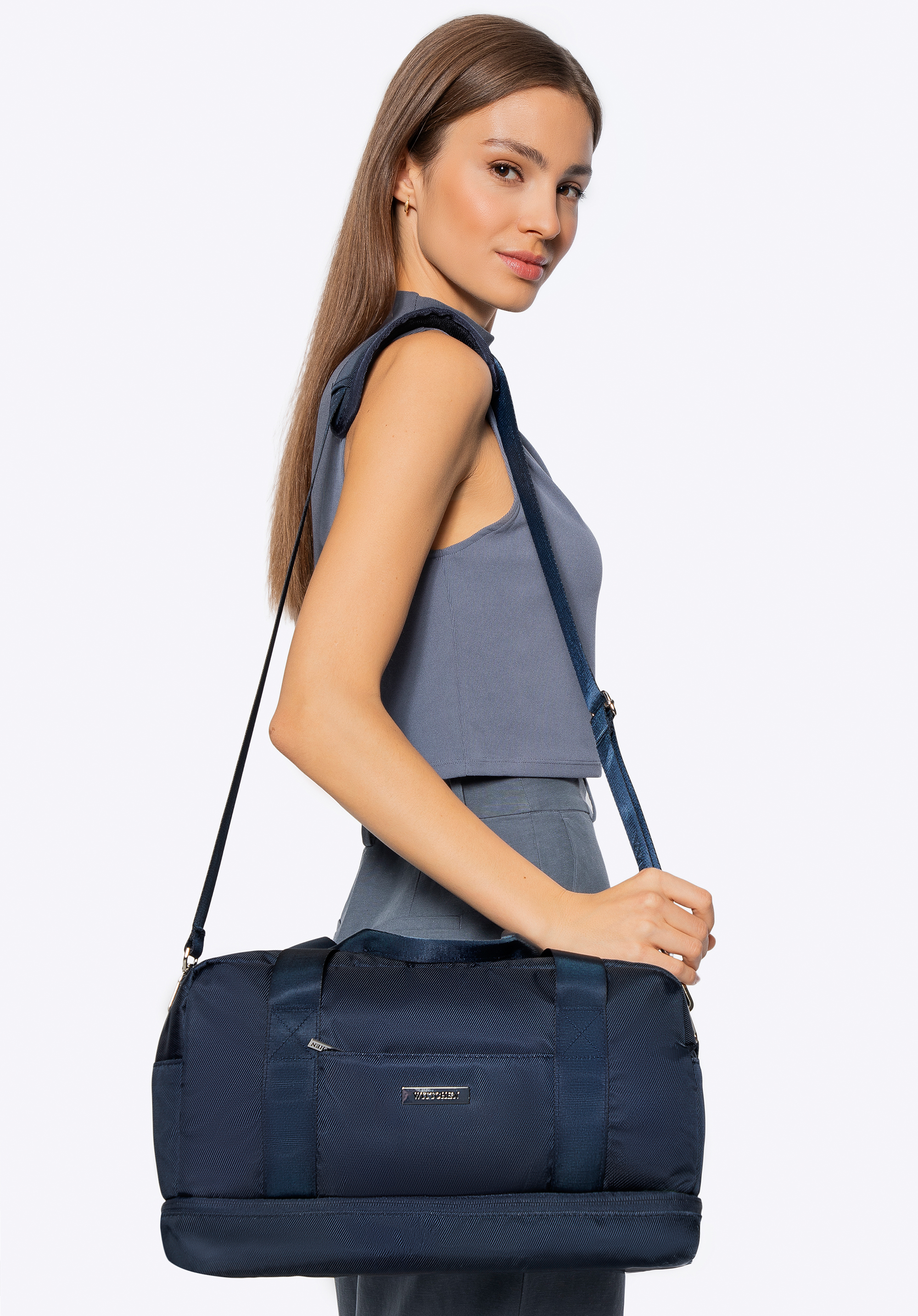 A táska méretei miatt ingyenes kézipoggyászként felvihető a Wizz Air és a Ryanair járataira. Könnyű, praktikus táska, amely új, kedvenc utazótársad lesz. Ideális rövid utazásra ingyenes kézipoggyászként, de az uszodába vagy a fitneszterembe is tökéletes megoldás. Kicsi, így nem fog túlterhelni, a legkisebb csomagtartóba is könnyedén behelyezhető. Ennek ellenére mindent tartalmaz majd, ami egy hétvégi kiránduláshoz vagy edzéshez kell. Két fő rekesz és egy külön rekesz a táska alján segít a rend fenntartásában, valamint számos kis zsebe pedig tökéletes az apróbb tárgyak számára. A bordázott, enyhén fényes felülete foltálló, és gyorsan megszárad, ha vízzel érintkezik.