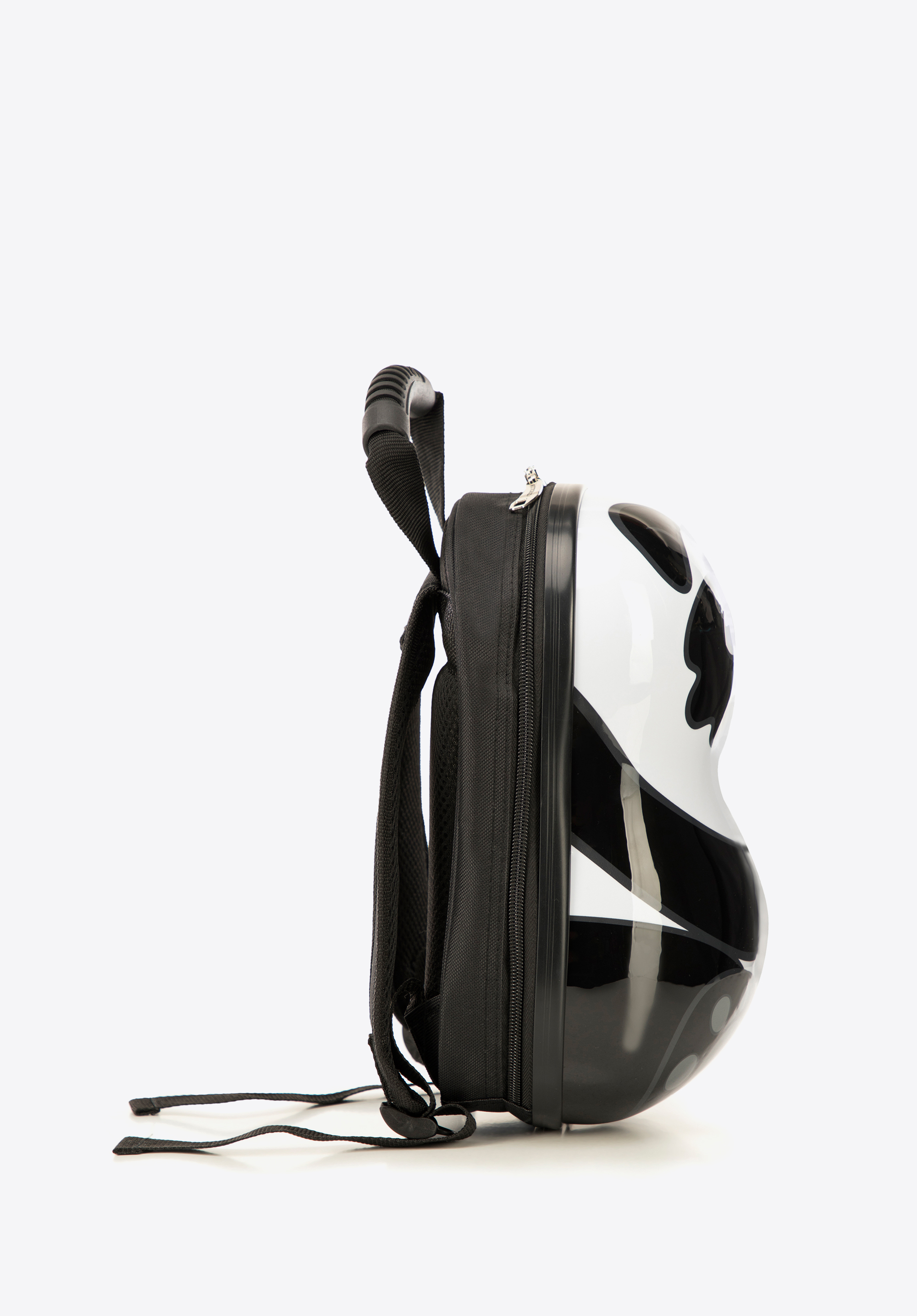 Kis hátizsák gyermekeknek, nagyon tartós ABS műanyagból, belül poliészter béléssel. A hátizsák tetején praktikus fogantyú található, mellyel kézben is könnyen hordozható. Az elején lévő pandamaci motívumoknak köszönhetően, ezt a hátizsákot minden kisgyermek szeretni fogja.