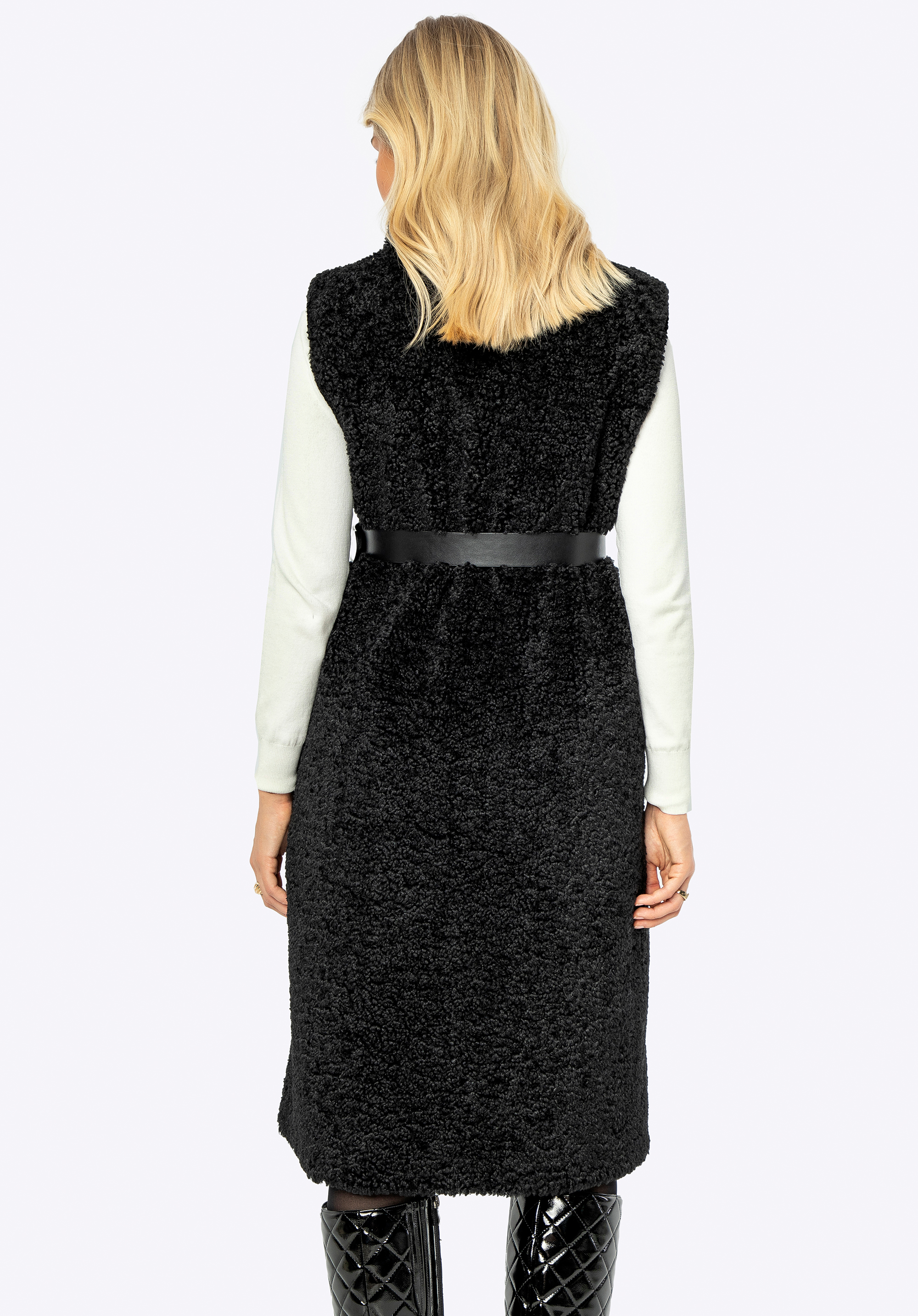 Tanácsunk: Kombináld a mellényt klasszikus, mintás ruhákkal és elegáns bokacsizmával.