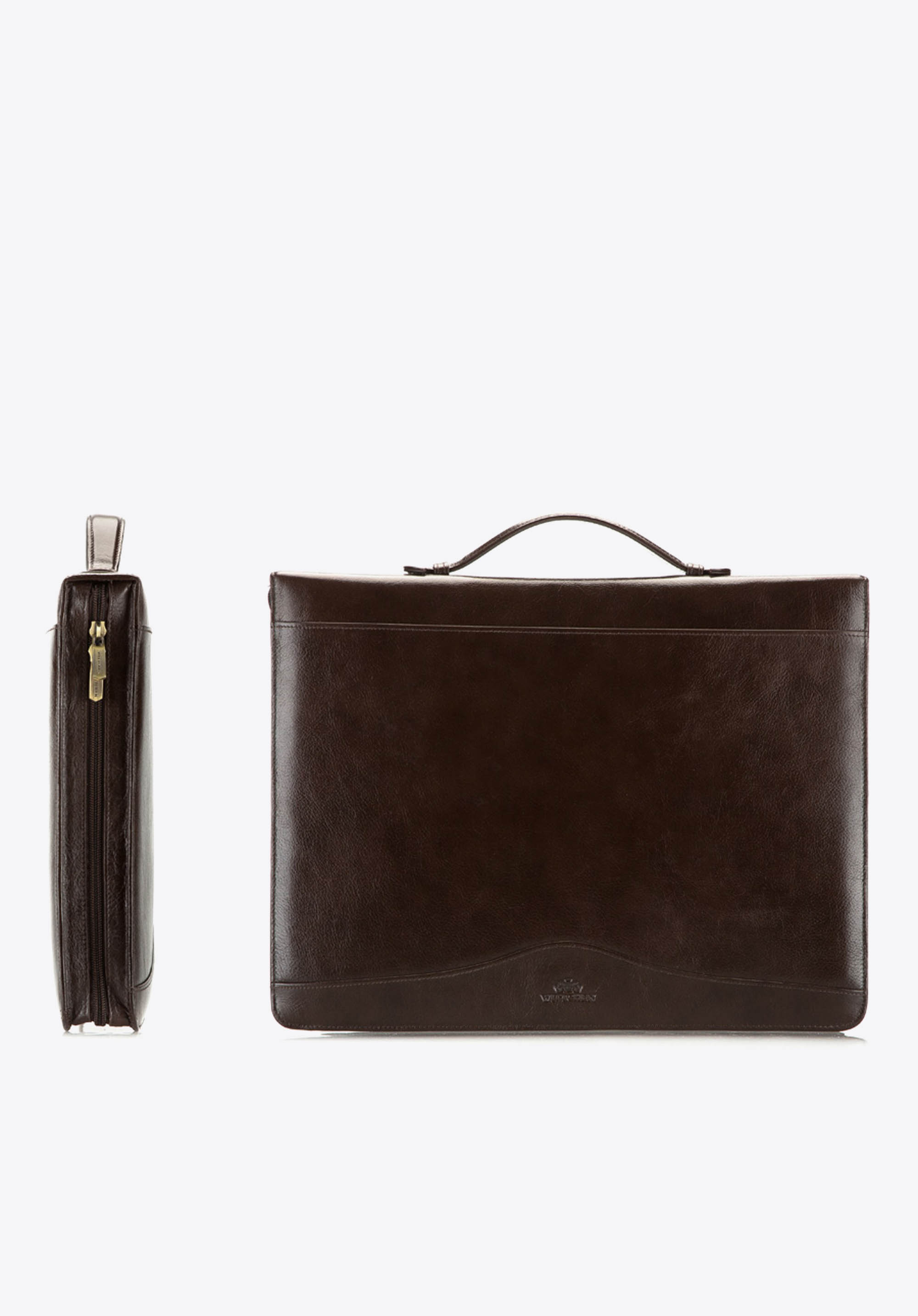 Bőr aktatáska egyszerű és modern designnal, kézzel készítve puha és tartós borjúbőrből. Elegáns és tágas - praktikus belső elrendezésű darab, minden irat és kellék elfér benne.