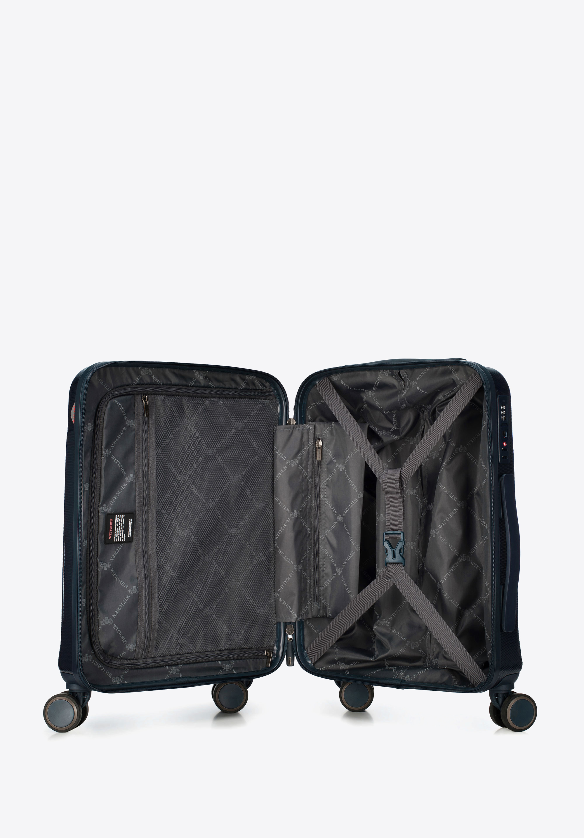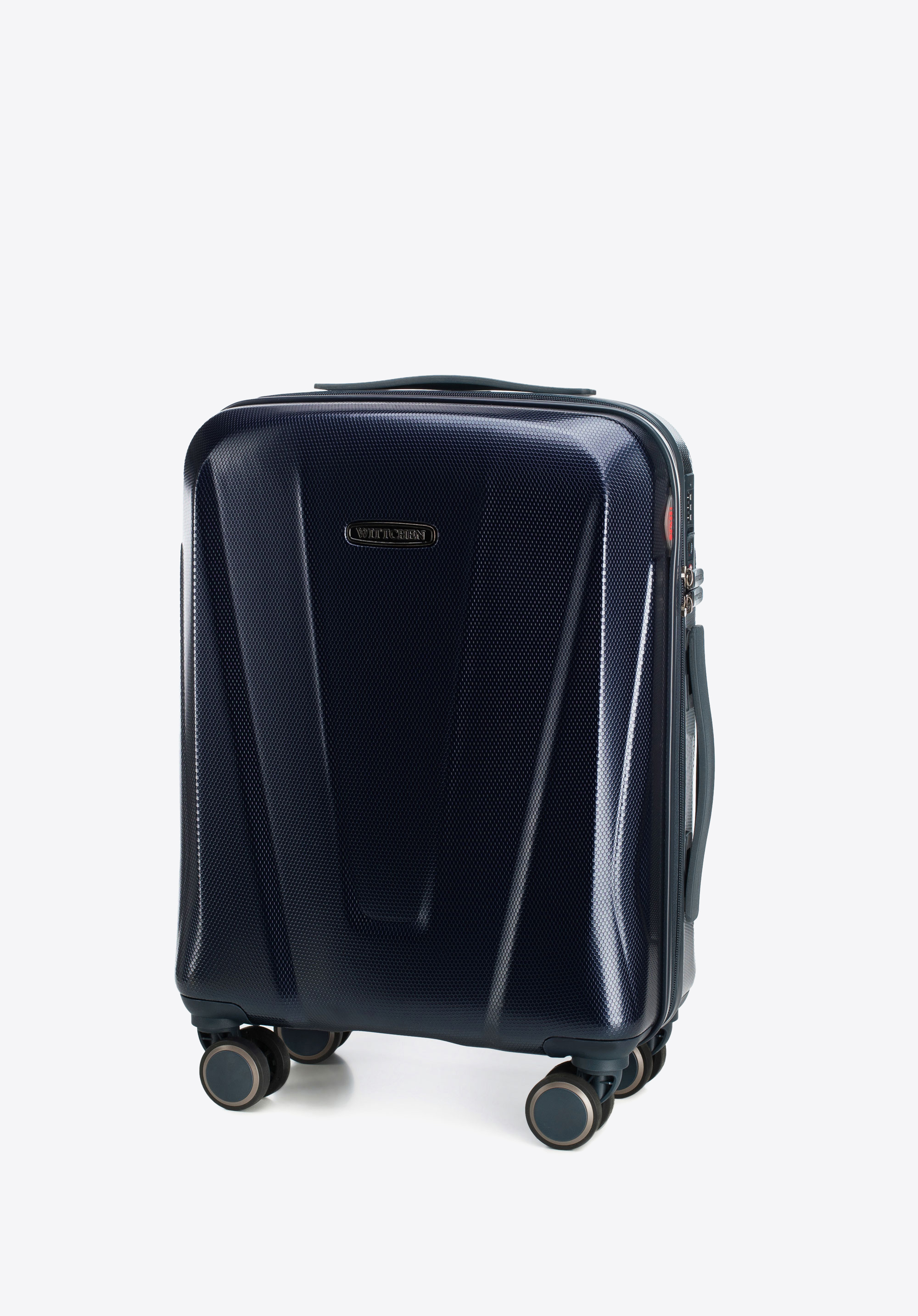 Kabin bőrönd nagyon tartós anyagból - méhsejtes mintával polikarbonátból készült. Számos funkcionális megoldással rendelkezik, pl: alumínium