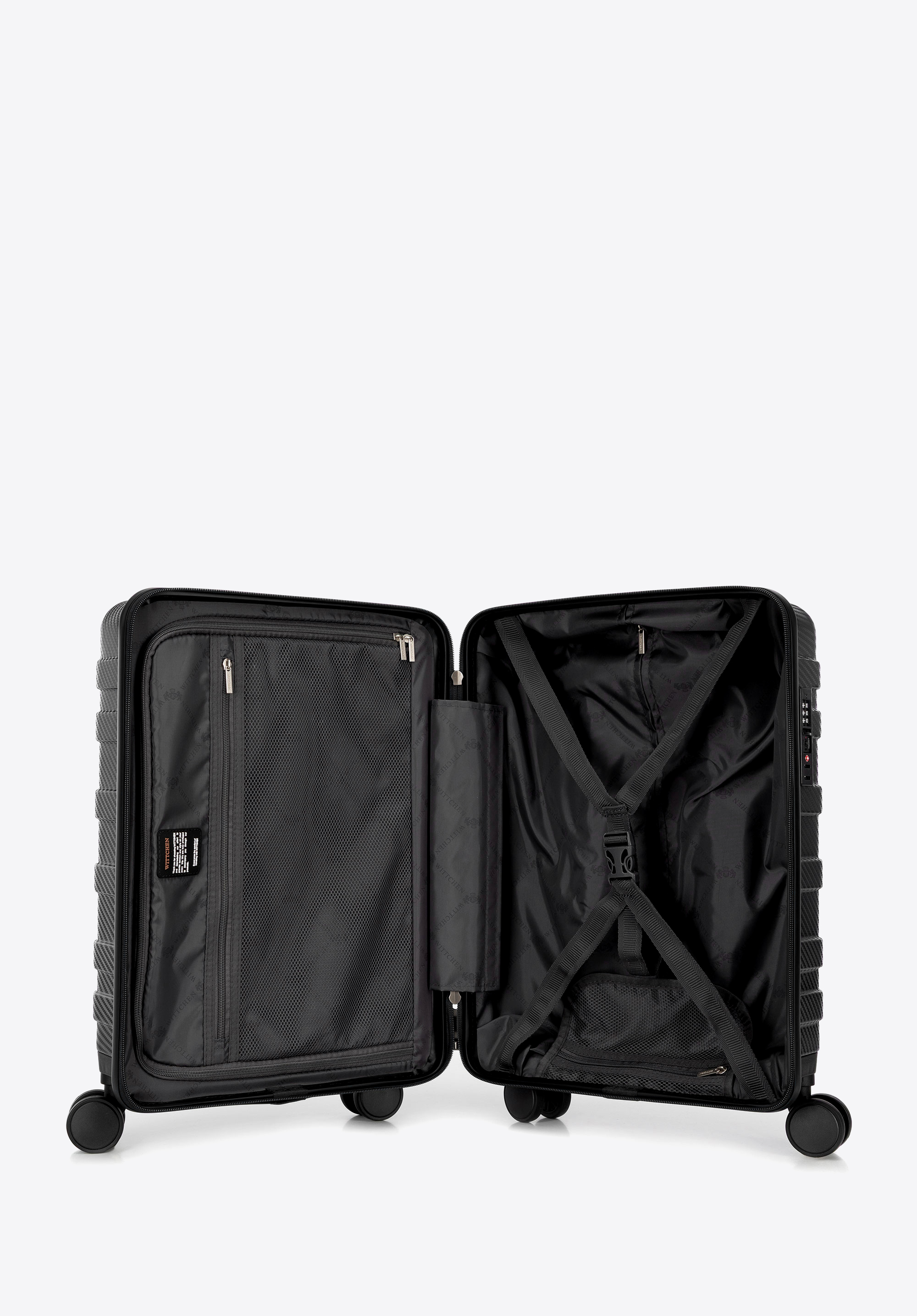- Fogantyú: A logóval ellátott praktikus fogantyú megkönnyíti a bőrönd kézi szállítását.