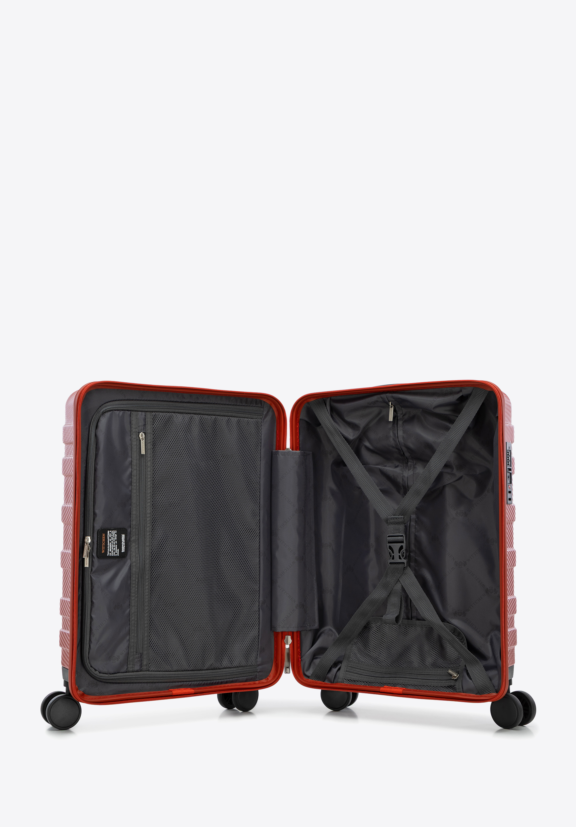 - Fogantyú: A logóval ellátott praktikus fogantyú megkönnyíti a bőrönd kézi szállítását.