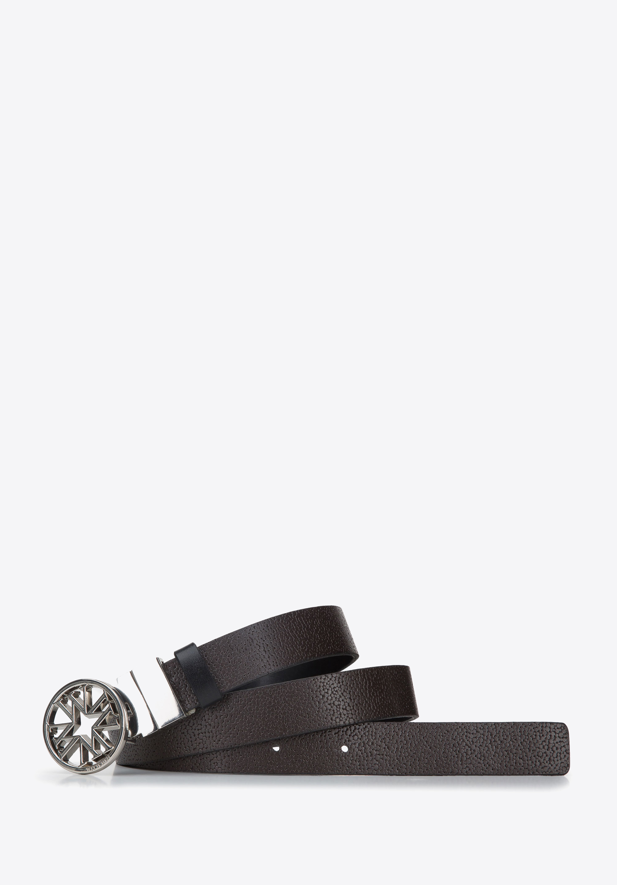 Egyben klasszikus és egyben rendkívül egyedi női öv, melyet tetszés szerint hordhatsz választott oldalán: matt vagy pöttyös dombornyomású. Az öv matt változata sima és elegáns, míg a dombornyomott változat stílusosan változatossá teszi ölözékedet. Egy szemet gyönyörködtető fém csat egészíti ki, az összefonódó "W" betűk motívumával. Ez a modell tökéletesen kiemeli a derekadat egy bő inggel, vagy pulóverrel viselve, de kedvenc nadrágoddal is remekül fog kinézni. Ez a monogramos csattal ellátott, kifordítható bőröv egy stílusos kiegészítő, amely minőségének köszönhetően hosszú évekig viselhető lesz.