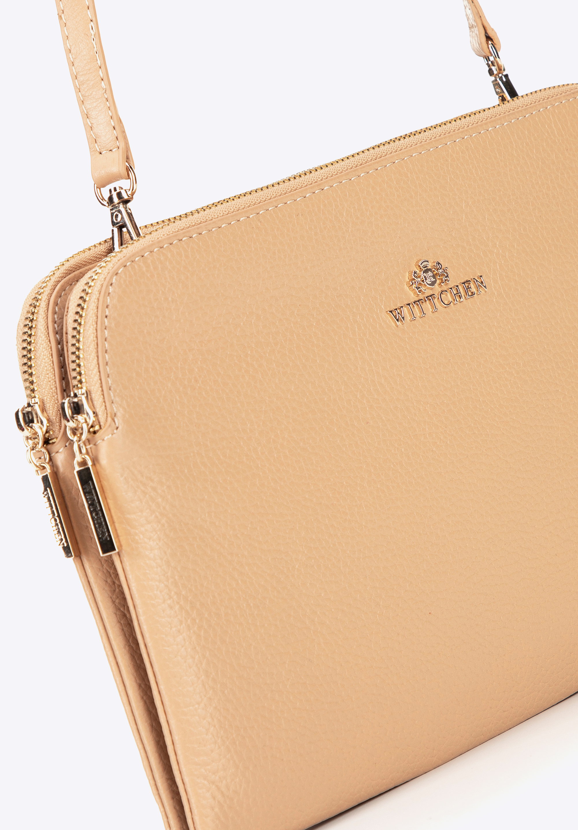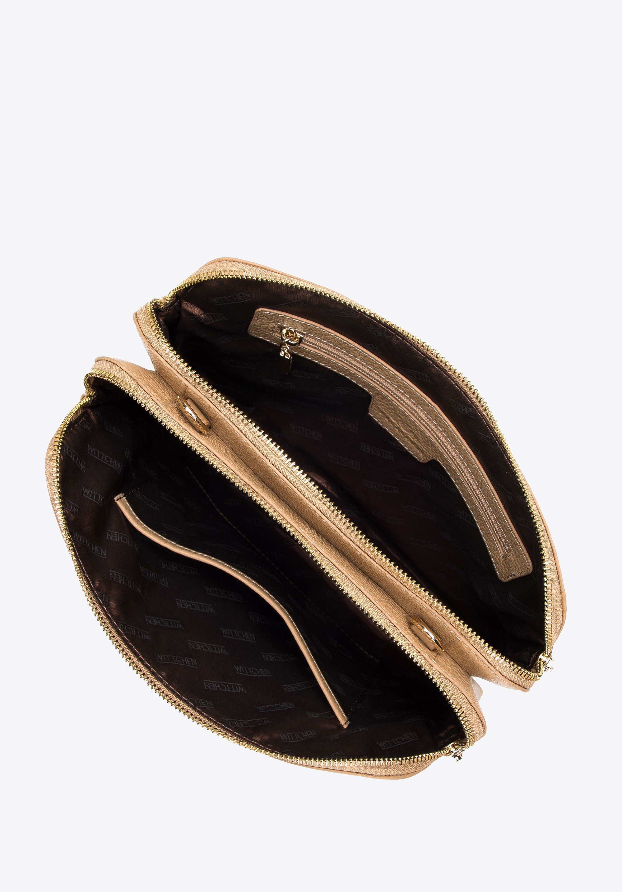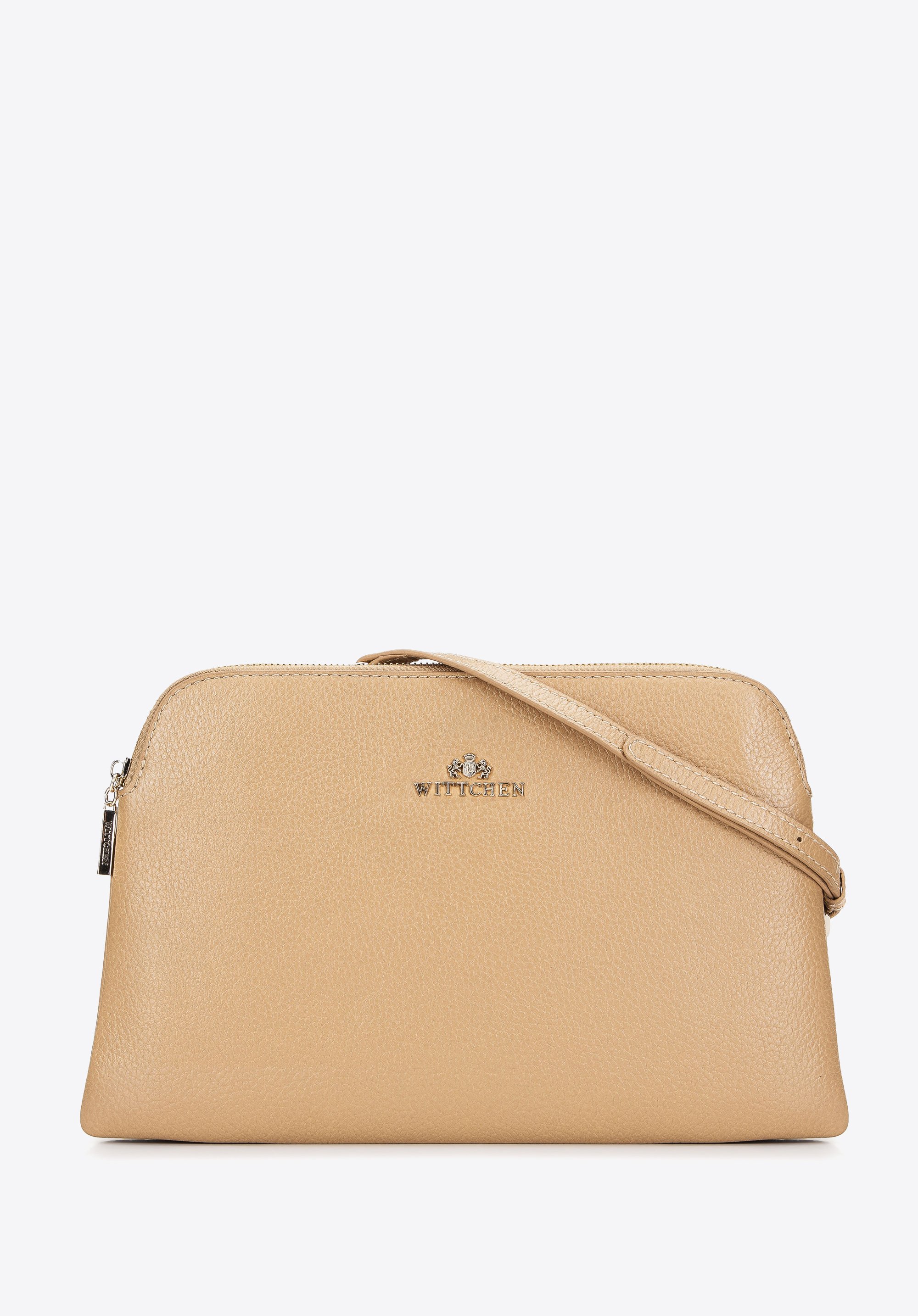 Kétrekeszes női bőr kistáska bézs