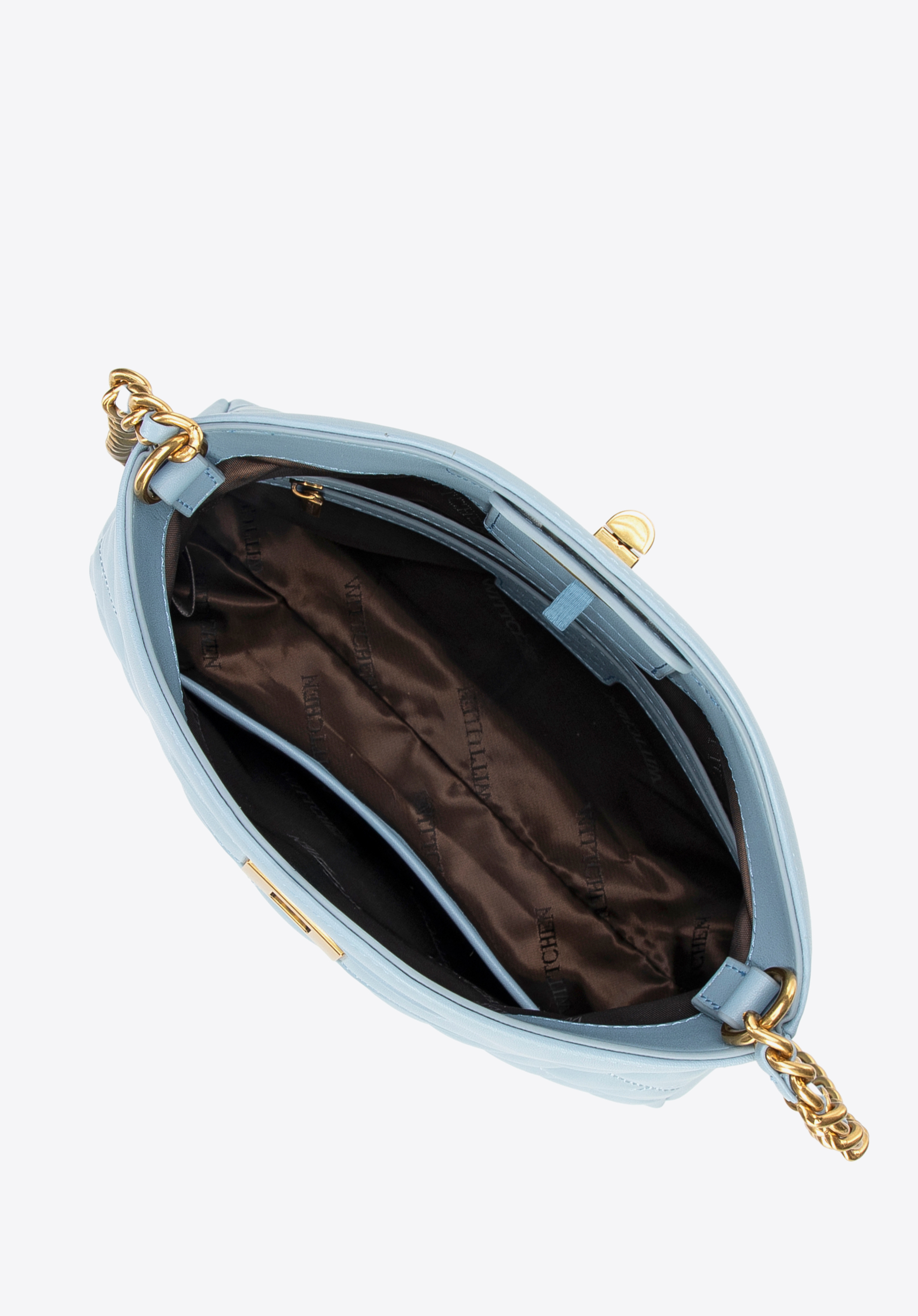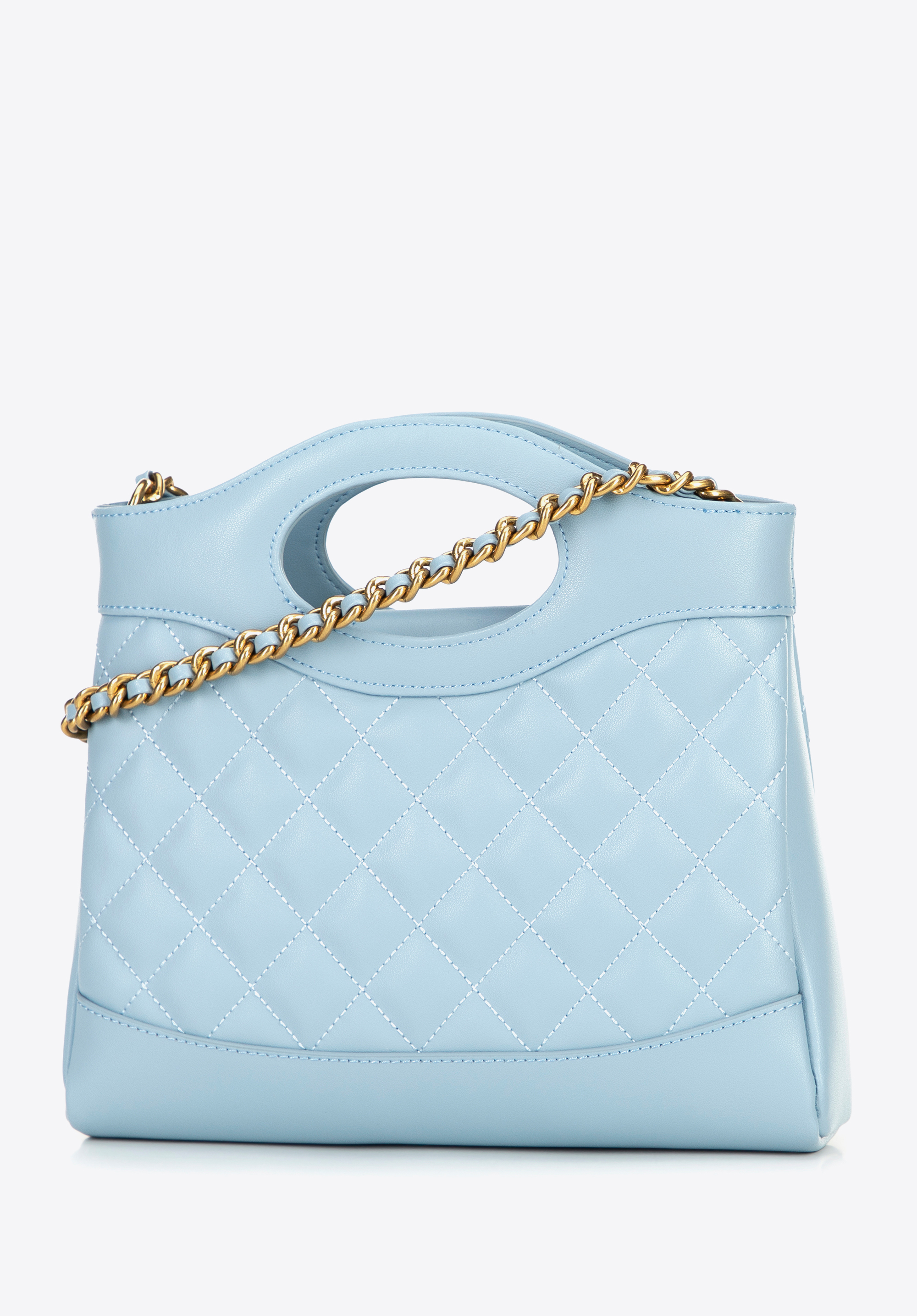 Egészítsd ki ruhatáradat egy olyan kézitáskával, amely időtlen dizájnjával és egyedi karakterével nyűgöz le. Ez a táska a klasszikus és a modern hangsúlyok kombinációja. Természetes bőrből készült, elöl és hátul geometrikus steppeléssel rendelkezik az igényes megjelenés érdekében. A merev szabás lehetővé teszi, hogy a töltéstől függetlenül megőrizze tökéletes formáját, míg a stílusos csat elegáns befejező elemet ad. A hosszú lánc és a két fogantyú lehetővé teszi, hogy a táska akár kézben, akár vállon hordható legyen, alkalomhoz és stílushoz illően.