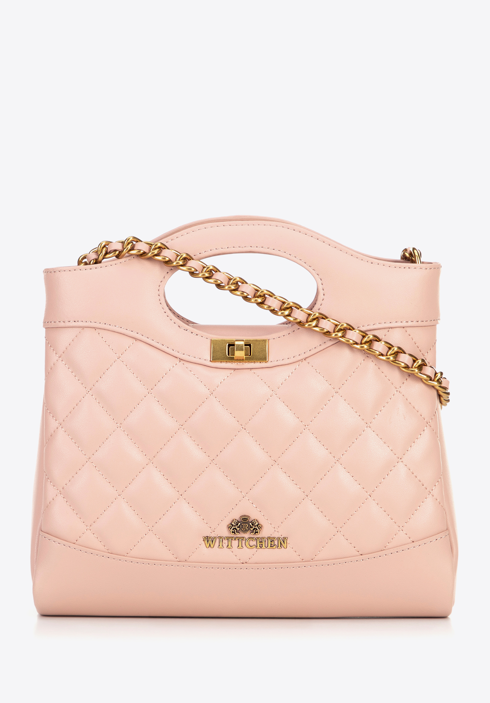 Egészítsd ki ruhatáradat egy olyan kézitáskával, amely időtlen dizájnjával és egyedi karakterével nyűgöz le. Ez a táska a klasszikus és a modern hangsúlyok kombinációja. Természetes bőrből készült, elöl és hátul geometrikus steppeléssel rendelkezik az igényes megjelenés érdekében. A merev szabás lehetővé teszi, hogy a töltéstől függetlenül megőrizze tökéletes formáját, míg a stílusos csat elegáns befejező elemet ad. A hosszú lánc és a két fogantyú lehetővé teszi, hogy a táska akár kézben, akár vállon hordható legyen, alkalomhoz és stílushoz illően.