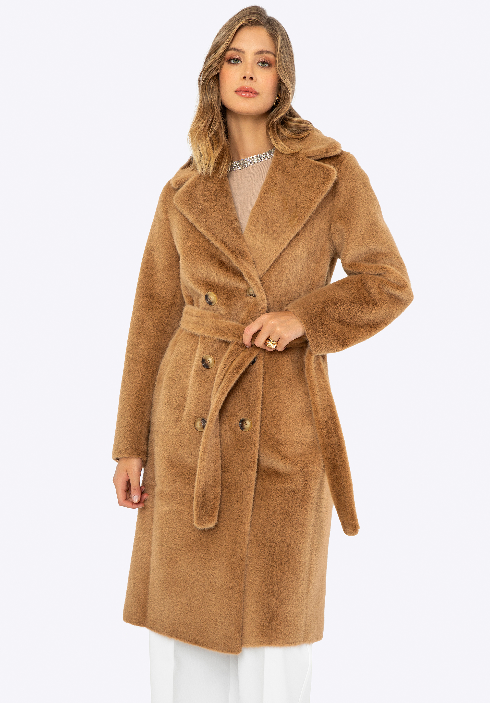 - Rögzítés : A kétsoros gombos záródás és az öv tökéletes illeszkedést tesz lehetővé, és kiemeli a nőies sziluettet.