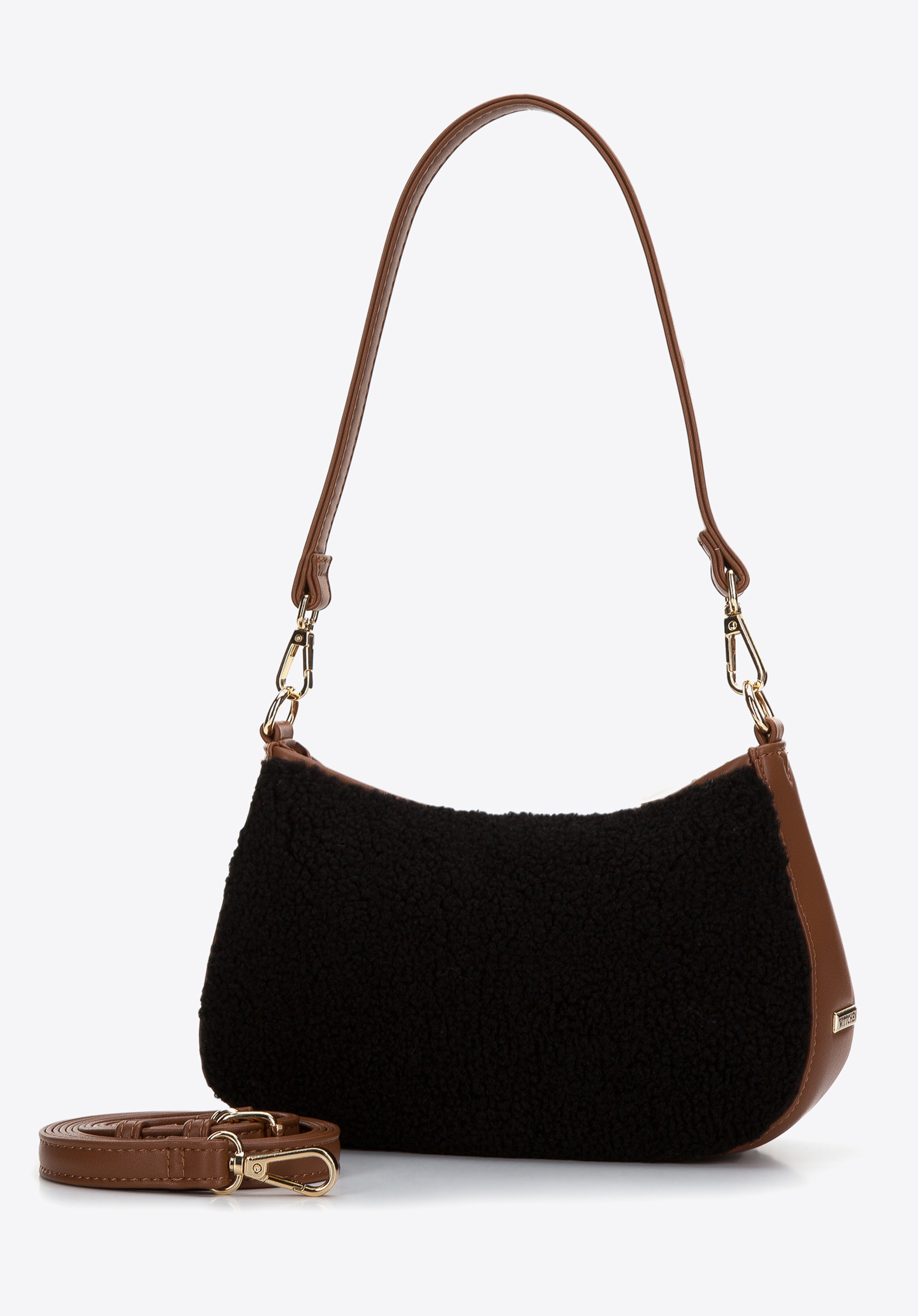 A divatos bagett táska minden stílusos nő kötelező darabja. Ez a modell kiváló minőségű ökológiai bőrből készült . A táska elejét és hátulját kellemes tapintású műszőrme díszíti. Ezen kívül van egy "W" betű az előlapon. Belül elfér egy pénztárca, telefon, kis naptár és papírzsebkendő – tökéletes kávézáshoz egy baráttal, sétához vagy moziba. Varázsolj karaktert egy egyszerű kötött ruhához vagy viseld kedvenc boyfriend farmereddel és pólóddal. Ez a kis bagett táska műszőrmével minden nap sok figyelmet vonz majd.