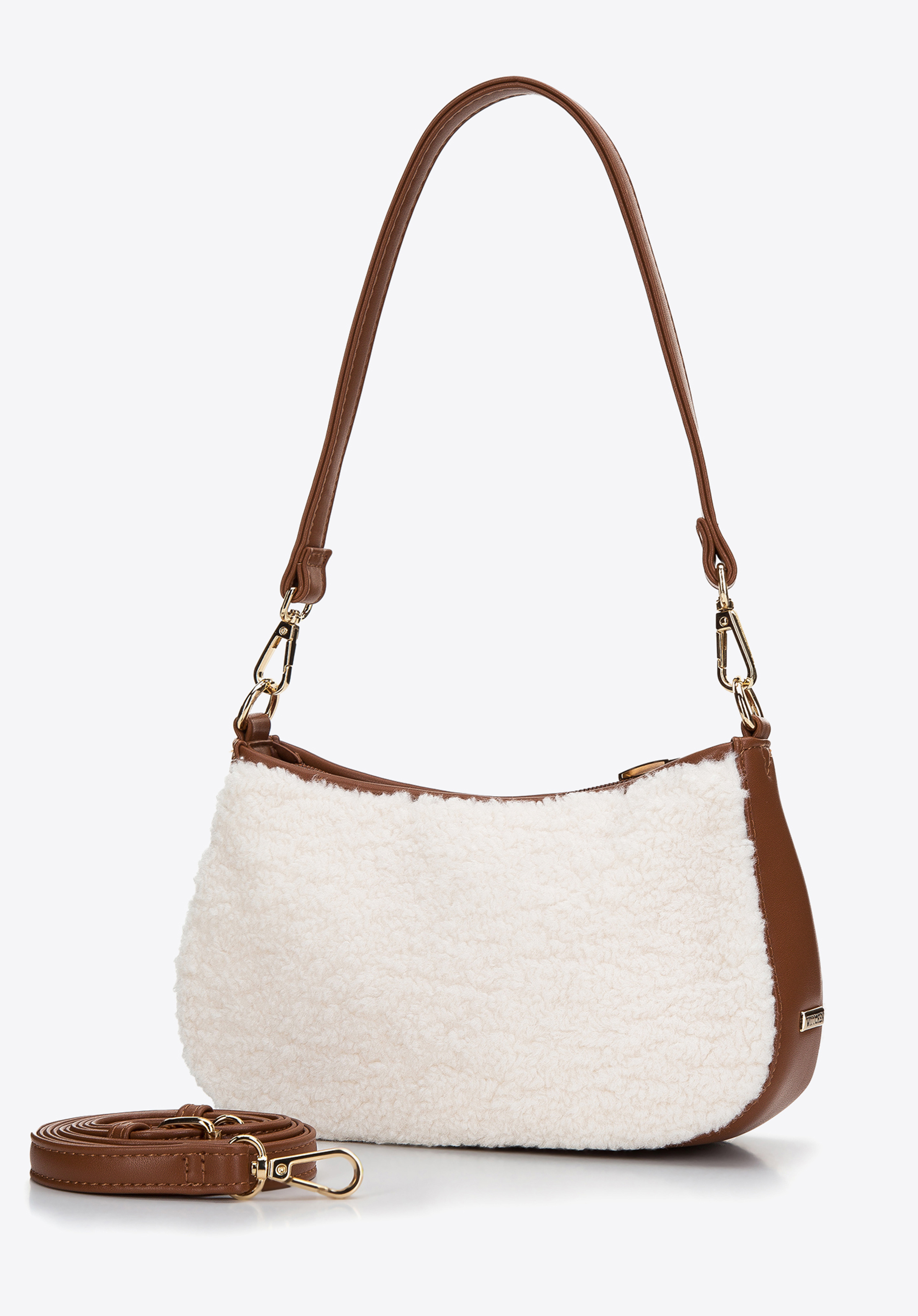 A divatos bagett táska minden stílusos nő kötelező darabja. Ez a modell kiváló minőségű ökológiai bőrből készült . A táska elejét és hátulját kellemes tapintású műszőrme díszíti. Ezen kívül van egy "W" betű az előlapon. Belül elfér egy pénztárca, telefon, kis naptár és papírzsebkendő – tökéletes kávézáshoz egy baráttal, sétához vagy moziba. Varázsolj karaktert egy egyszerű kötött ruhához vagy viseld kedvenc boyfriend farmereddel és pólóddal. Ez a kis bagett táska műszőrmével minden nap sok figyelmet vonz majd.