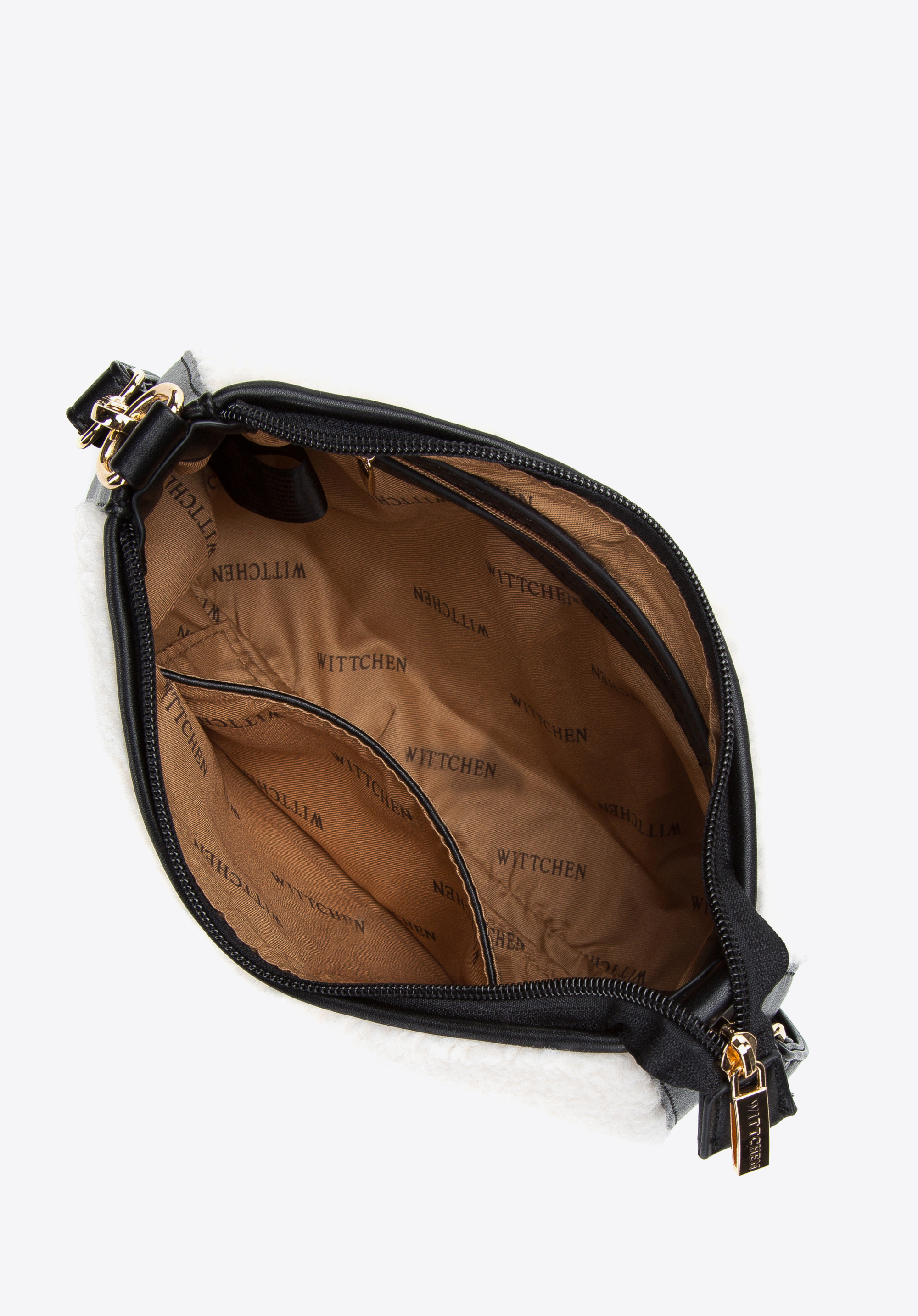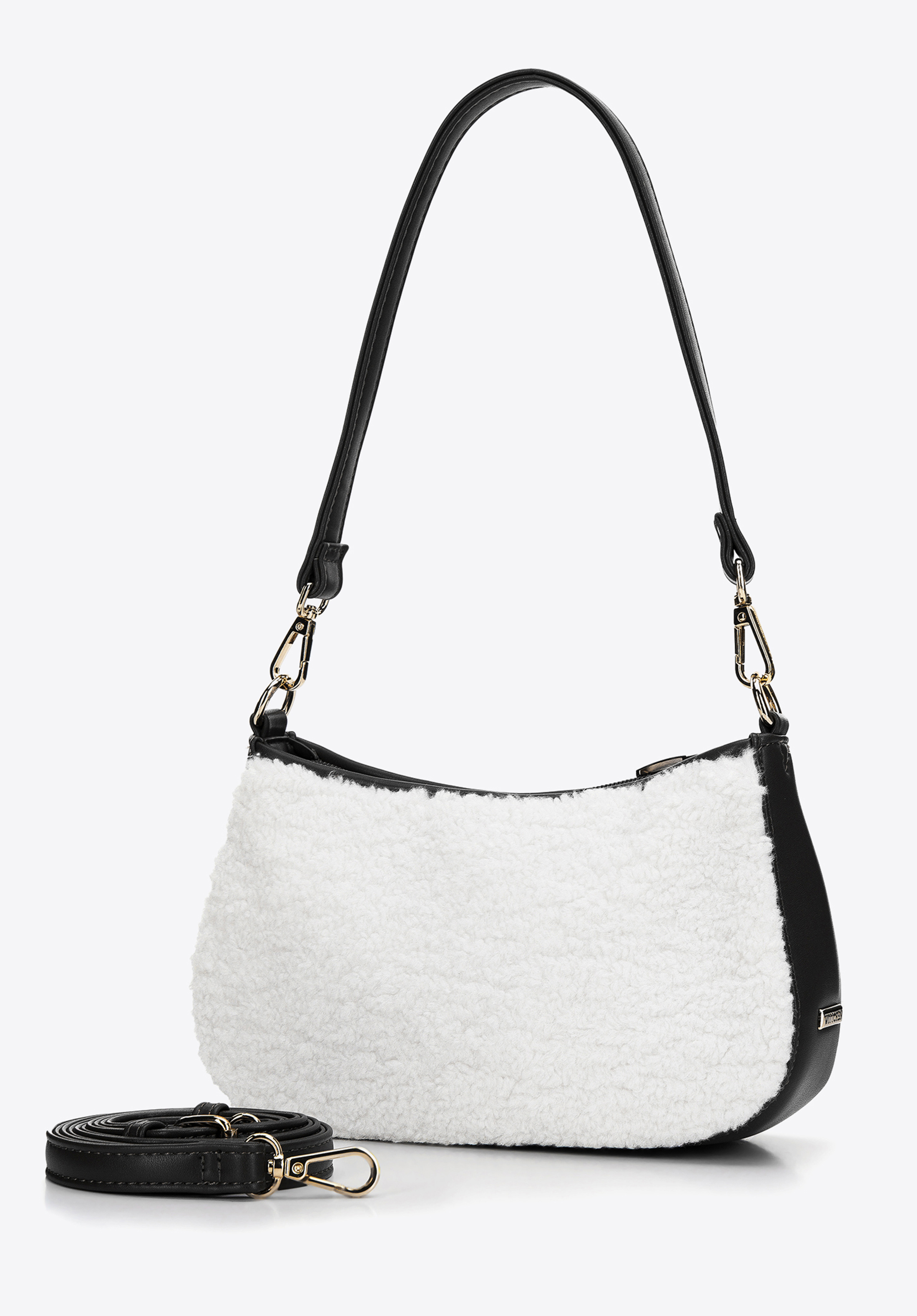 A divatos bagett táska minden stílusos nő kötelező darabja. Ez a modell kiváló minőségű ökológiai bőrből készült . A táska elejét és hátulját kellemes tapintású műszőrme díszíti. Ezen kívül van egy "W" betű az előlapon. Belül elfér egy pénztárca, telefon, kis naptár és papírzsebkendő – tökéletes kávézáshoz egy baráttal, sétához vagy moziba. Varázsolj karaktert egy egyszerű kötött ruhához vagy viseld kedvenc boyfriend farmereddel és pólóddal. Ez a kis bagett táska műszőrmével minden nap sok figyelmet vonz majd.