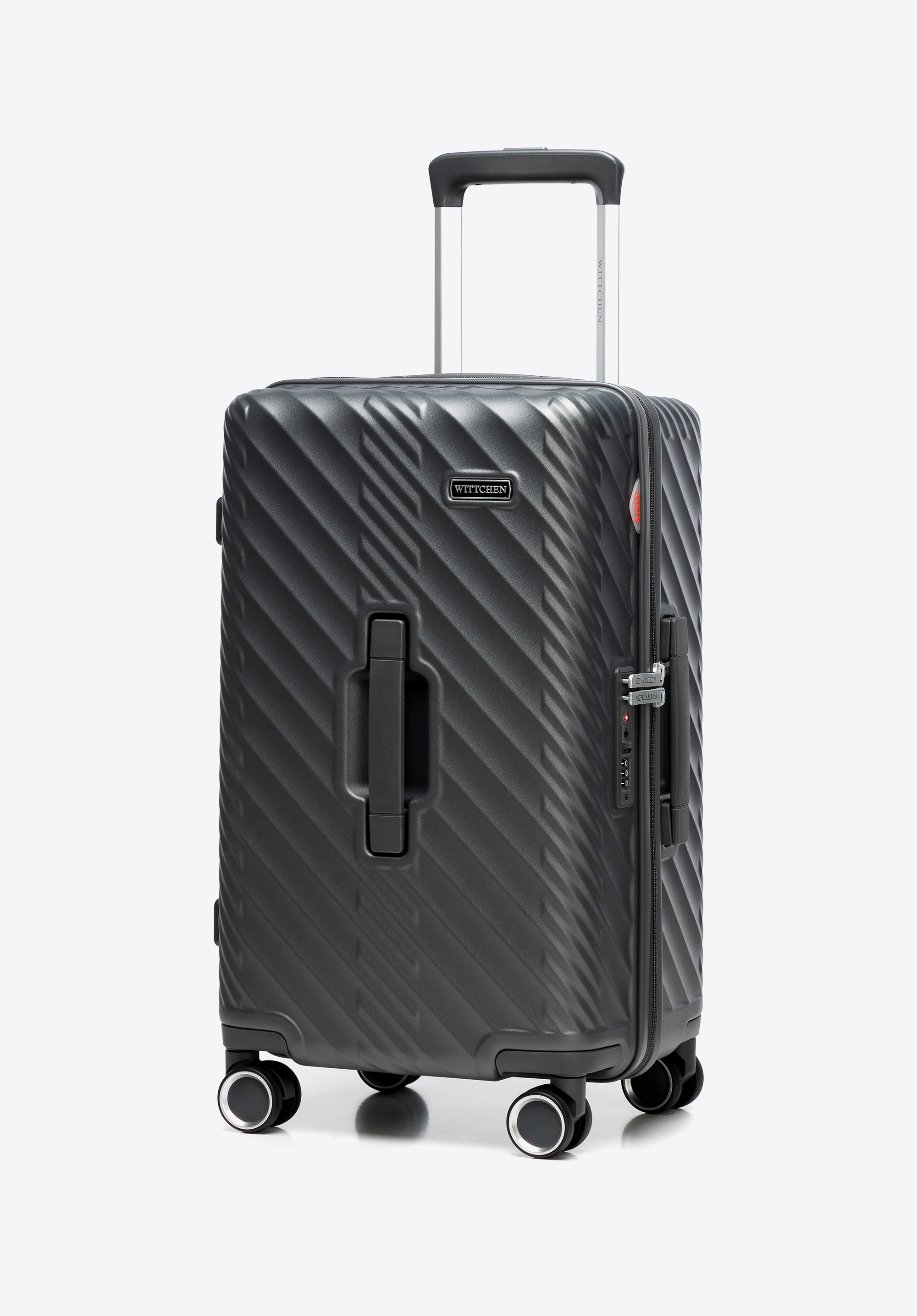 Kis polikarbonát bőrönd geometrikus mintával szürke