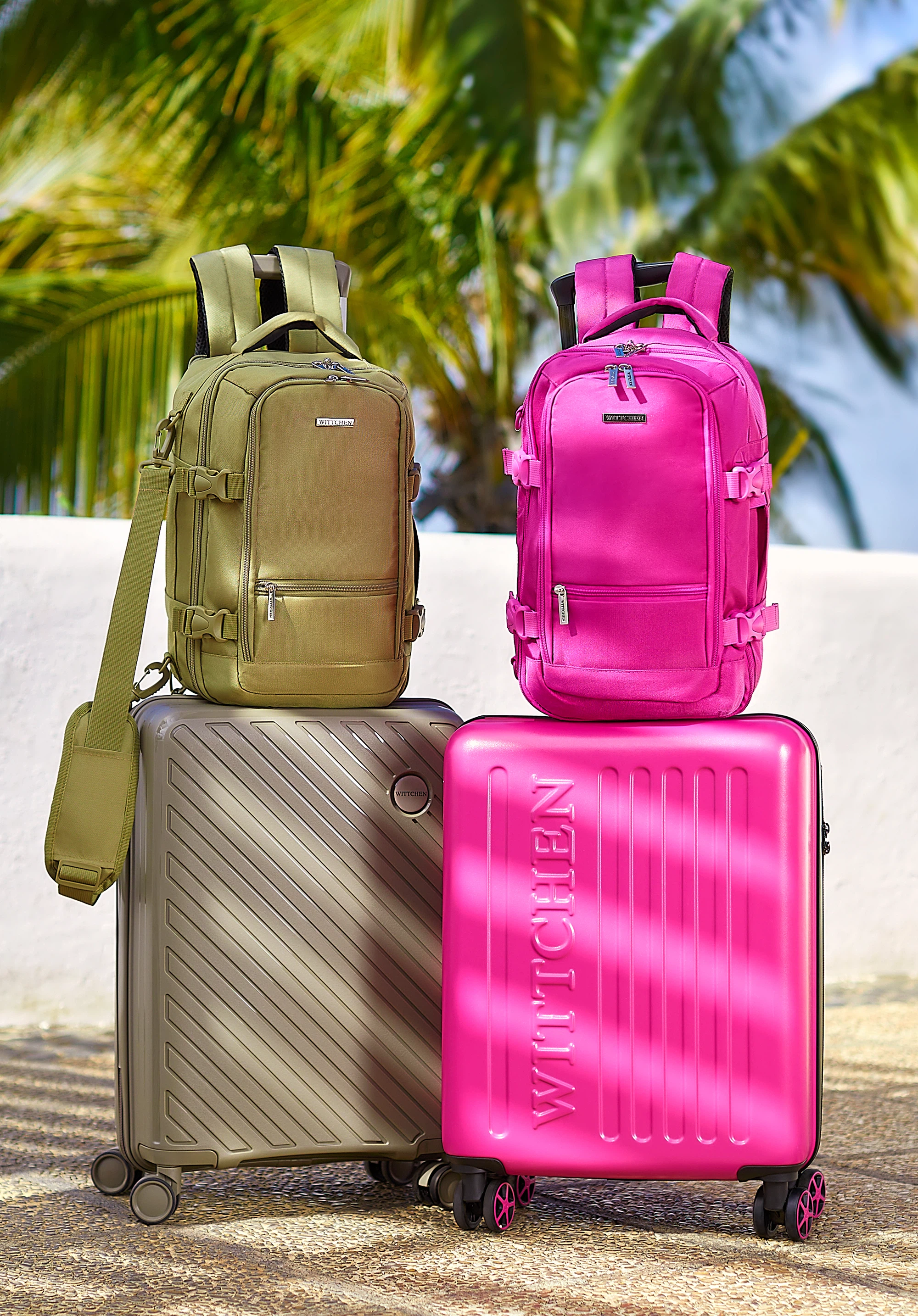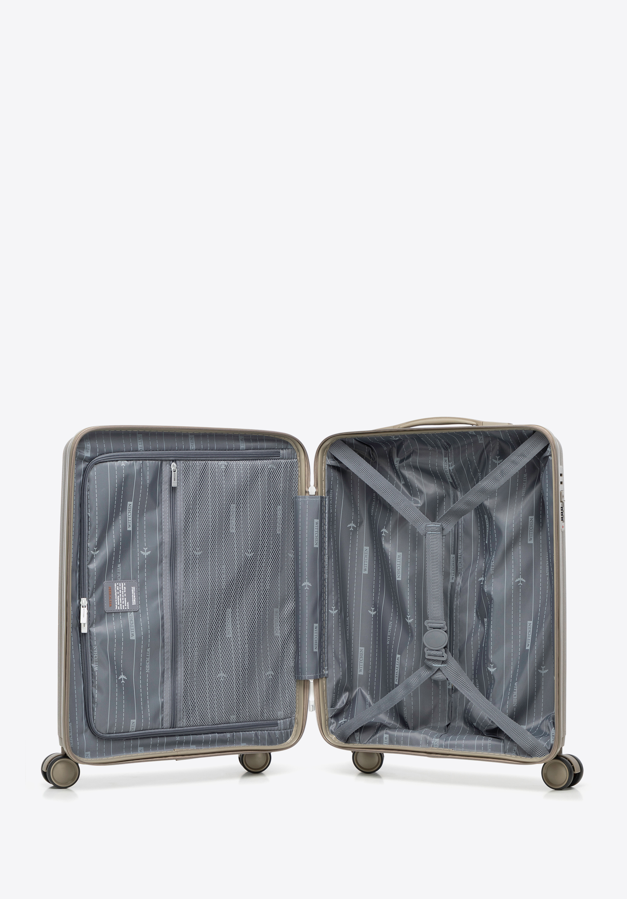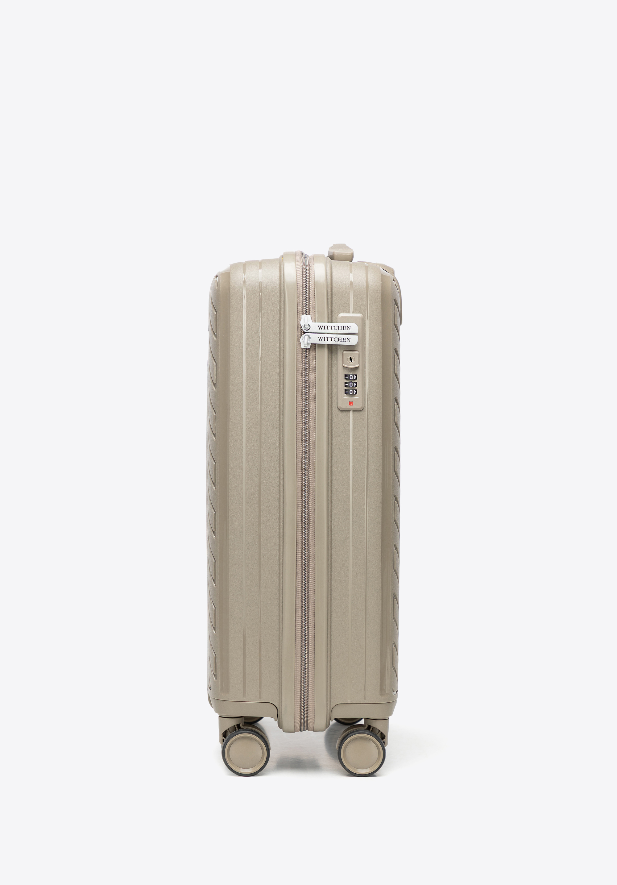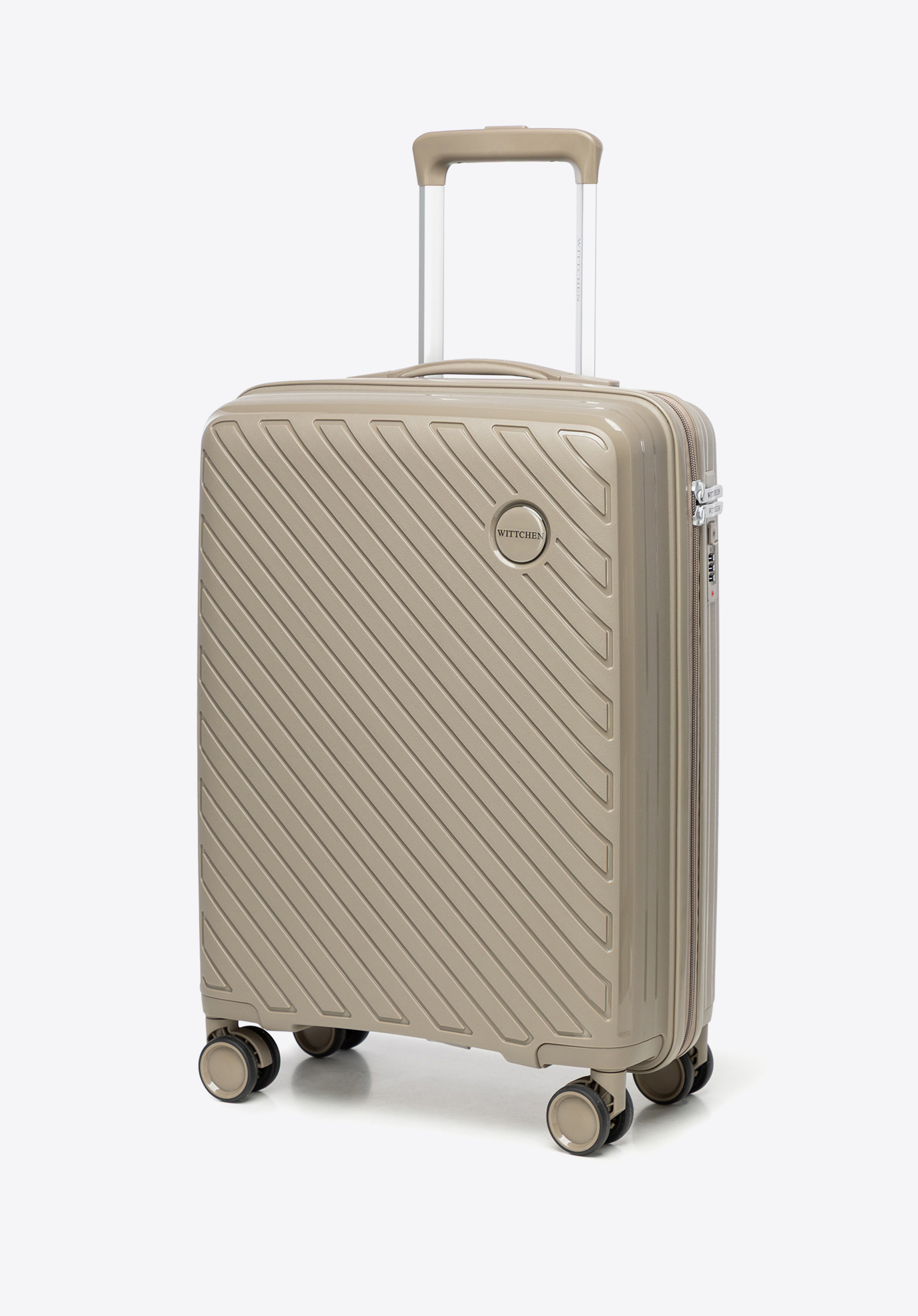 Kis polipropilén bőrönd dombornyomott csíkokkal oliva
