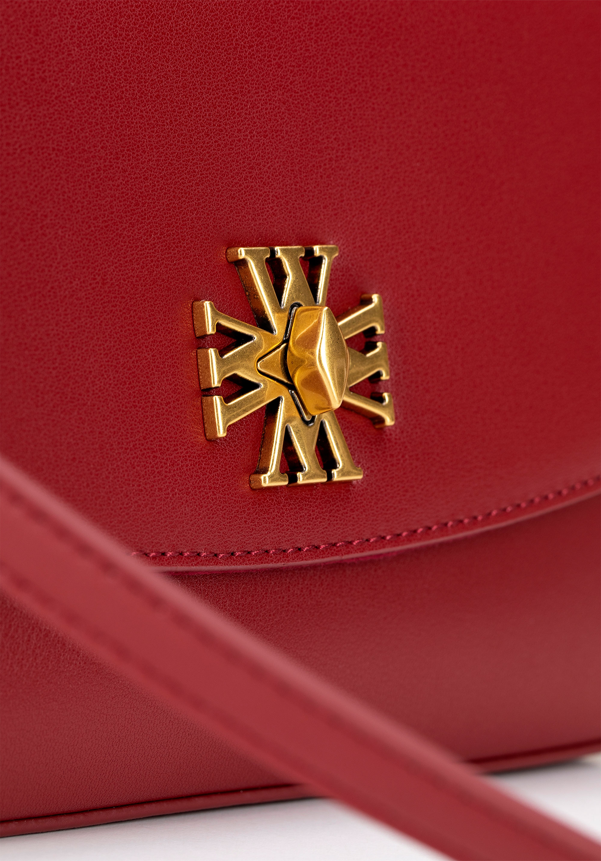 - Részletek: A fedélen található díszes csat és az oldalán található visszafogott logó hangsúlyozzák a kézitáska elegáns jellegét.