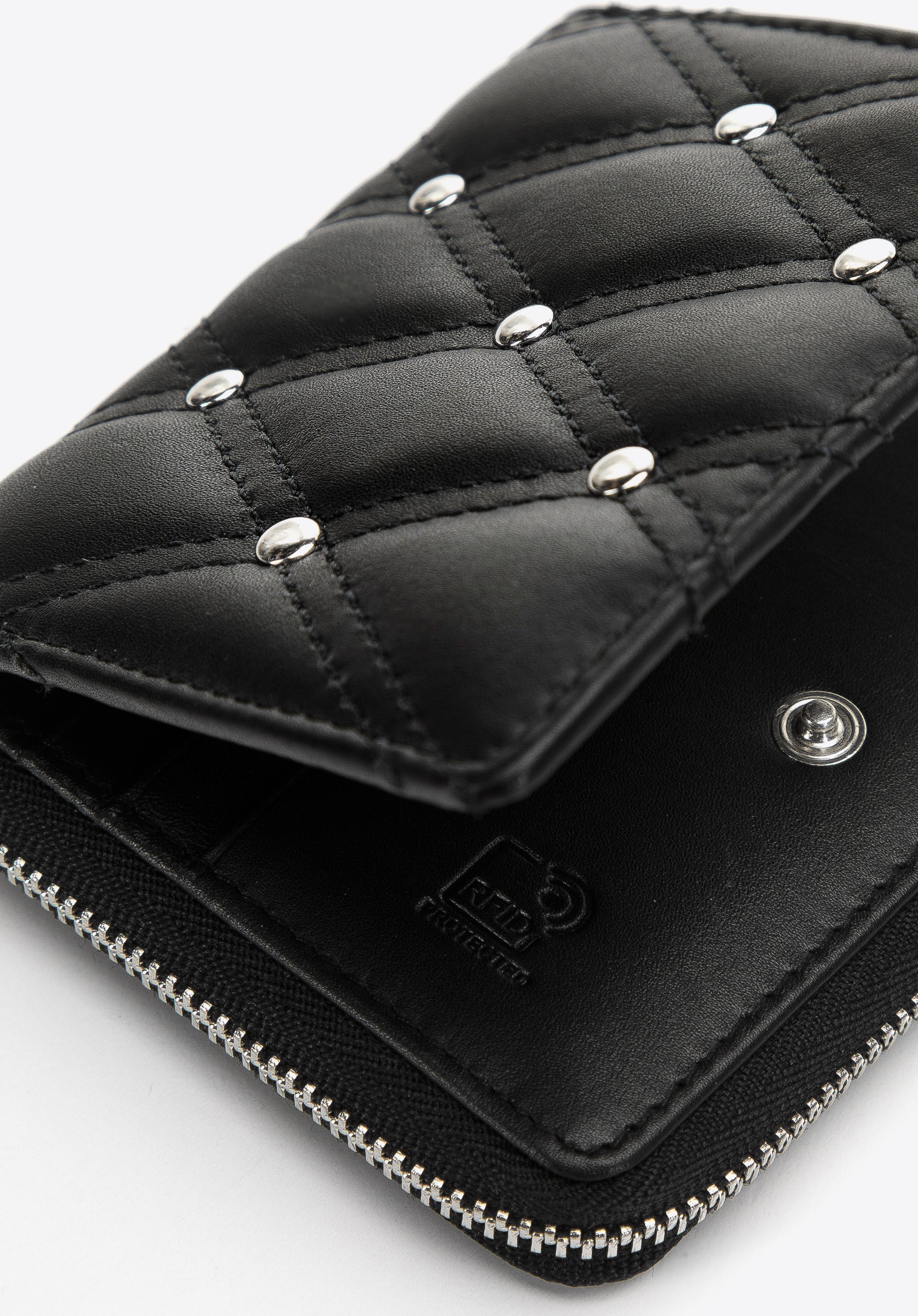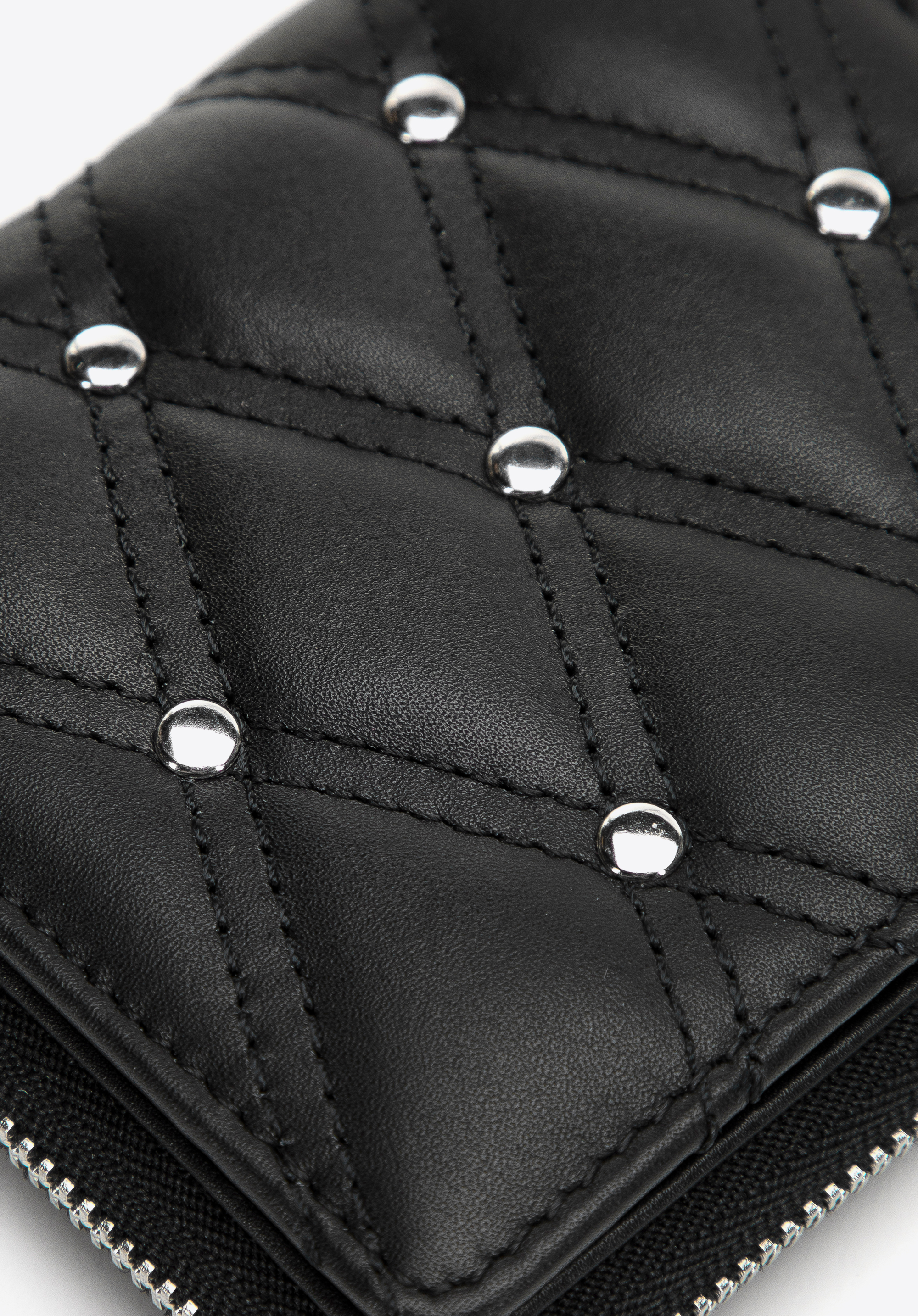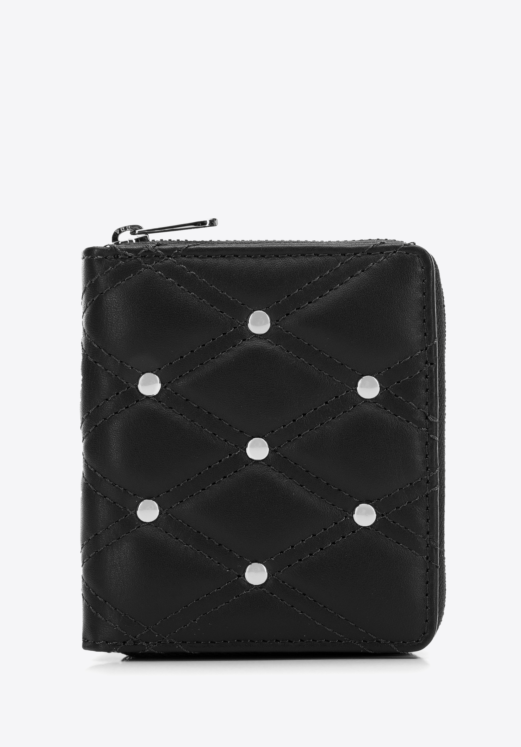 Ez a stílusos női pénztárca vonzani fogja önre a figyelmet. Kiváló minőségű steppelt természetes bőrből készült. Az elejét apró dekoratív szegecsek díszítik, ami a tárca összképének egyedi jelleget kölcsönöz. Belül remekül átlátható: több kártyatartó tokkal és több nyitott zsebbel rendelkezik. A külső cipzáras érmezsebnek köszönhetően kényelmesen használható. Ezenkívül ez a modell speciális béléssel (RFID) van ellátva, amely megakadályozza a kártyaadatok távoli leolvasásának lehetőségét. A kisméretű steppelt női bőrtárca dekoratív szegecsekkel egy eredeti kiegészítő, amelyet minden nap magával vihet.