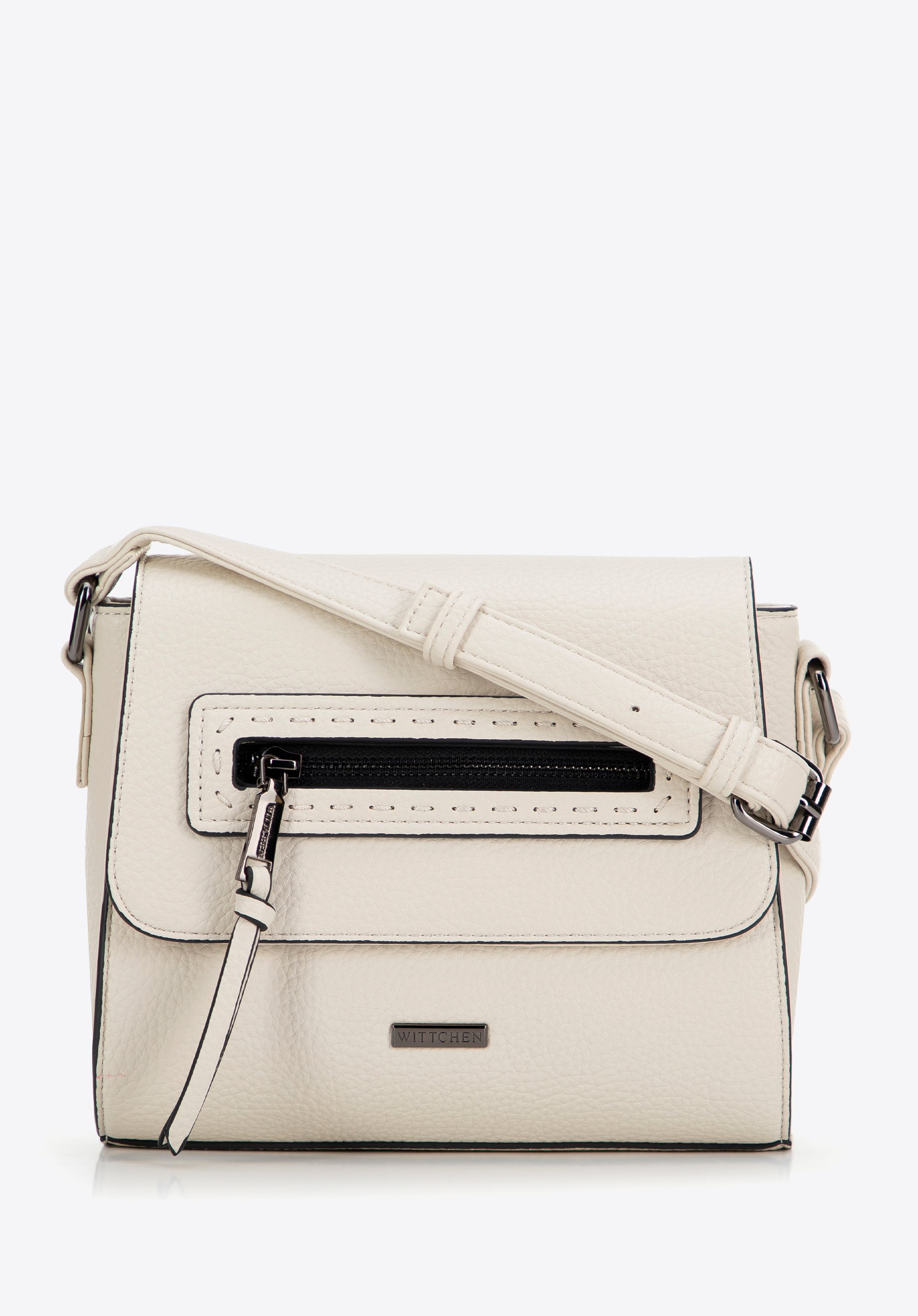 A stílus és a praktikum ötvözete, ez a kézitáska nemcsak gyönyörűen néz ki, de környezetbarát is. A táska elejét díszvarrással ellátott díszzseb ékesíti, a mágneses záródású patent pedig kényelmet és biztonságot nyújt. Belül egy egyrekeszes helyet találhatsz egy nyitott zsebbel a telefonodnak és egy cipzáras zsebbel az értékesebb tárgyaid számára. A táska hátulján egy további kisebb cipzáras zseb található, amely ideális az apróbb tárgyak számára. Az állítható pánt lehetővé teszi, hogy a táskát a válladon vagy a testeden átvetve hordhasd, attól függően, hogy mit szeretnél. A fém díszítőelemek és a WITTCHEN logó elegáns külsőt kölcsönöznek a táskának. Ez a táska minden olyan nő számára kötelező darab, aki értékeli a stílust, a minőséget és a célszerűséget.