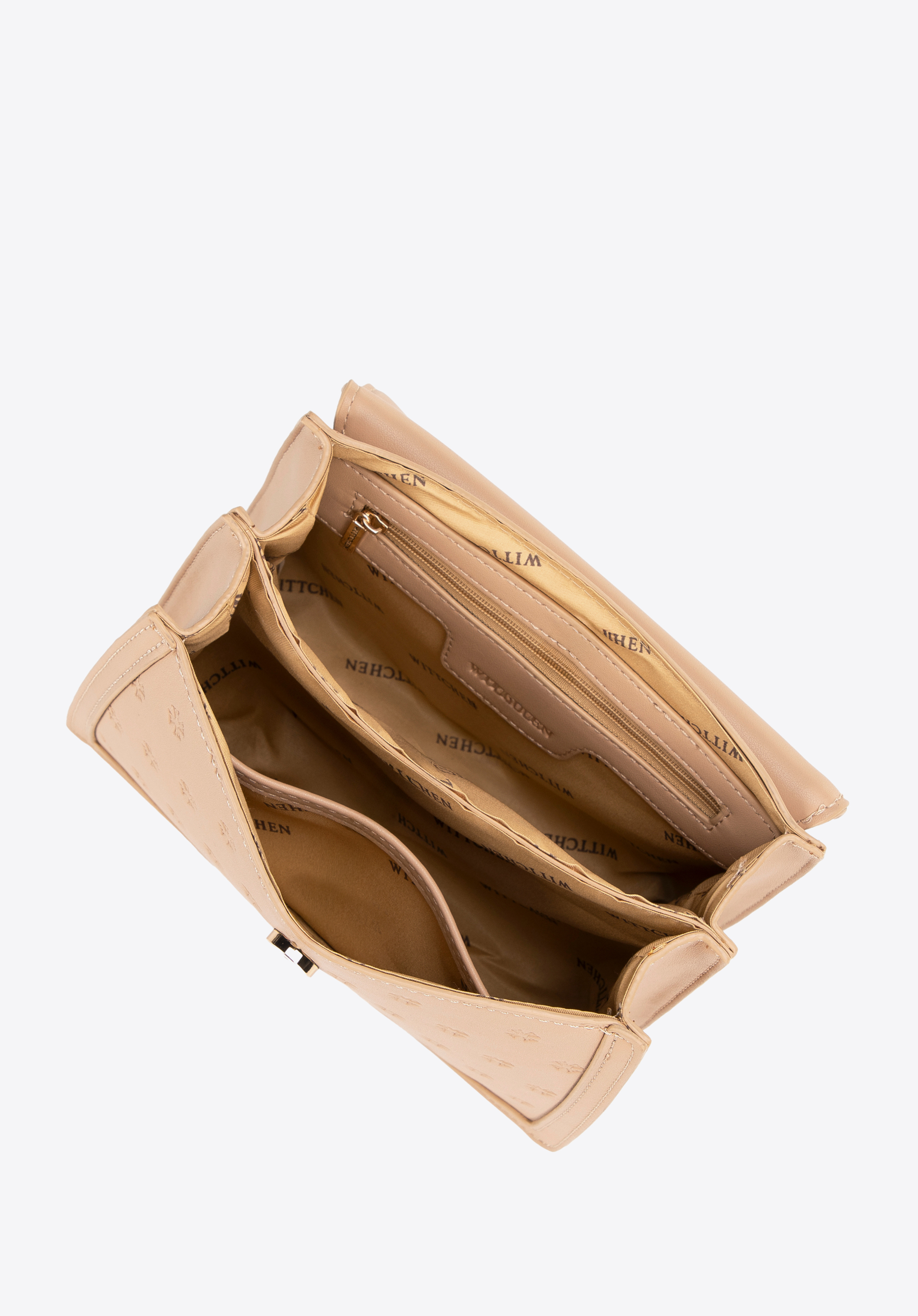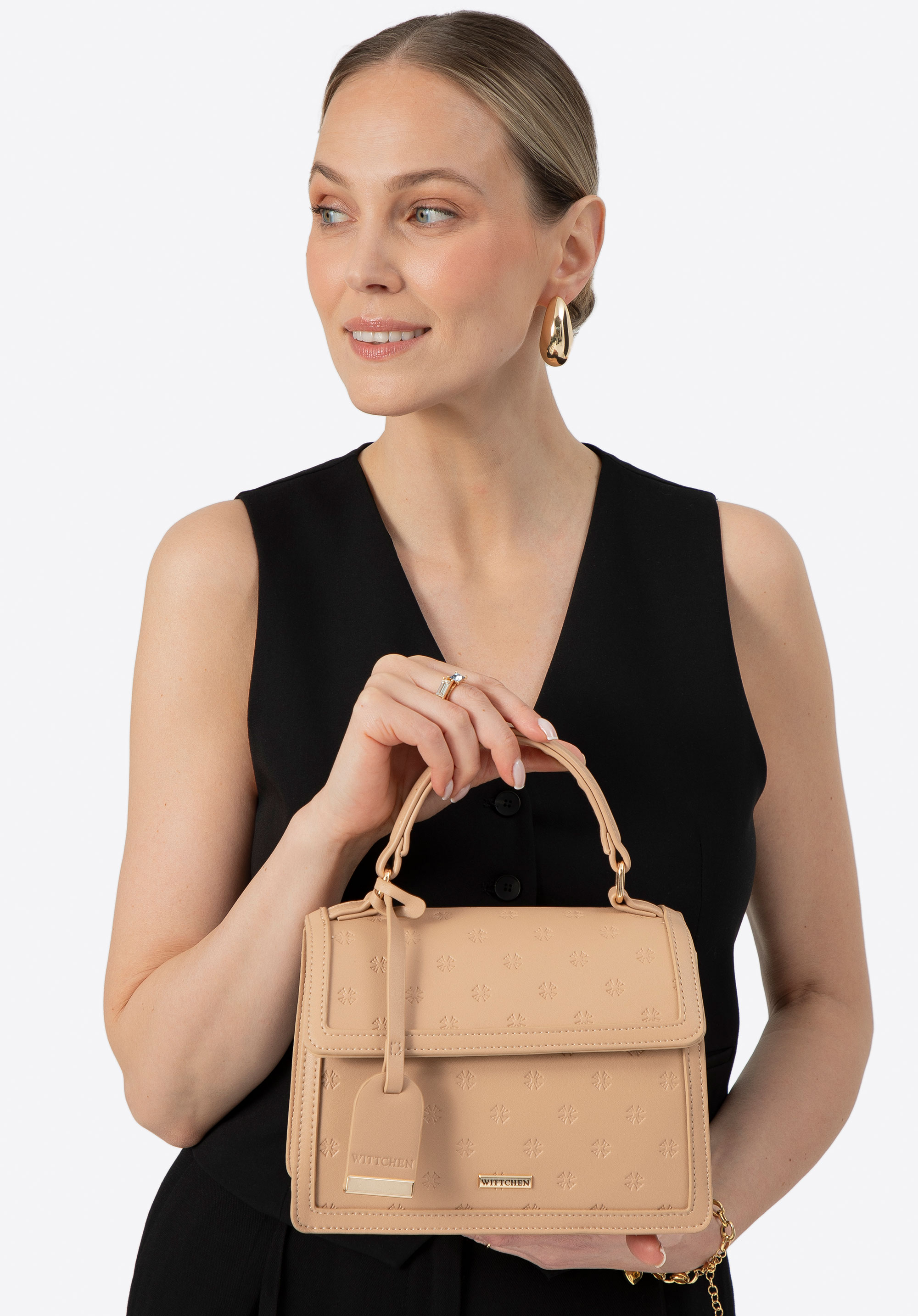 Ez a stílusos kézitáska időtlen dizájnnal tökéletes kiegészítője bármilyen öltözéknek. Ökobőrből készült, a fedélen mágneses kapocs található a könnyű hozzáférés érdekében. Ez a tartozék levehető, állítható pánttal és erős fogantyúval rendelkezik, így kézben vagy vállon is hordhatja. A belsejében két praktikus rekesz és két zseb található, amelyek közül az egyik cipzáras, hogy segítse a legfontosabb holmikat.