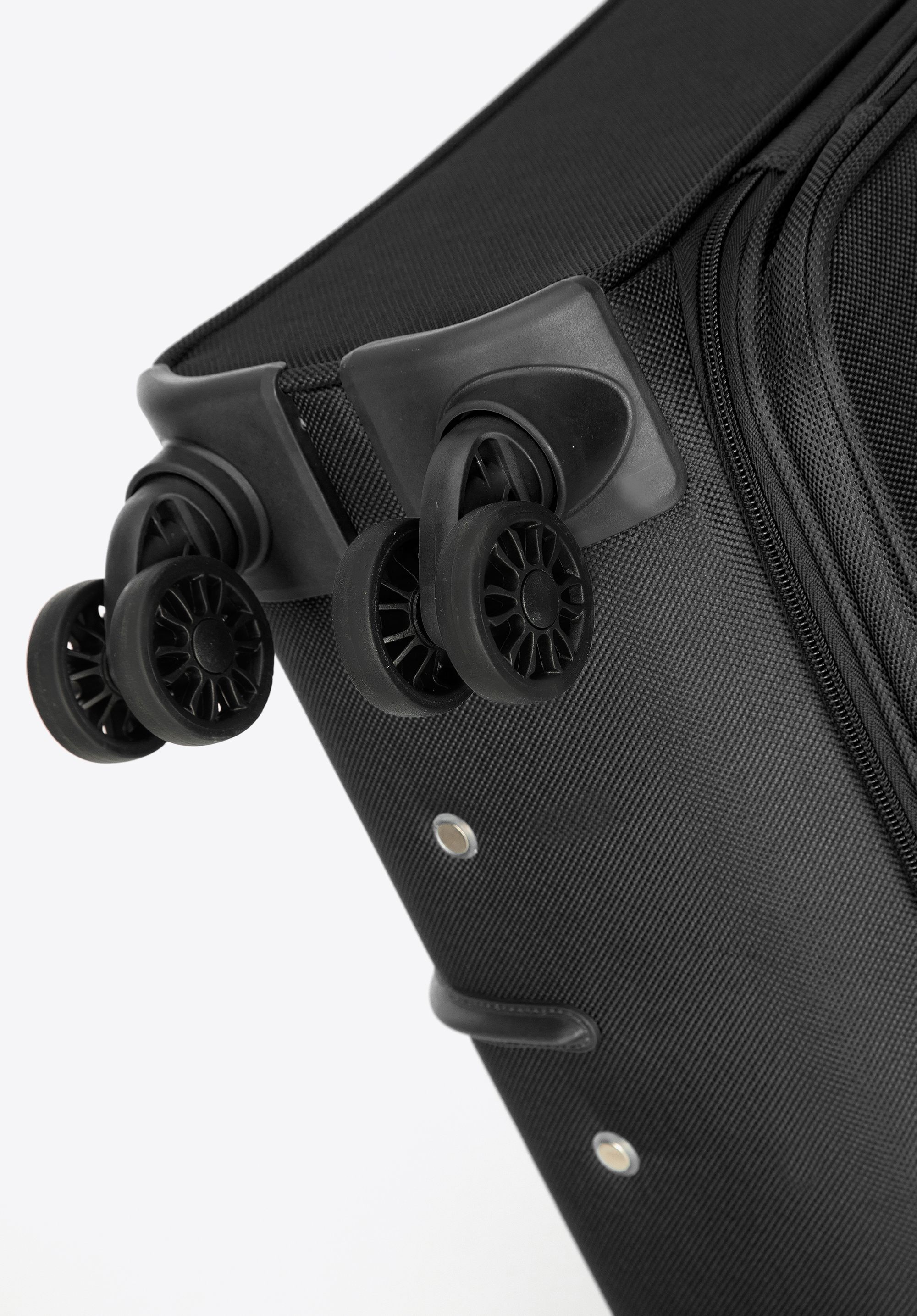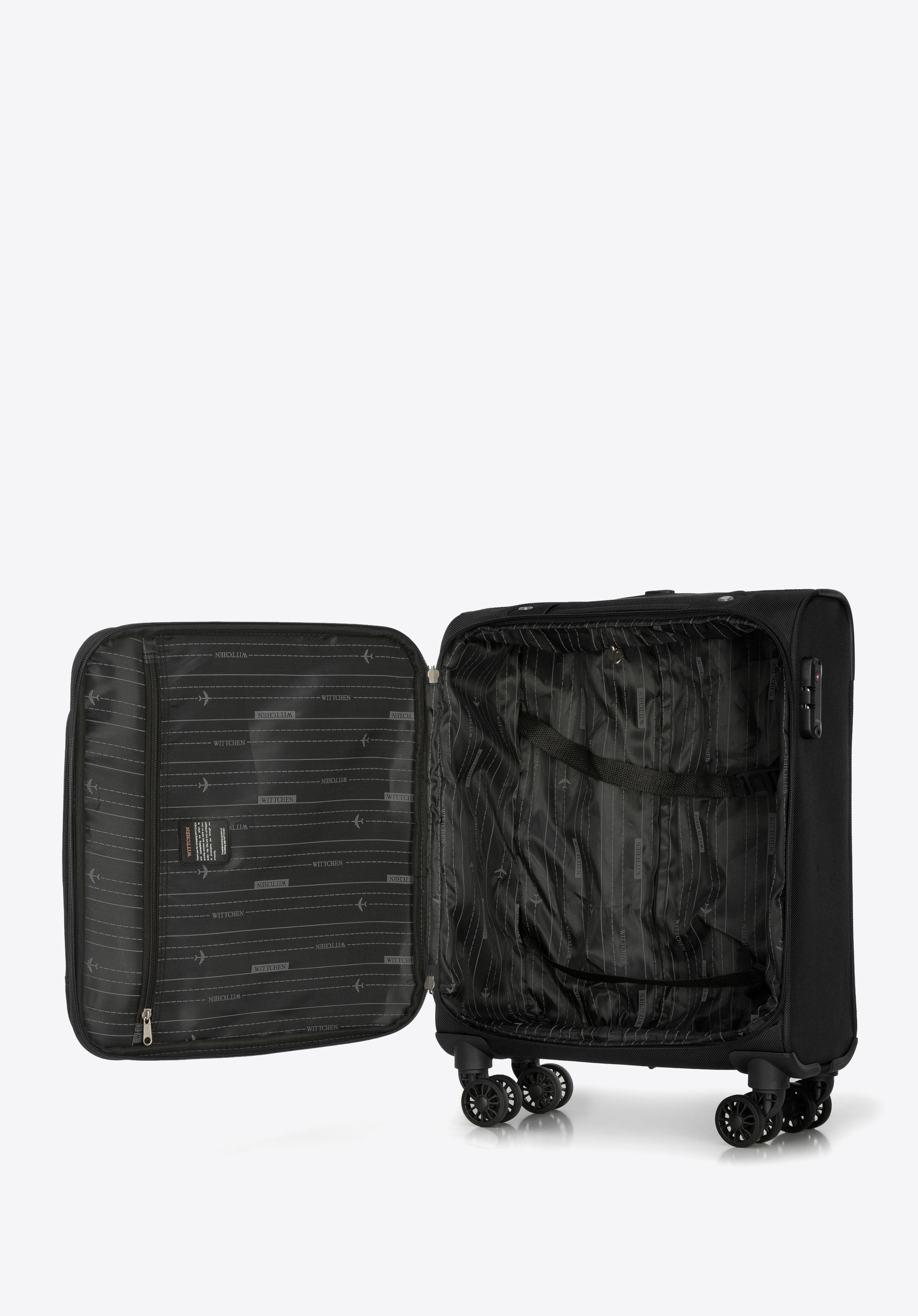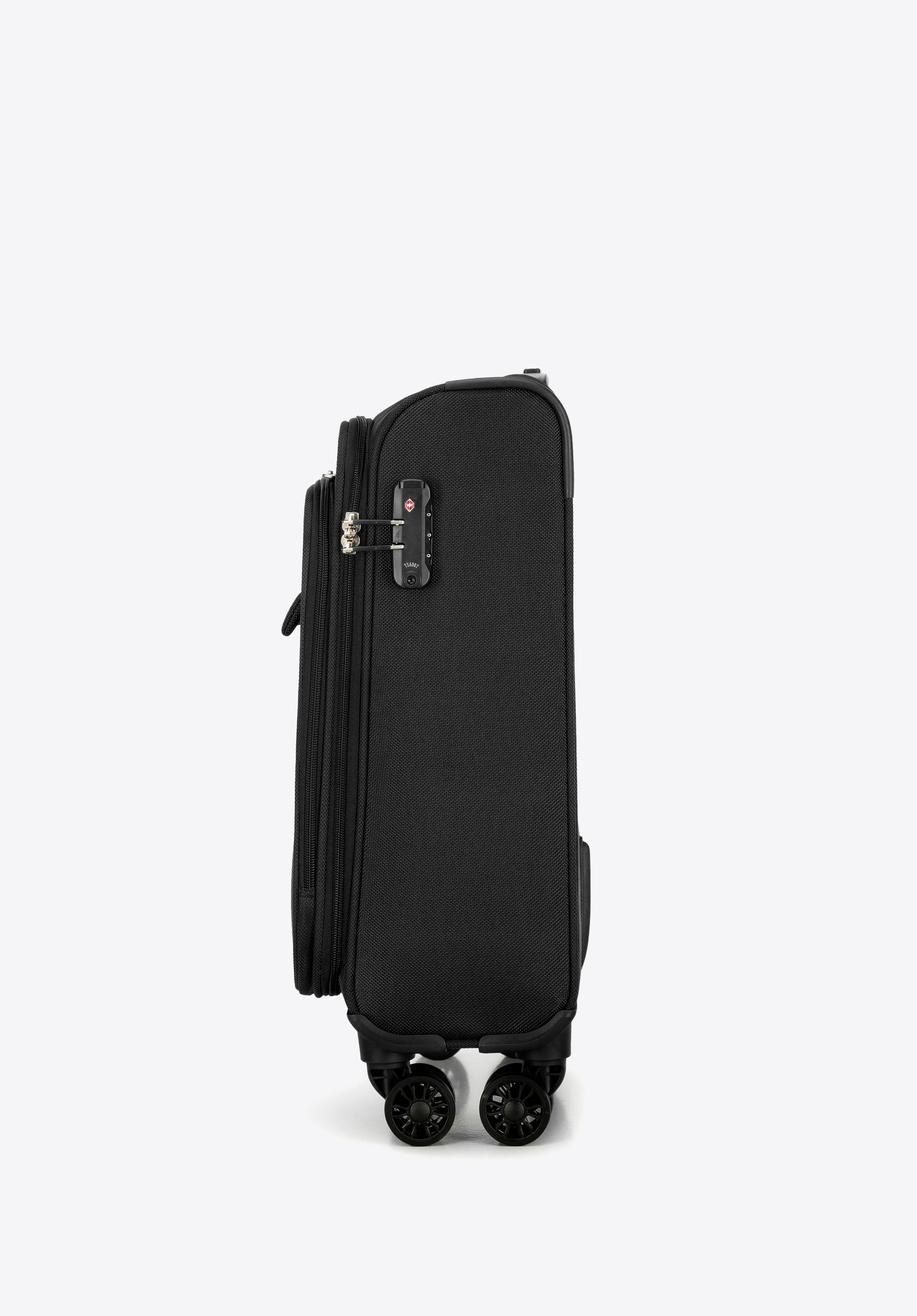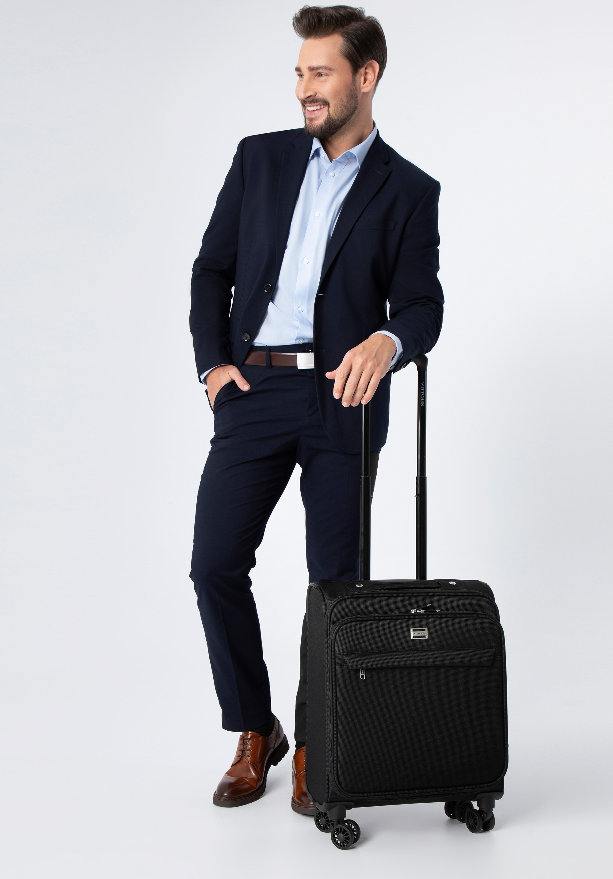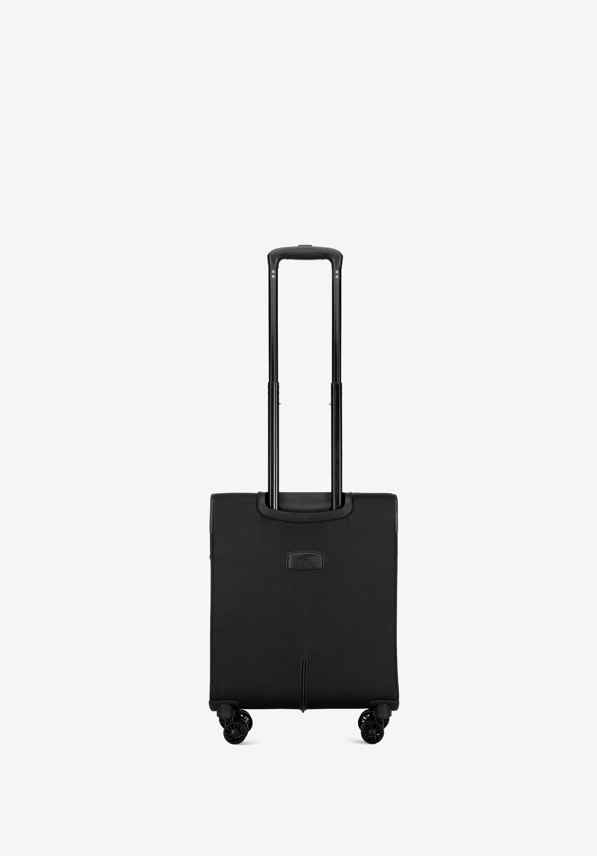 Ez a kis bőrönd kényelmes kiegészítője bármely rövid utazásnak. Kiváló minőségű poliészterből készült, amely karcálló és könnyen tisztítható. Színben összehangolt betétekkel rendelkezik, amelyek kiemelik ennek a bőröndnek a modern jellegét. A teleszkópos fogantyúnak és a forgó kerekeknek köszönhetően könnyű és kényelmes lesz a manőverezése. Ez az egyszínű kis szövetbőrönd remek választás például egy hétvégi kiránduláshoz vagy üzleti útra.