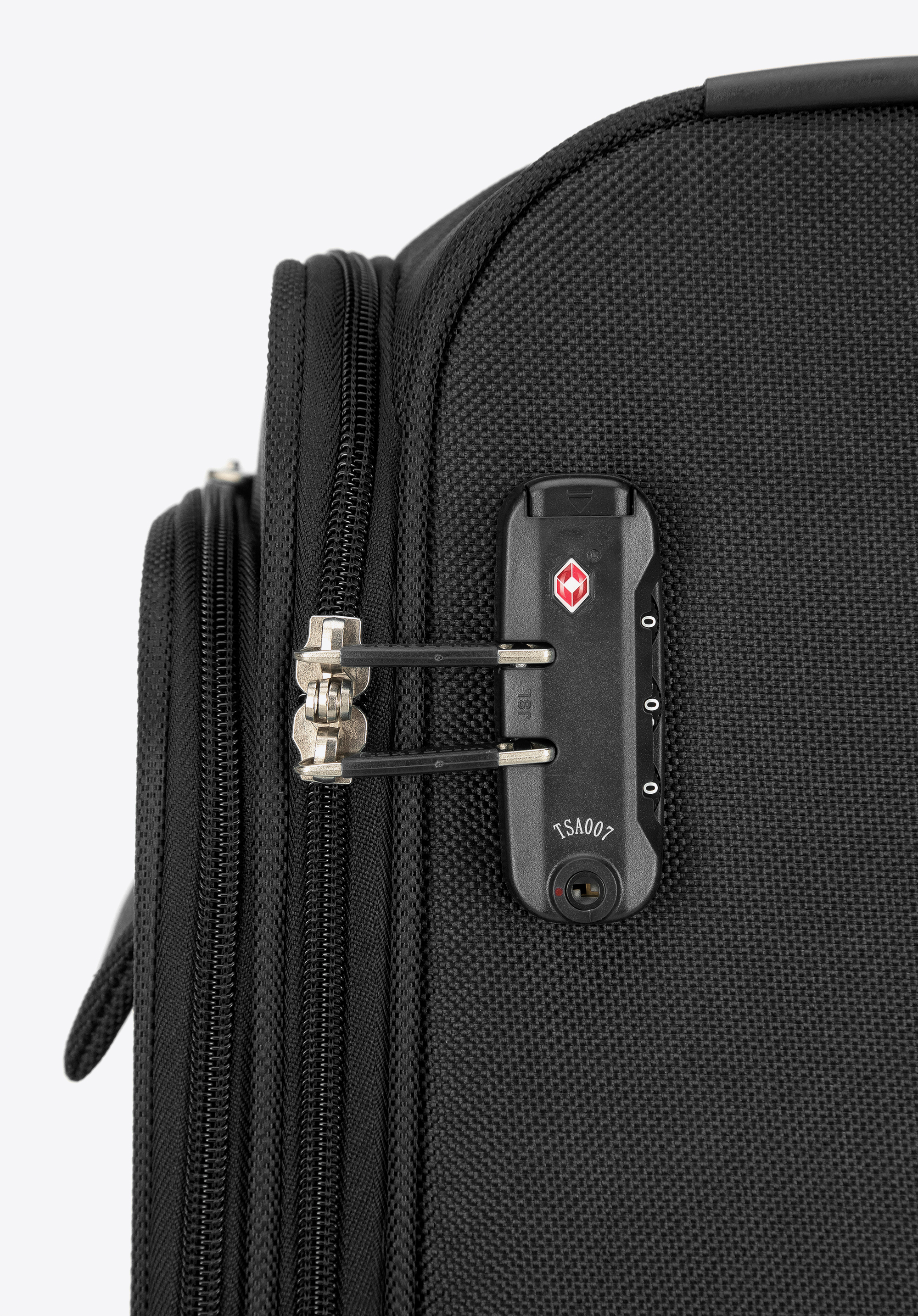 - rögzített TSA kombinált zárral felszerelve a biztonságos nemzetközi utazás érdekében - A TSA kulcsos zár nemcsak megakadályozza a csomagok nem kívánt kinyitását, hanem lehetővé teszi a hatóságok számára a csomagok kinyitását anélkül, hogy a zárat megsértenék;