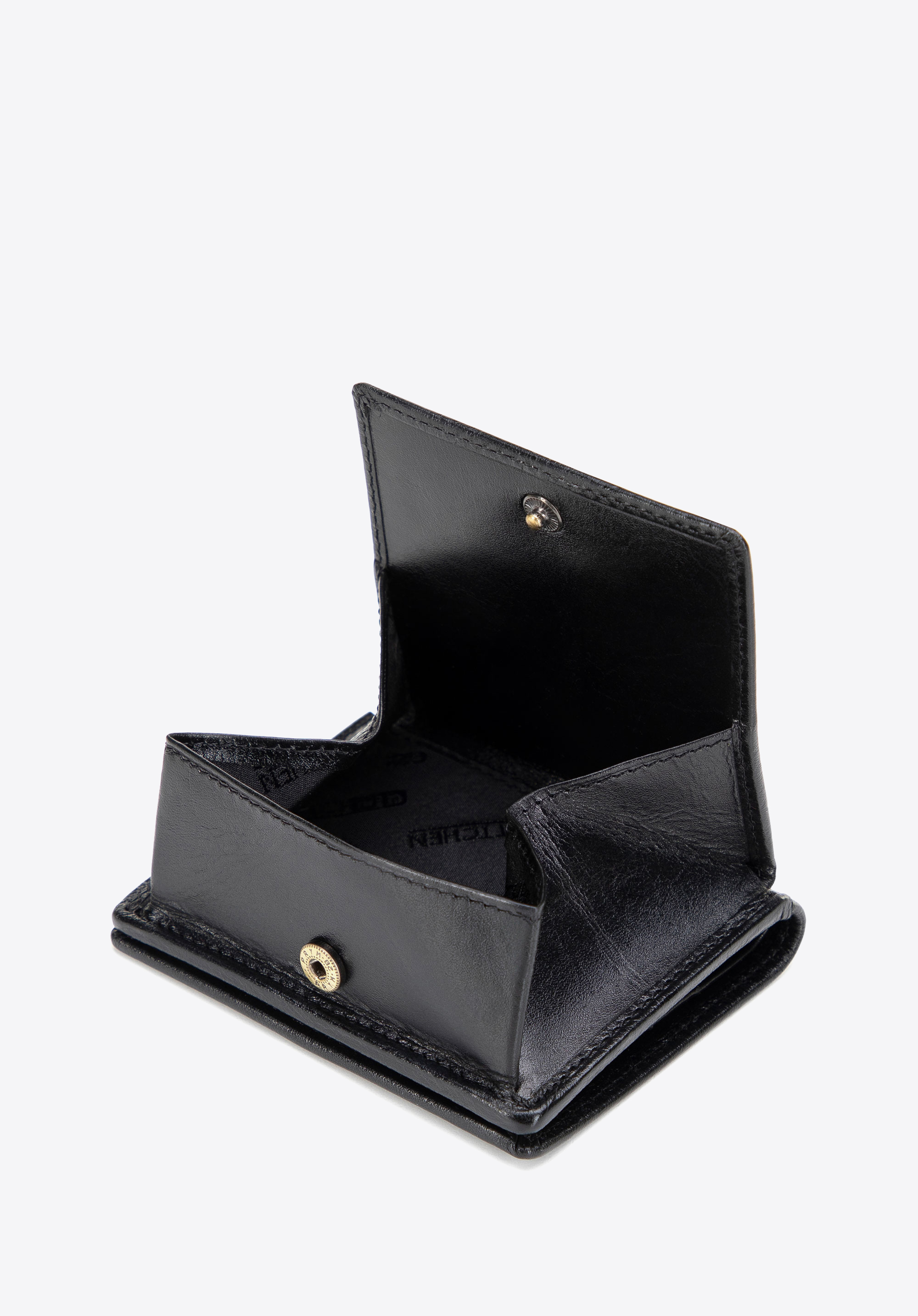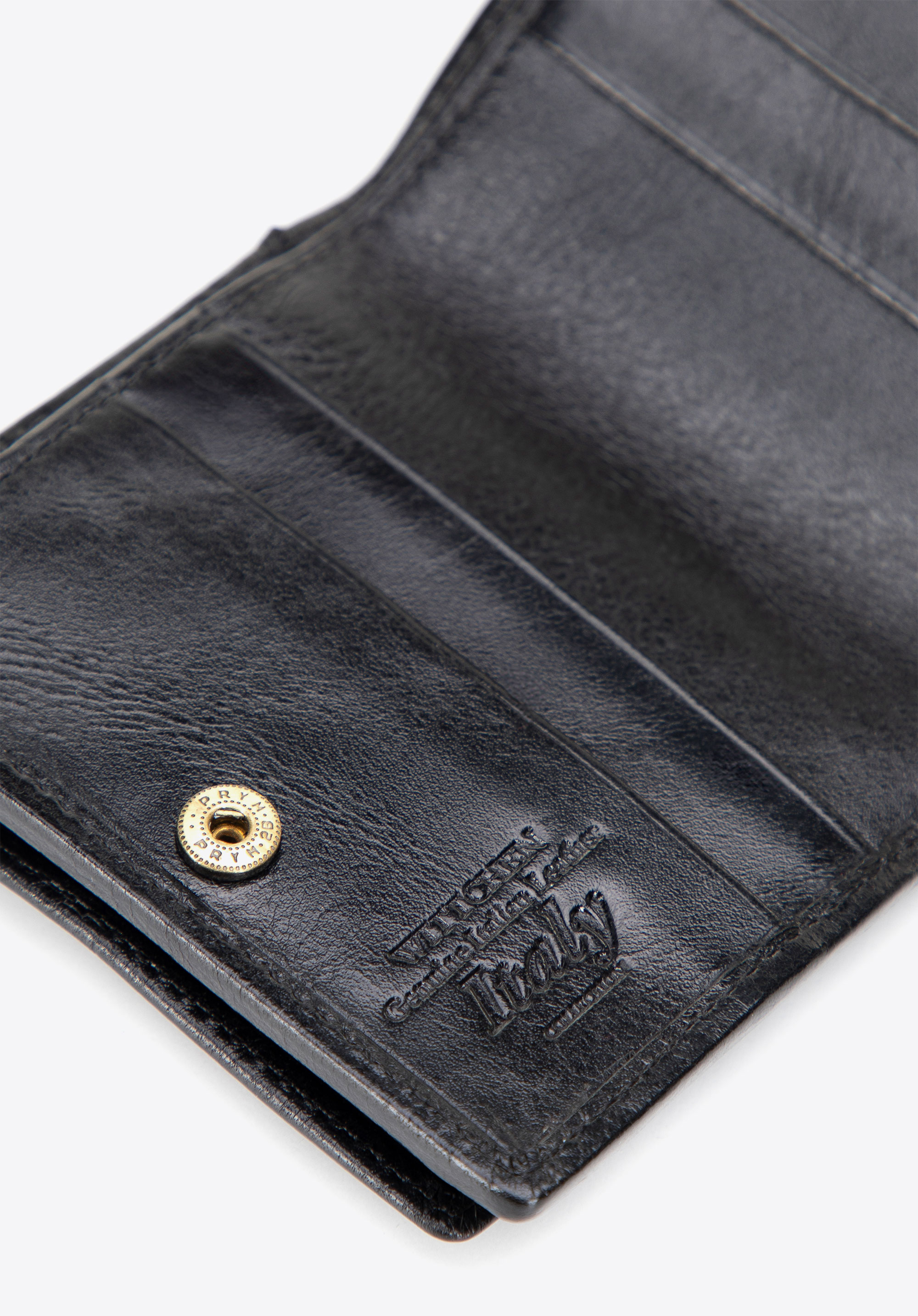 Ez a kis bőr pénztárca az Italy kollekcióból egy elegáns és funkcionális kiegészítő, amely kiváló minőségű , puha borjúbőrből készült. Kompakt méretének köszönhetően könnyen elfér egy zsebben vagy kézitáskában, míg az átgondoltan megtervezett belső térben érmék, bankjegyek és négy hitelkártya is elfér. Tökéletes választás azok számára, akik értékelik az eleganciát és a biztonságot.