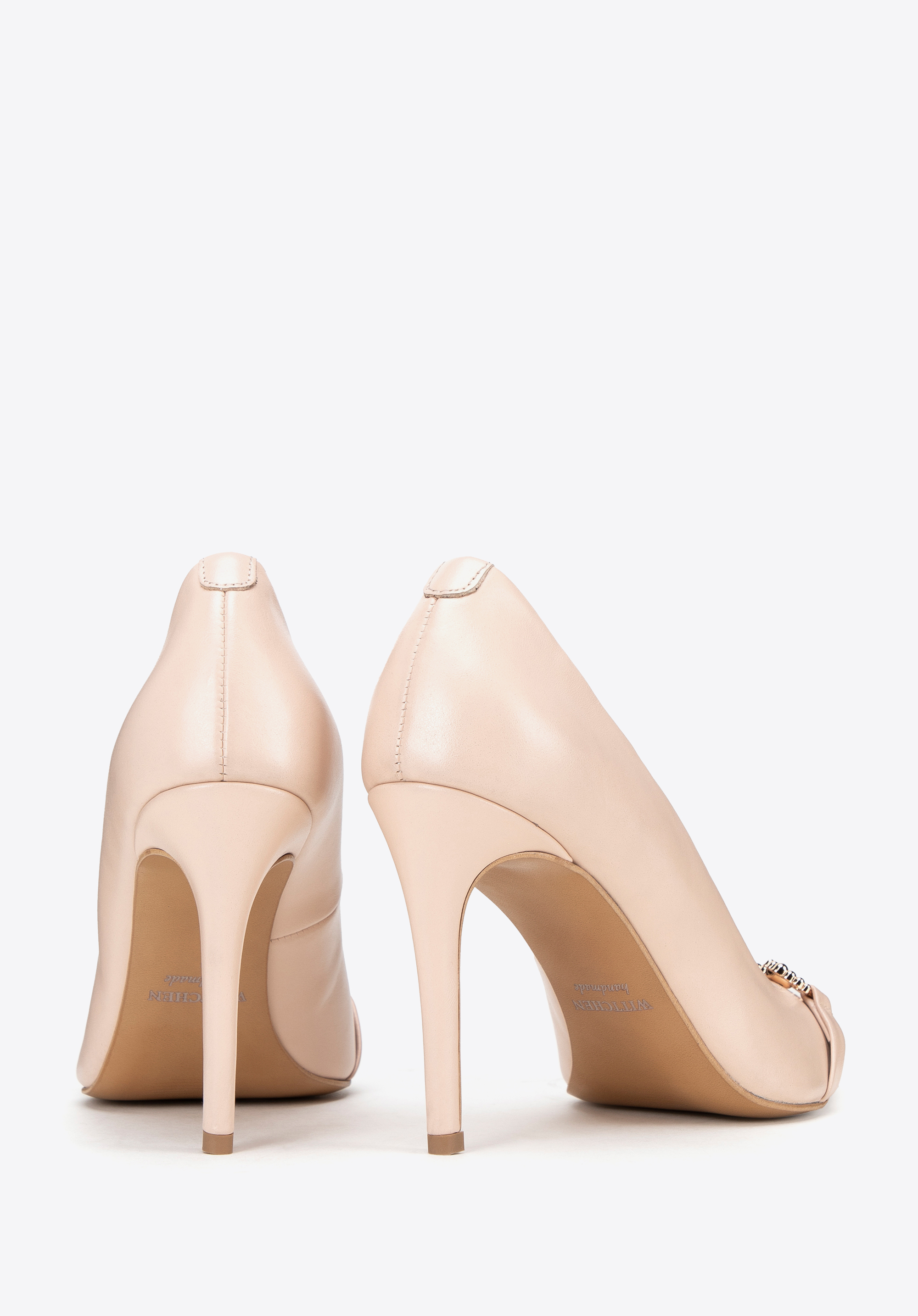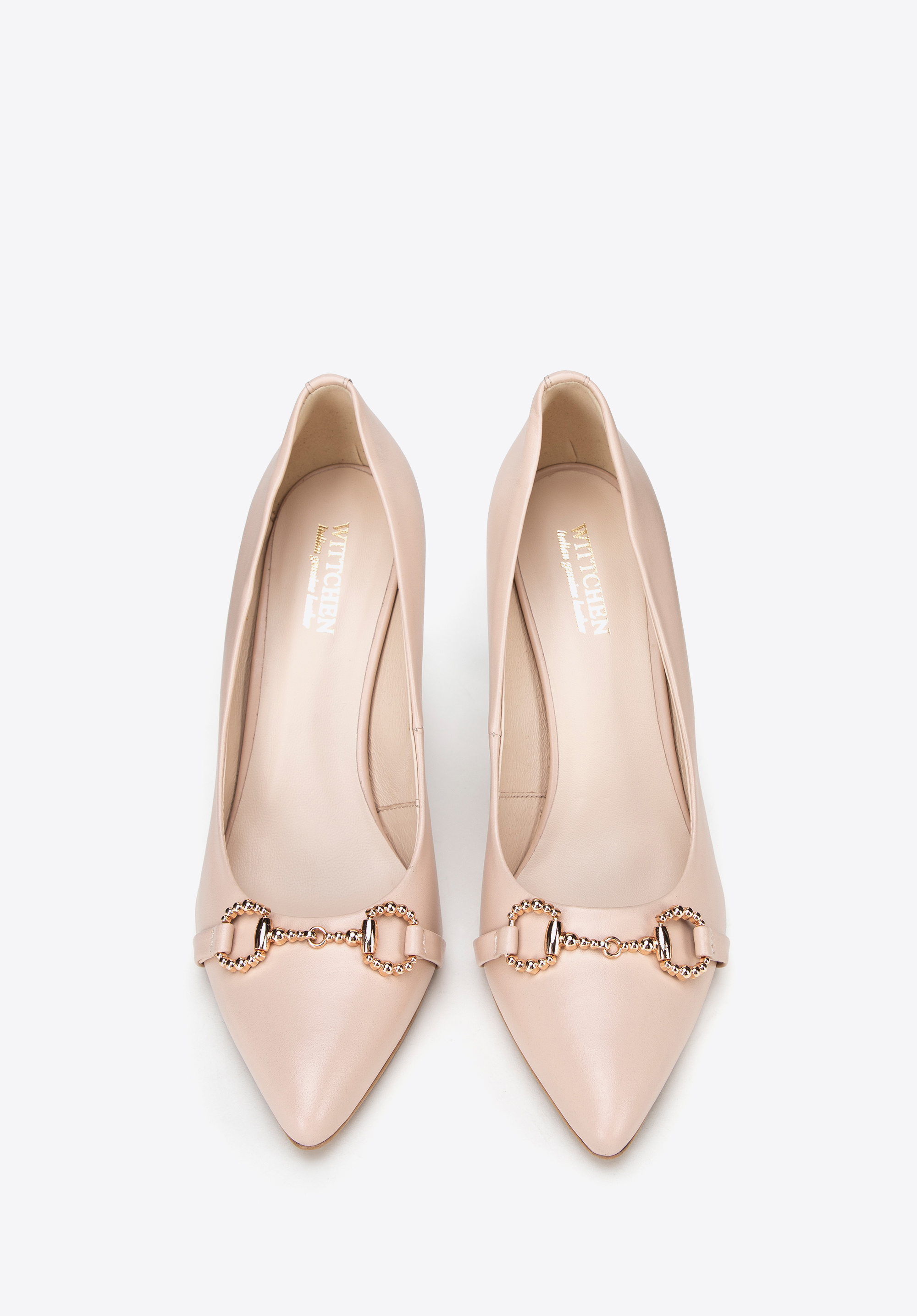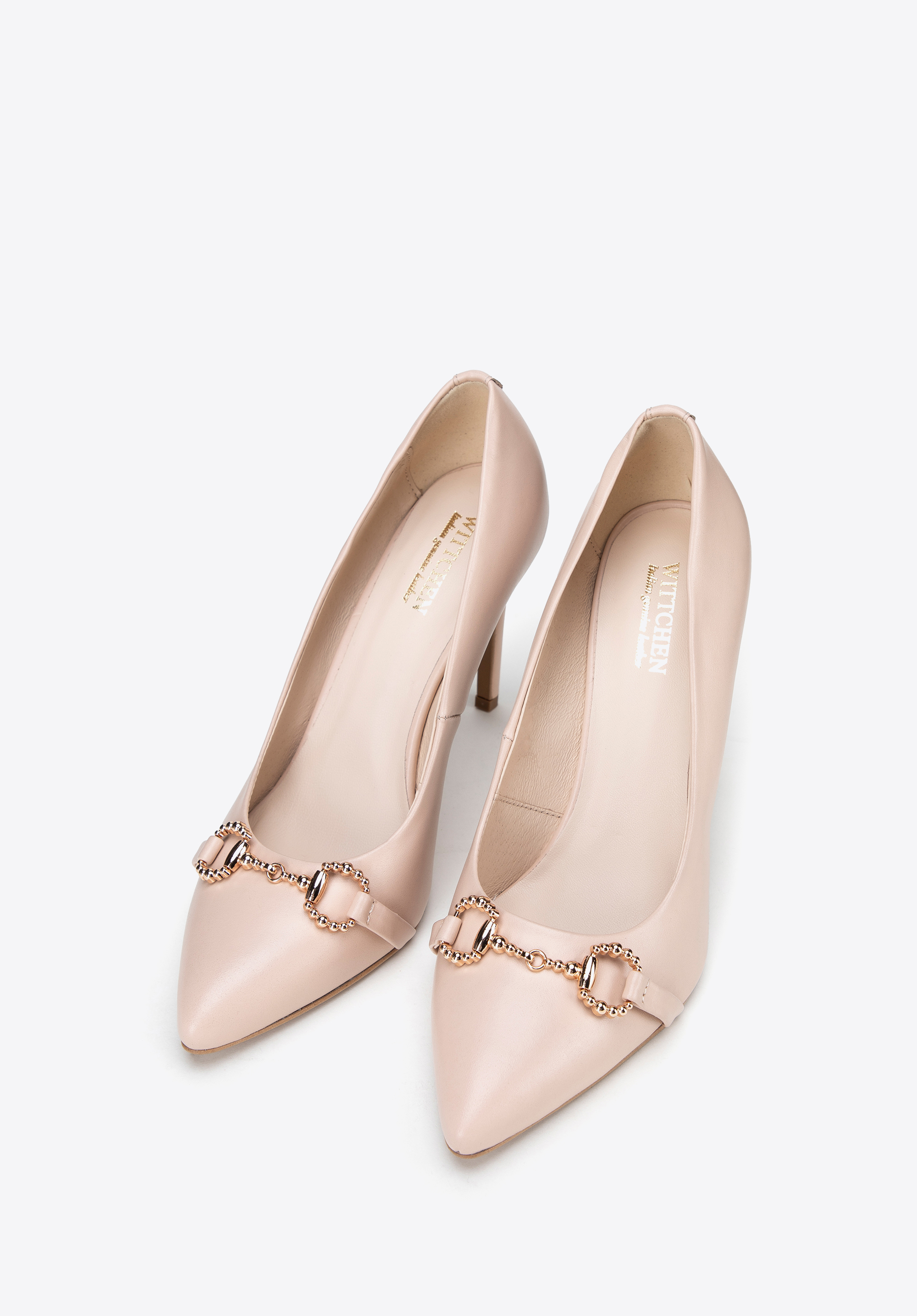 Fedezze fel a stílus és a kényelem tökéletes keverékét a prémium minőségű természetes bőrből készült női bőrsarkúinkkal . Ezek az elegáns, Lengyelországban készült cipők kiváló minőségű kivitelezésükkel tűnnek ki, és finom , fényes láncrészlettel rendelkeznek a varázslatért. A klasszikus hegyes orr vizuálisan megnyújtja a lábakat, míg a felsőrész egyedi kivágása modern hatást kölcsönöz.