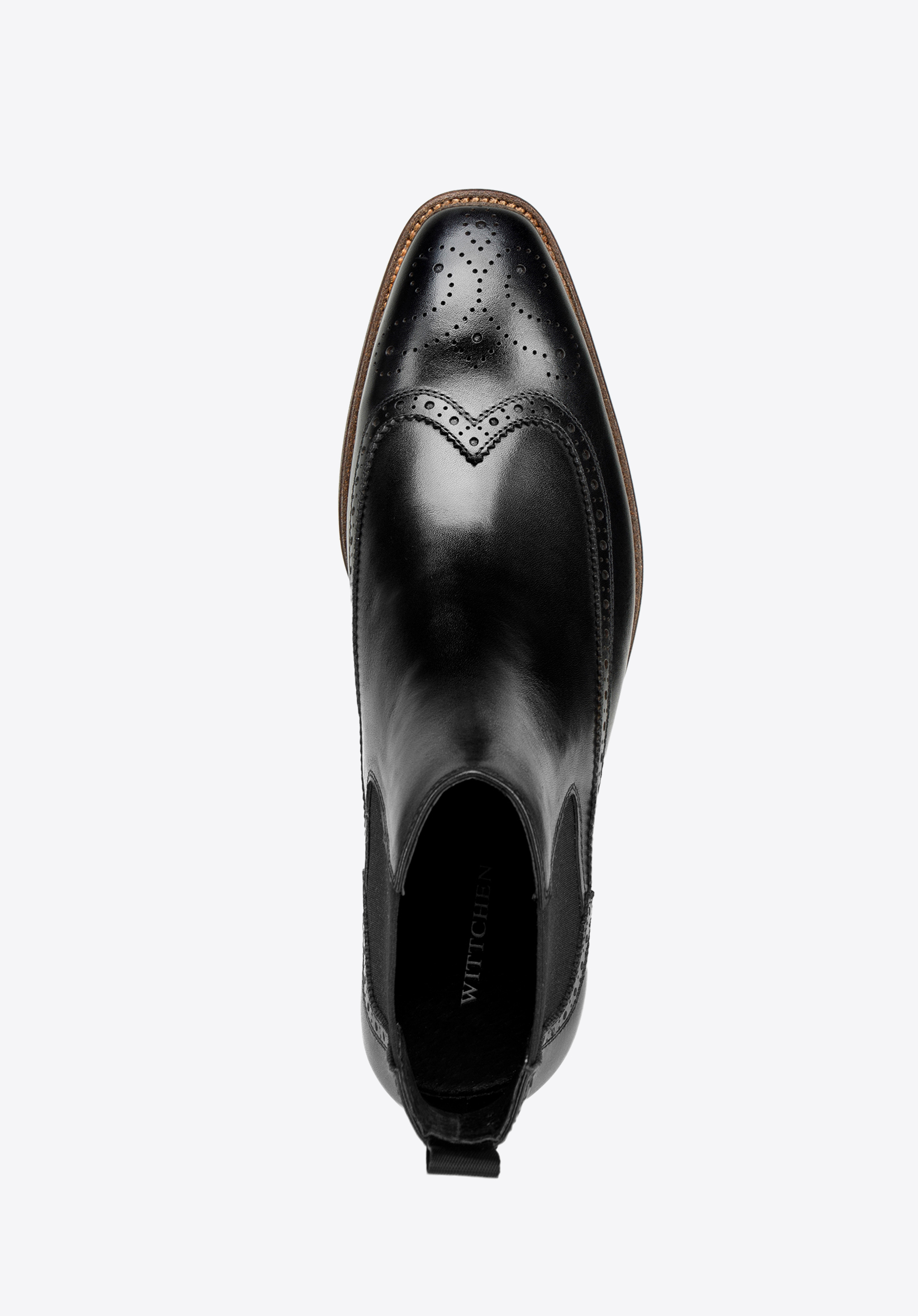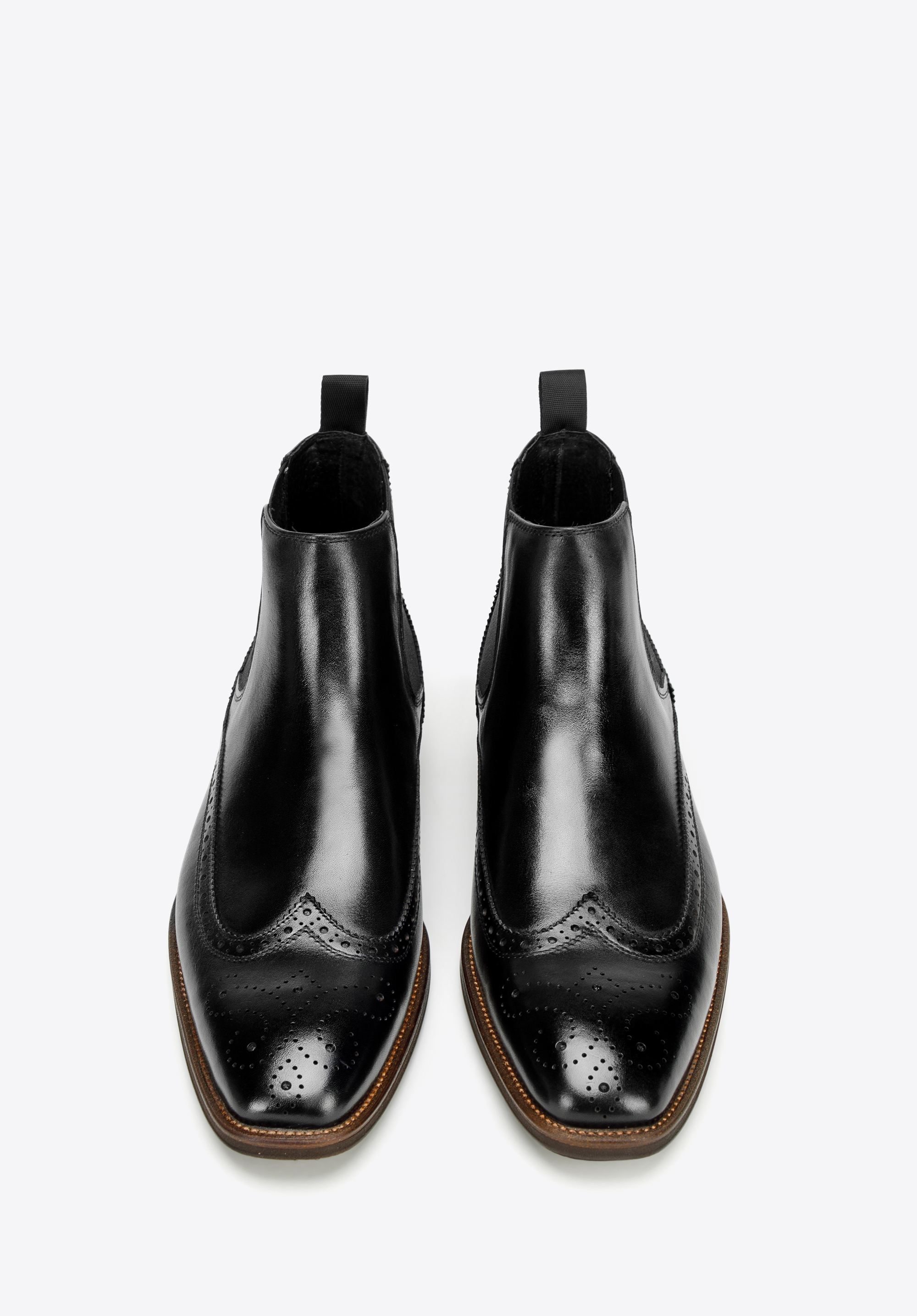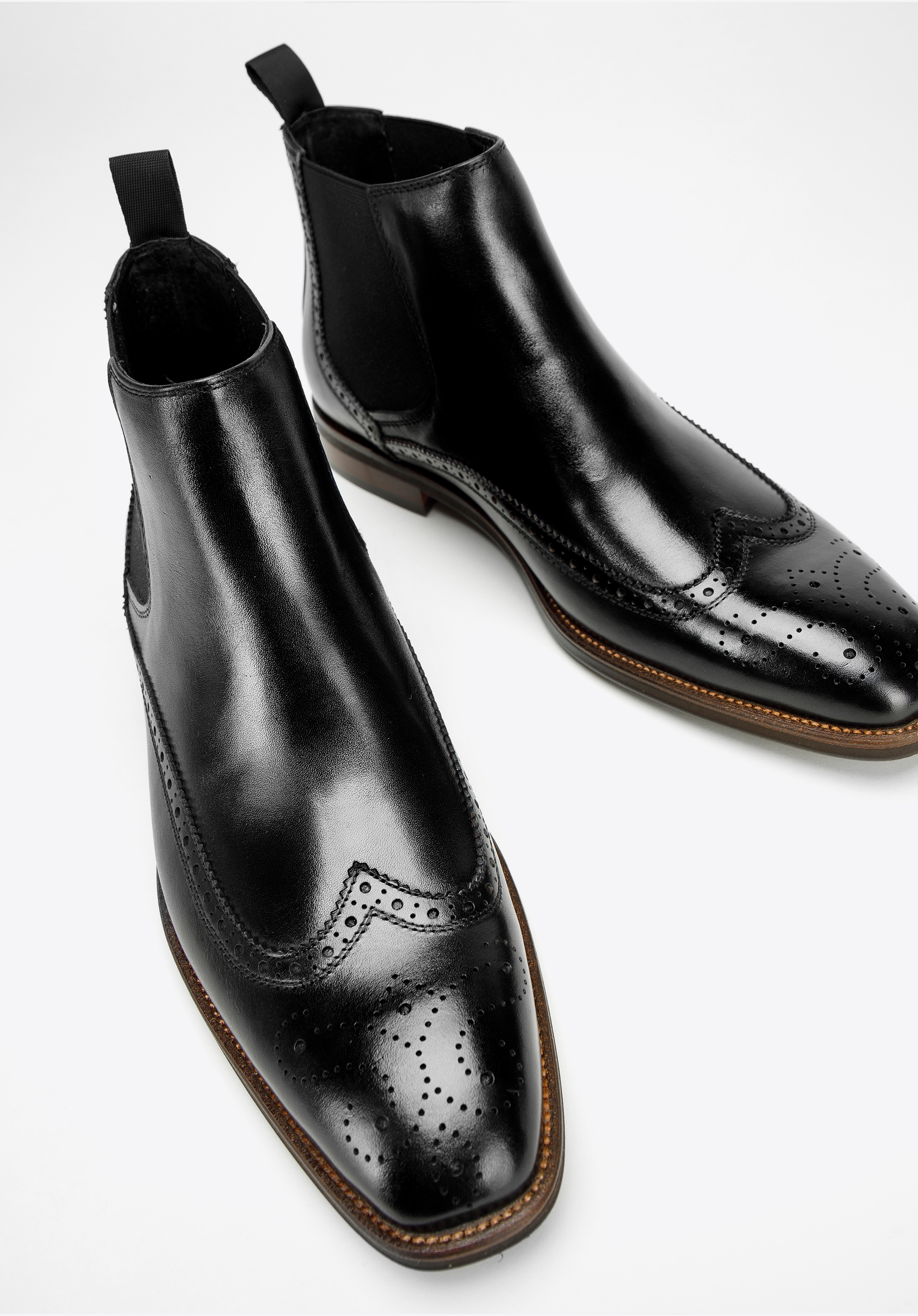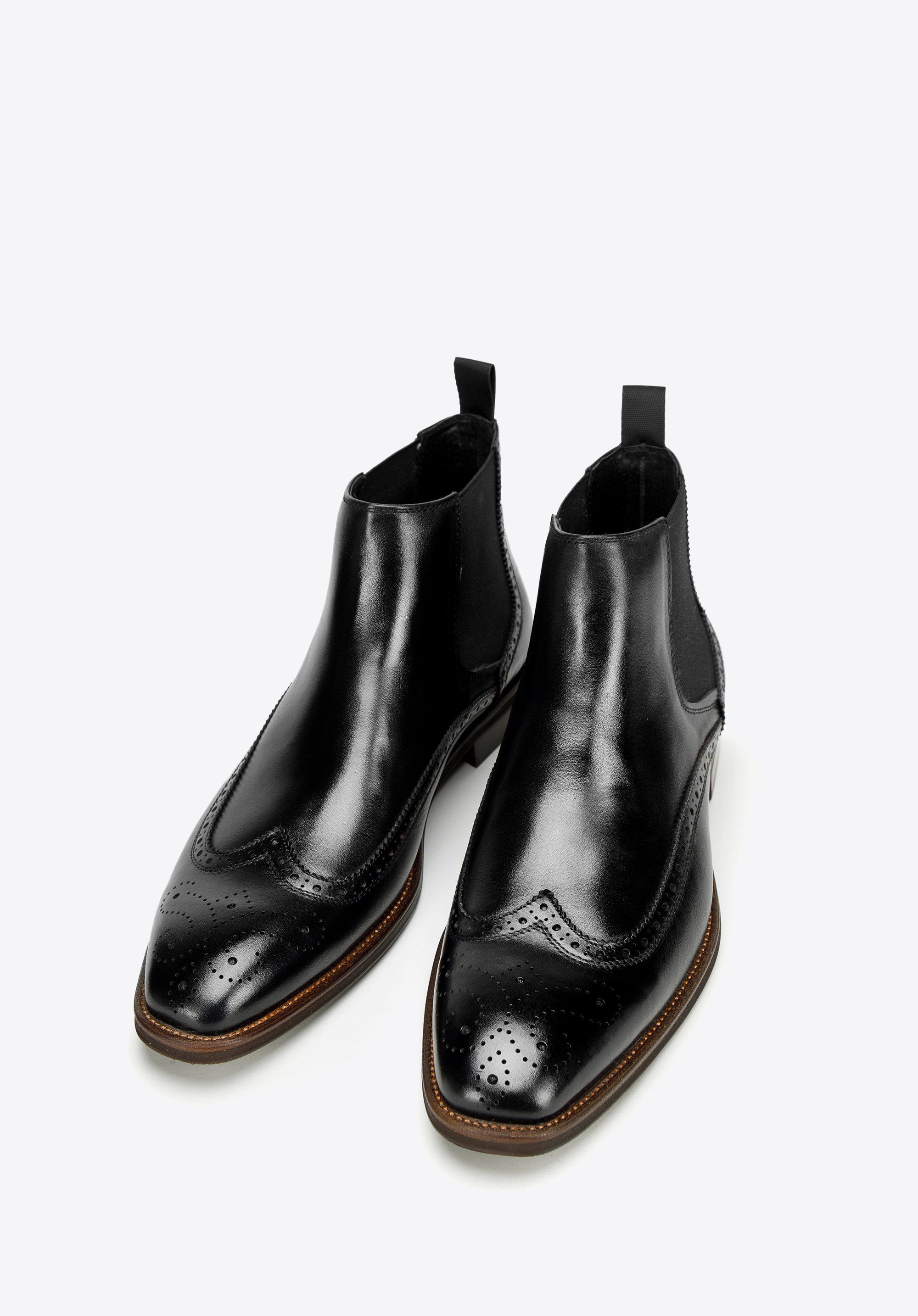Ez a jellegzetes férfi chelsea csizma forradalmasítja őszi-téli stílusodat. A legjobb minőségű természetes bőrből készült, dekoratív lyukasztással. A lekerekített orrnak és az elasztikus oldalpaneleknek köszönhetően tökéletes a hétköznapi, de a formális megjelenéshez is.