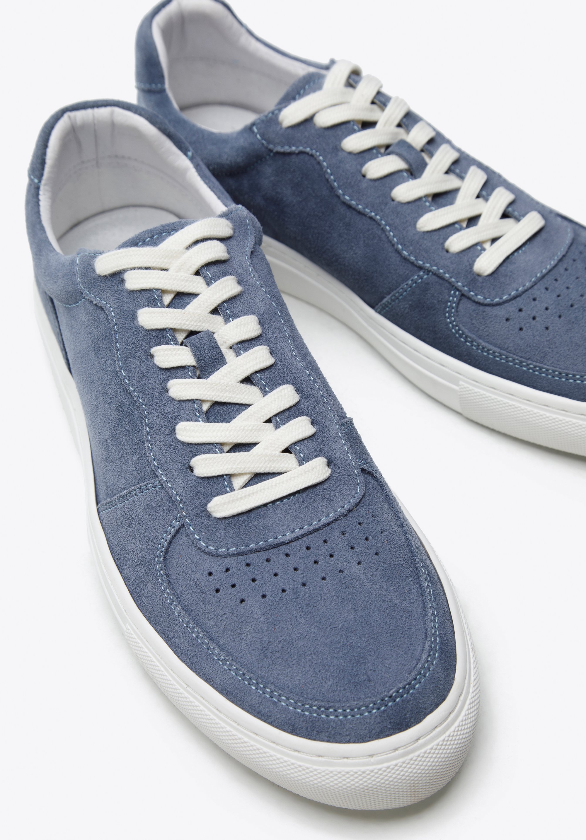 A klasszikus szabás, az elején díszes perforálással modern jelleget kölcsönöz.