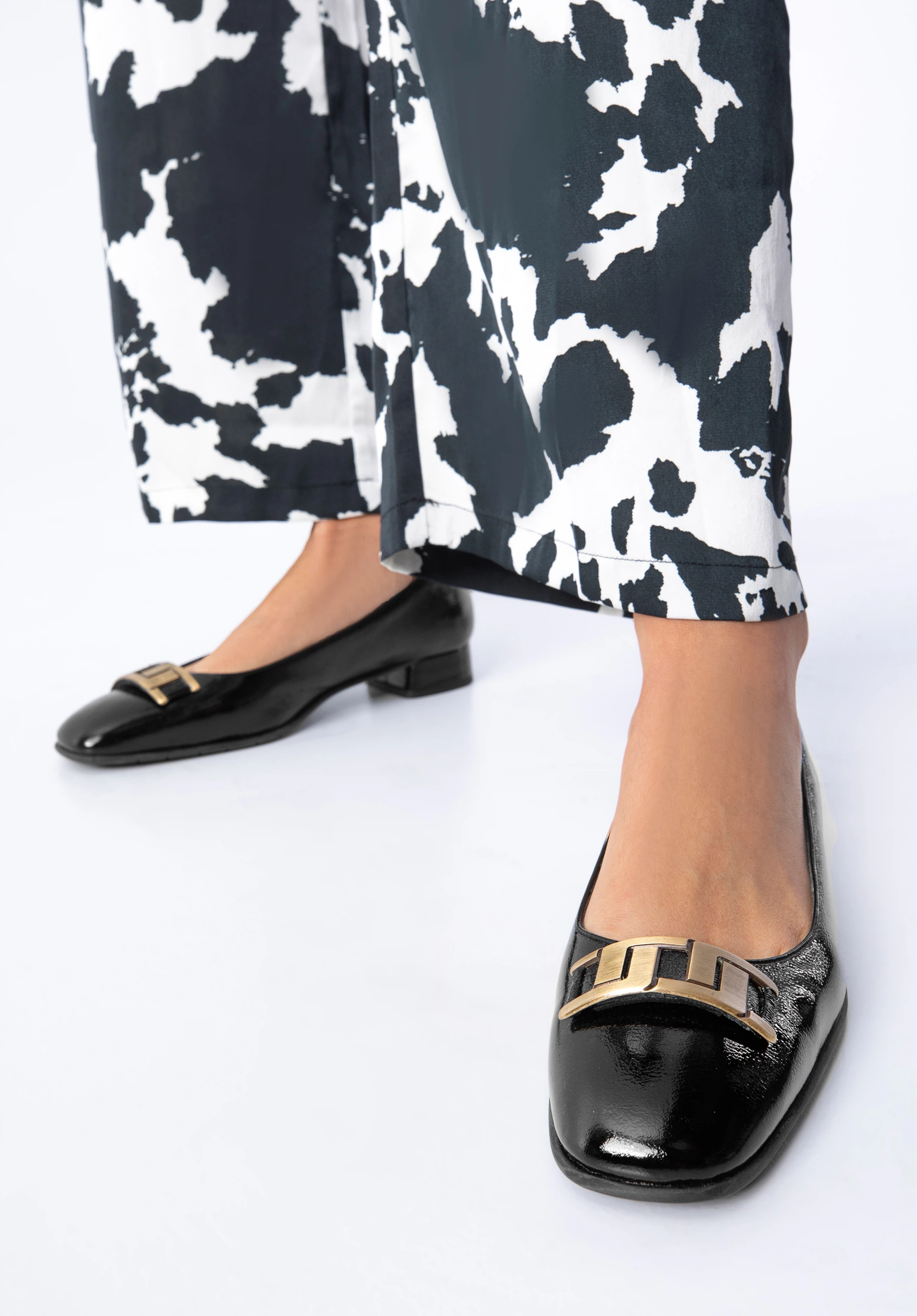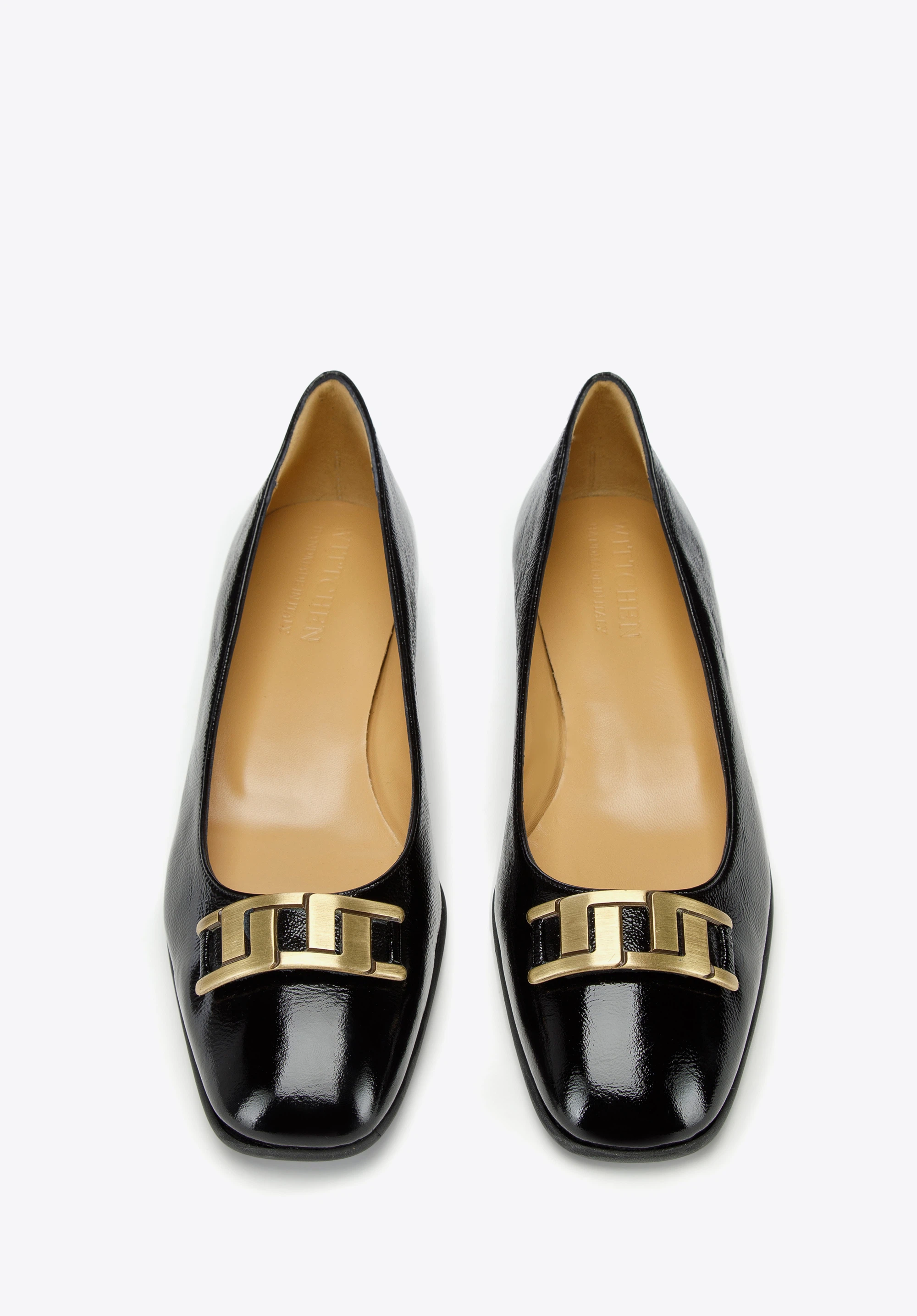 Elegáns és egyben rendkívül stílusos cipő az egész napos sétához. Csúcsminőségű olasz lakkbőrből készültek, alacsony sarokkal. Dekoratív geometrikus csatokkal a lehető legdivatosabb viseletet. Ez a cipő remekül passzol egy kis fekete ruhához, valamint a kedvenc chino nadrágodhoz és ingedhez. A geometrikus díszítésű lakkbőrből készült klasszikus cipő nagyszerű választás a kényelmes és stílusos kiegészítőket kedvelő nő számára.