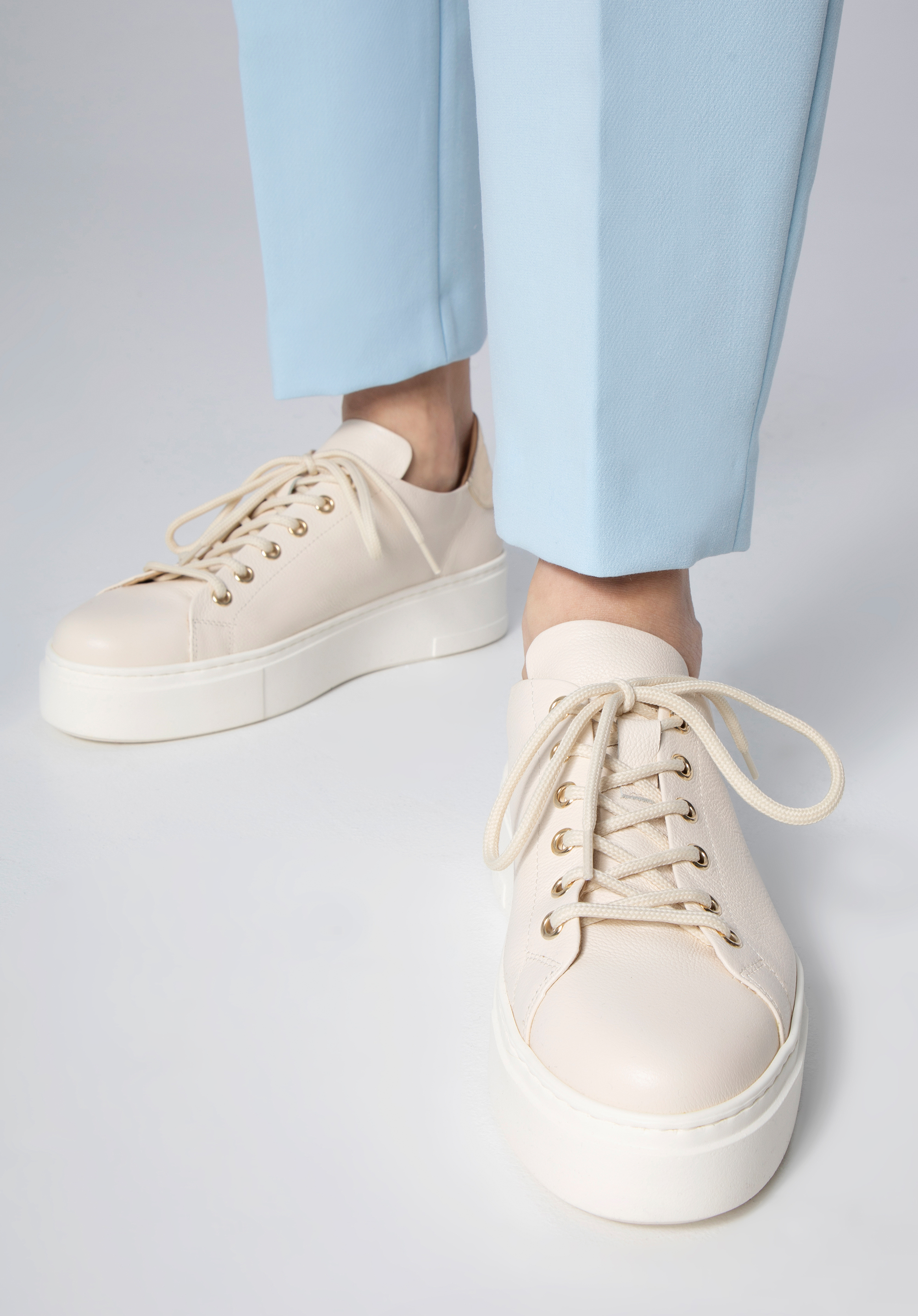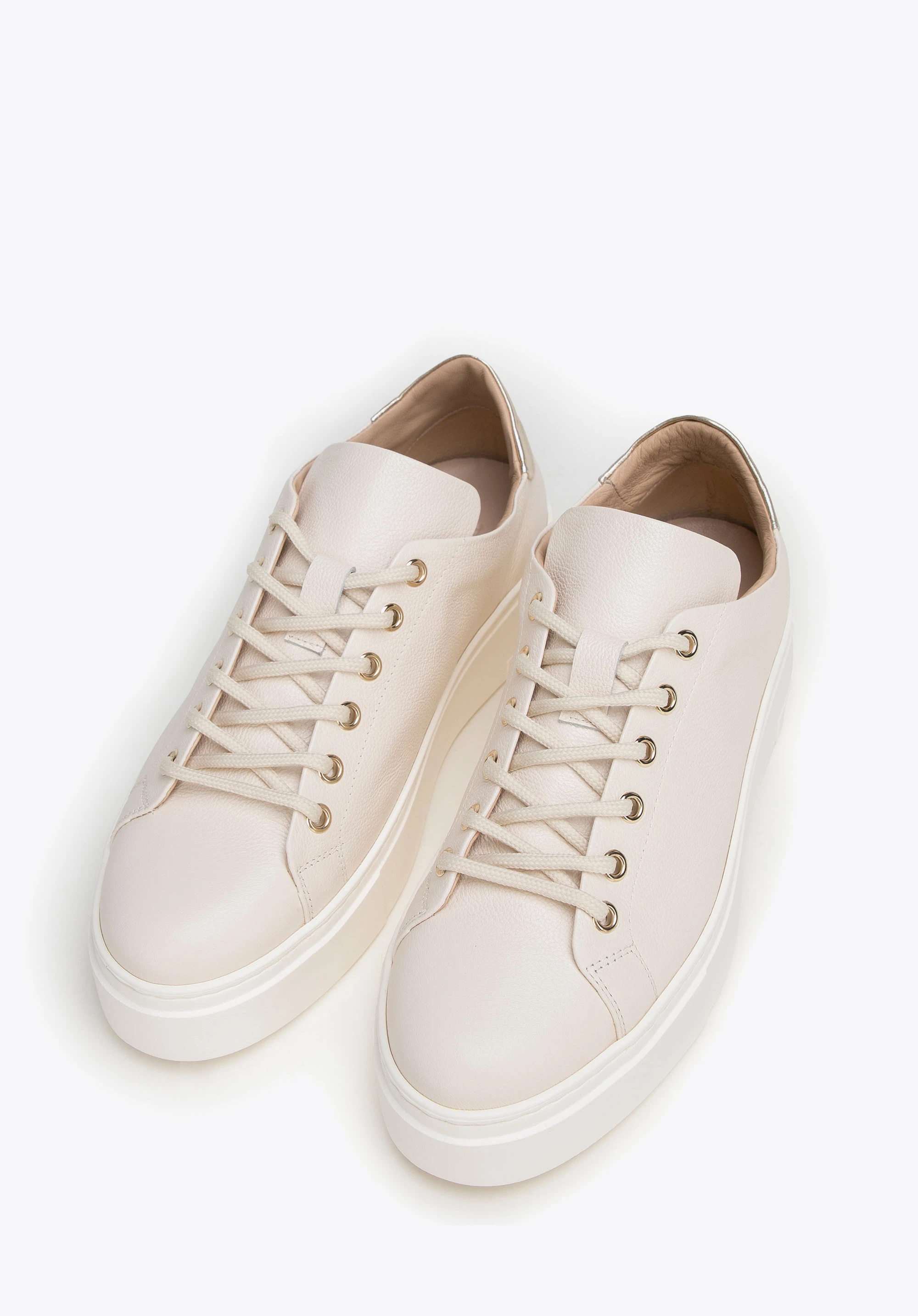 Klasszikus női bőr platform tornacipő világos bézs
