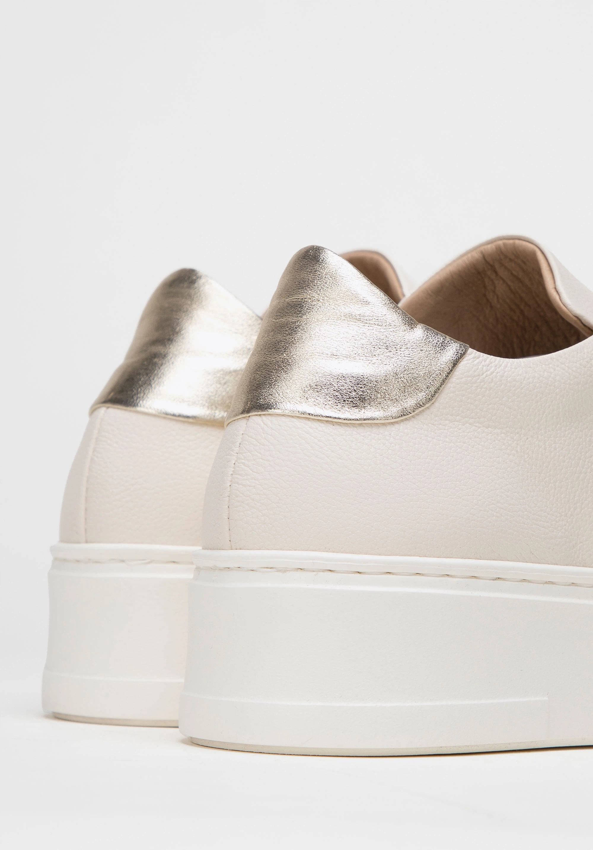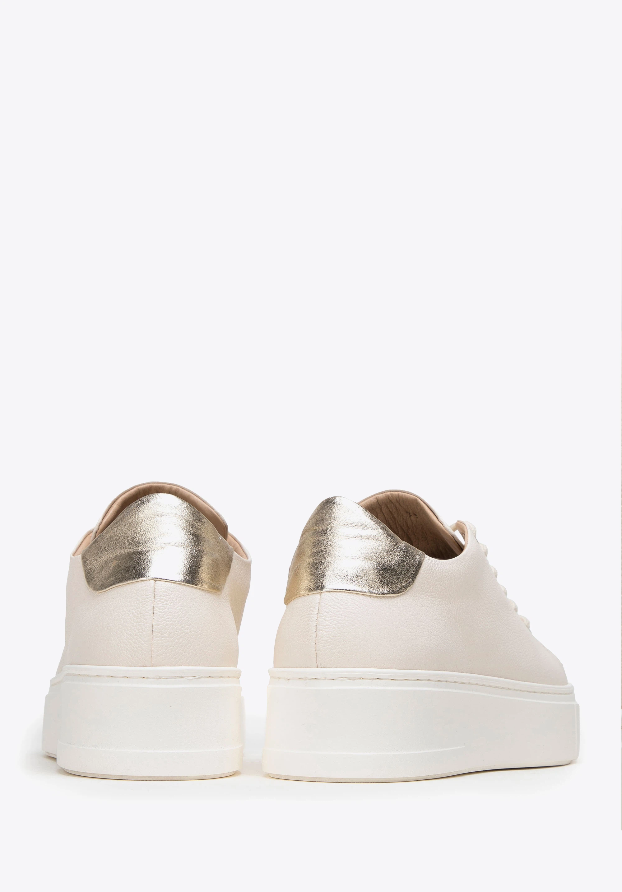 Párosítsd ezeket az elegáns cipőket szinte bármilyen öltözékhez. Kiváló minőségű természetes bőrből készültek, így évekig tartó kiegészítőnek számítanak. A világos színösszeállítást a saroknál lévő csillogó arany betét emeli ki. A vastag platform meglehetősen könnyű, és néhány centiméteres magasságot kölcsönöz. A bőr talpbetétnek és bélésnek köszönhetően órákig kényelmesen tudsz járni bennük. Párosítsd a cipőket kedvenc miniruháiddal vagy farmerrel és pulóverrel a hétköznapokban - minden helyzetben divatosan egészíti ki az öltözéked. Ez a női platformos bőr tornacipő egy klasszikus stílust képvisel egy modern csavarral, amelyet több évszakon át viselhetsz.