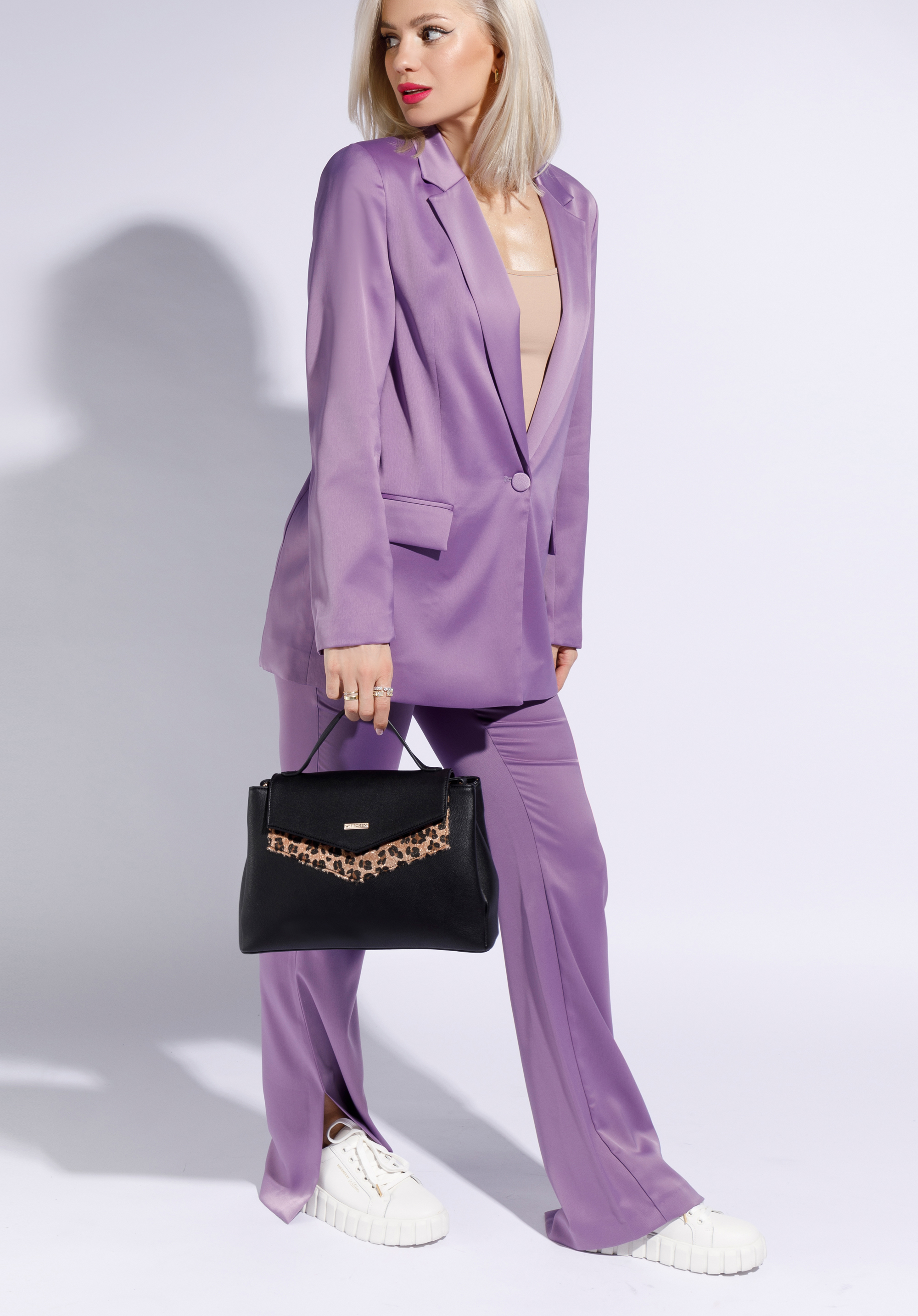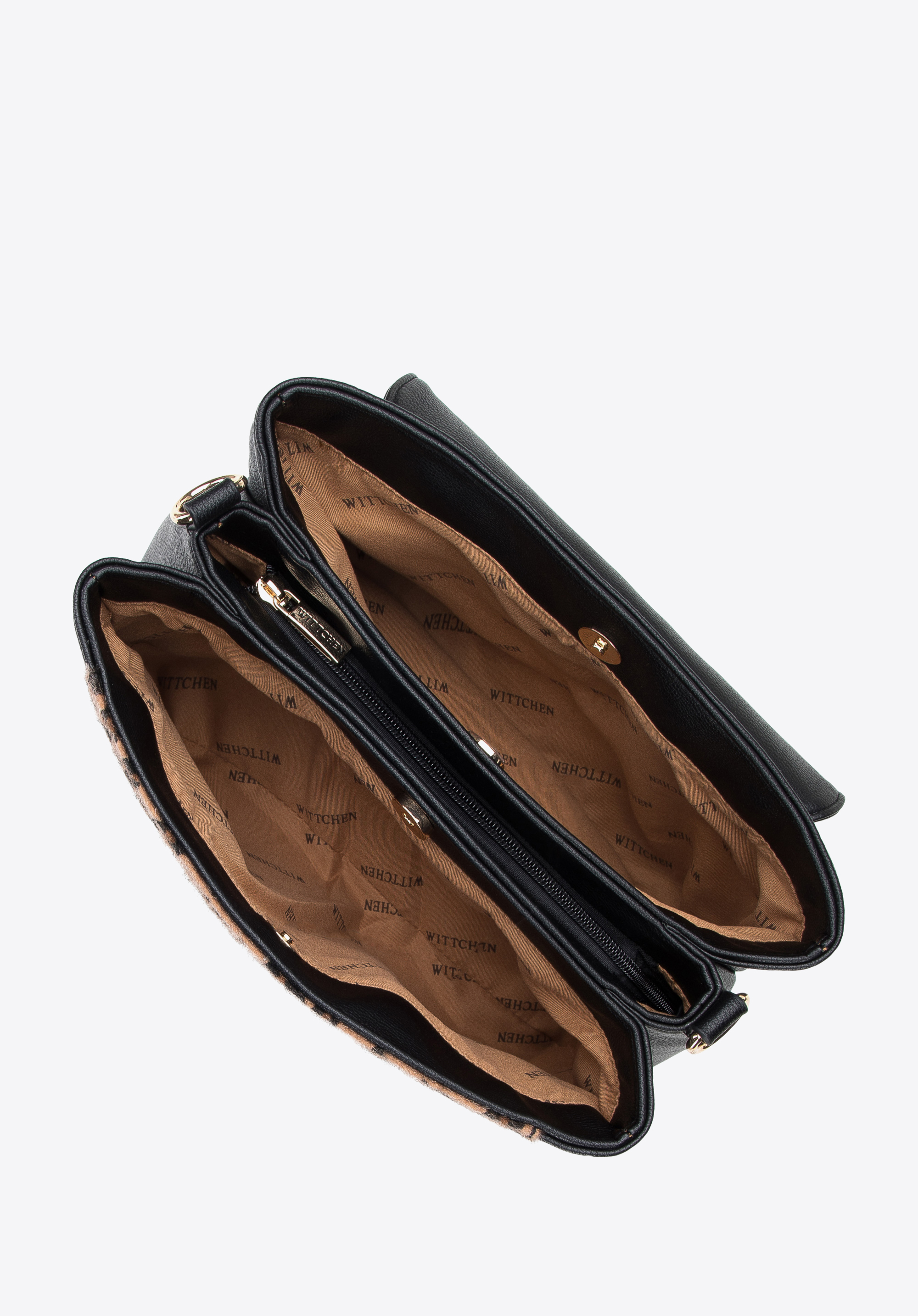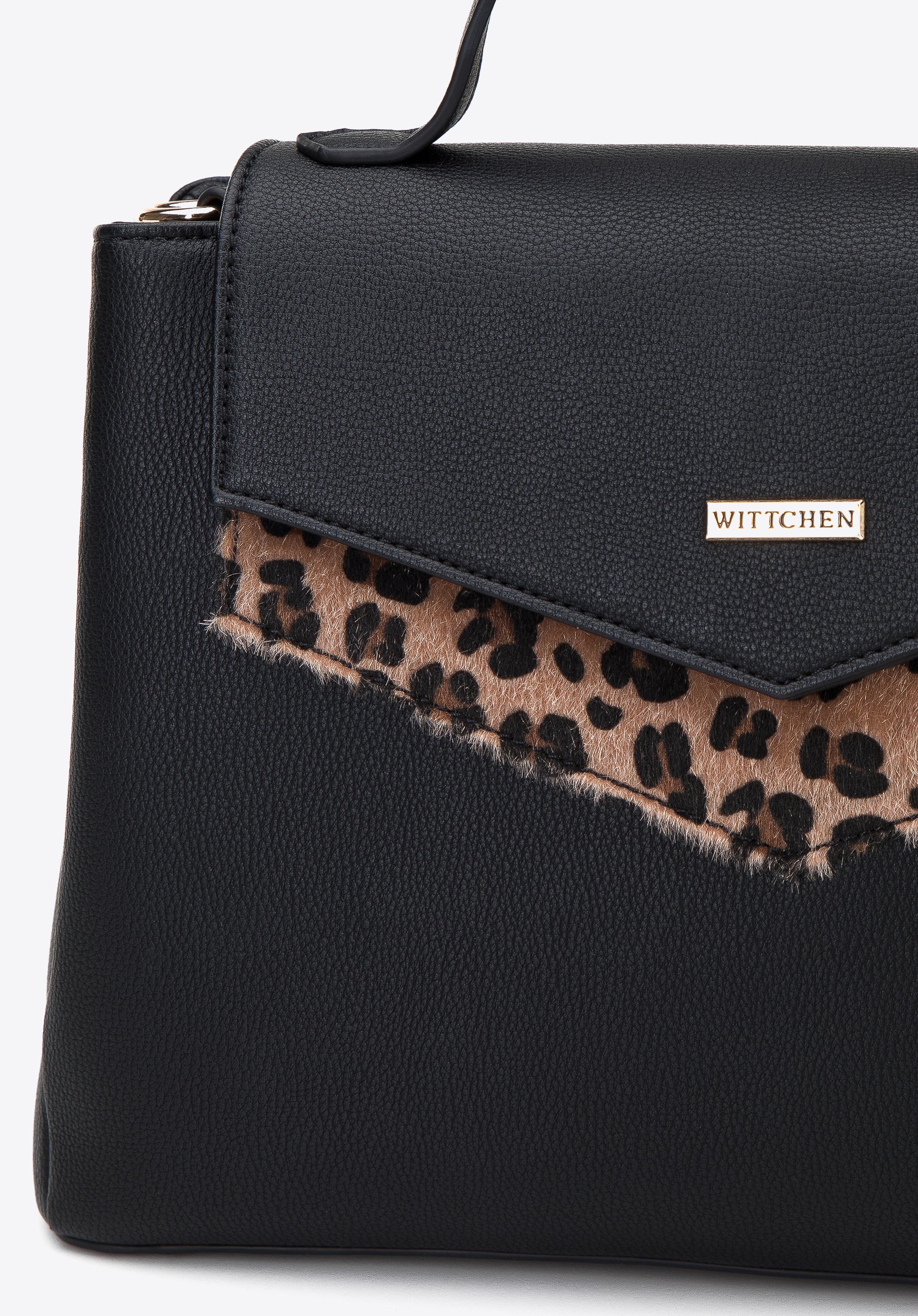 A kofferkézitáska állatmintás díszbetéttel remek választás minden olyan nő számára, aki kedveli a klasszikusokat modern lezárással.