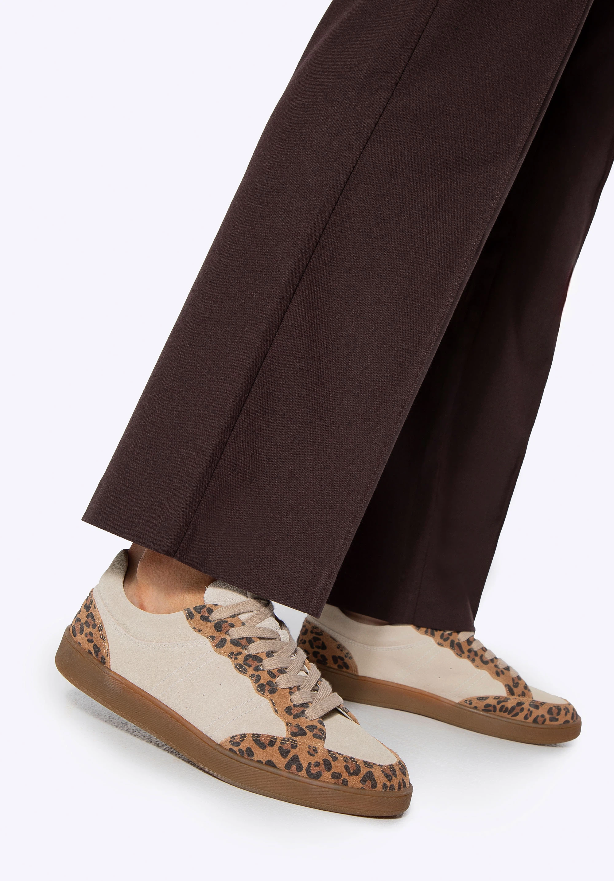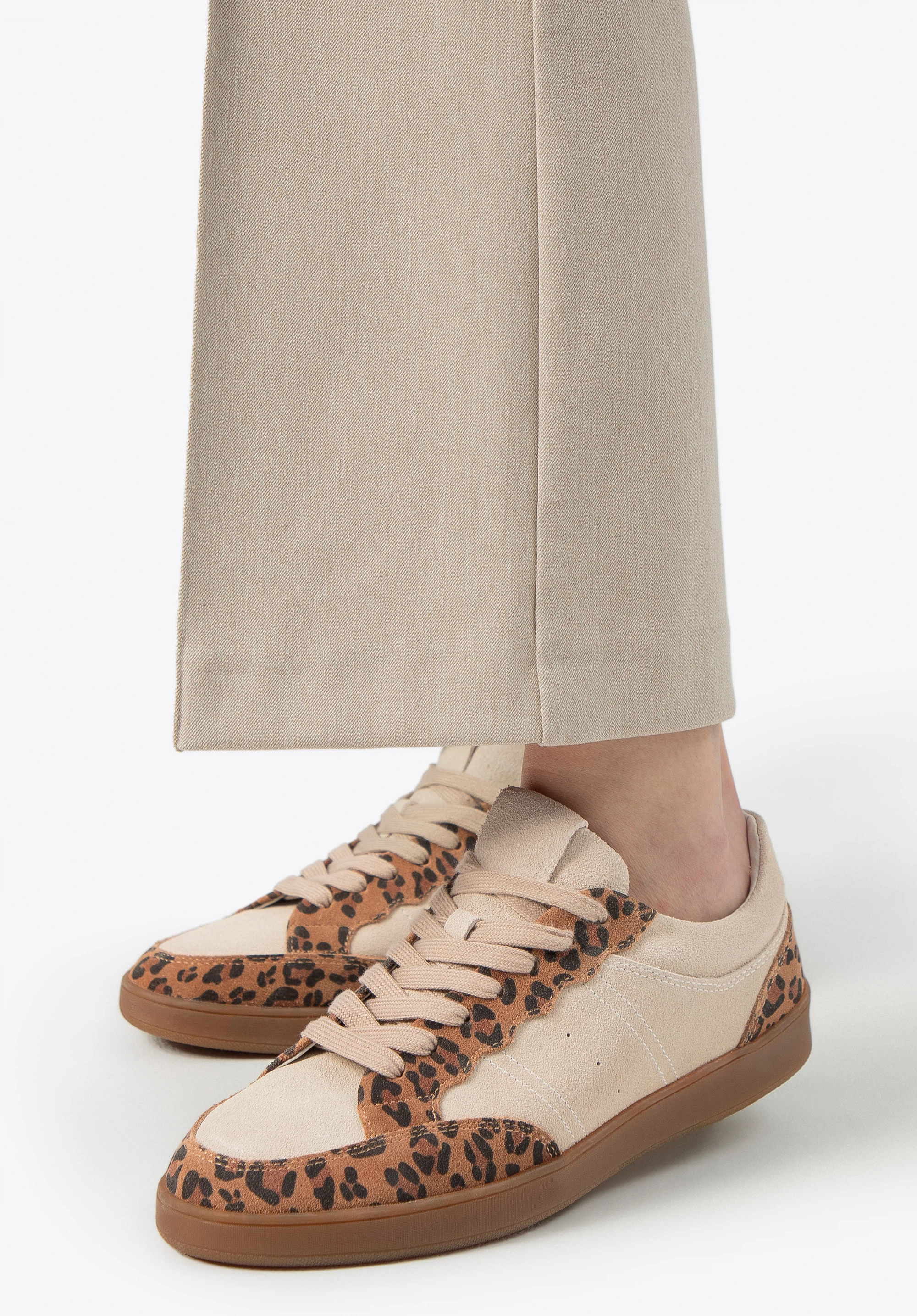 Női edzőcipő, amelyek a divatos megjelenést ötvözi a mindennapi kényelemmel! Puha velúr bőrből készült és műbőr betétekkel kiegészítve kontrasztos textúrájával és modern kinézetével lenyűgöző hatást vált ki. A fűzős dizájn tökéletes illeszkedést biztosít, míg a hátoldalon található finom logó jellegzetes vonást ad. A strapabíró TPR anyagból készült lekerekített orr és platformtalp egész napos kényelmet garantál – bárhová is megy.