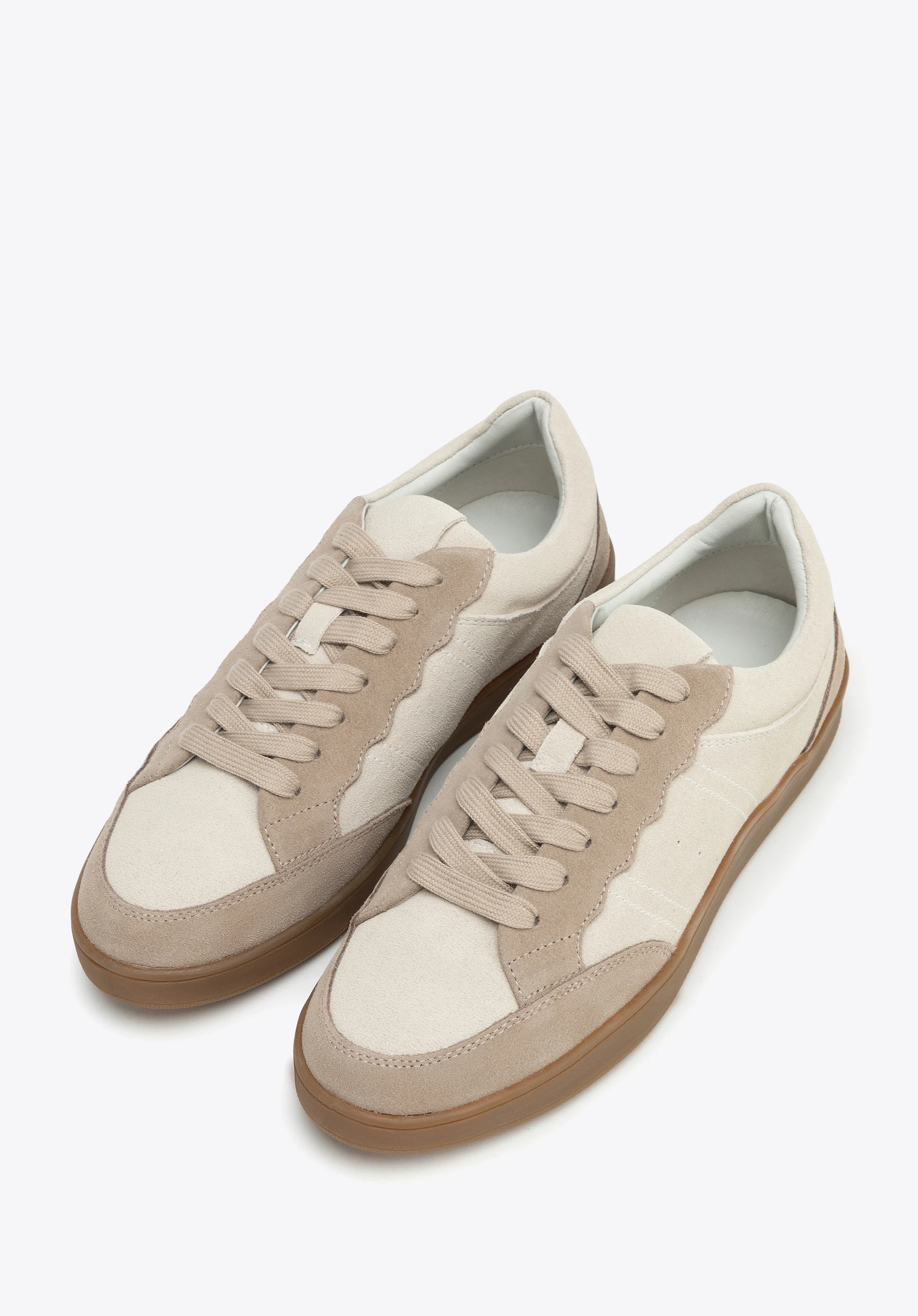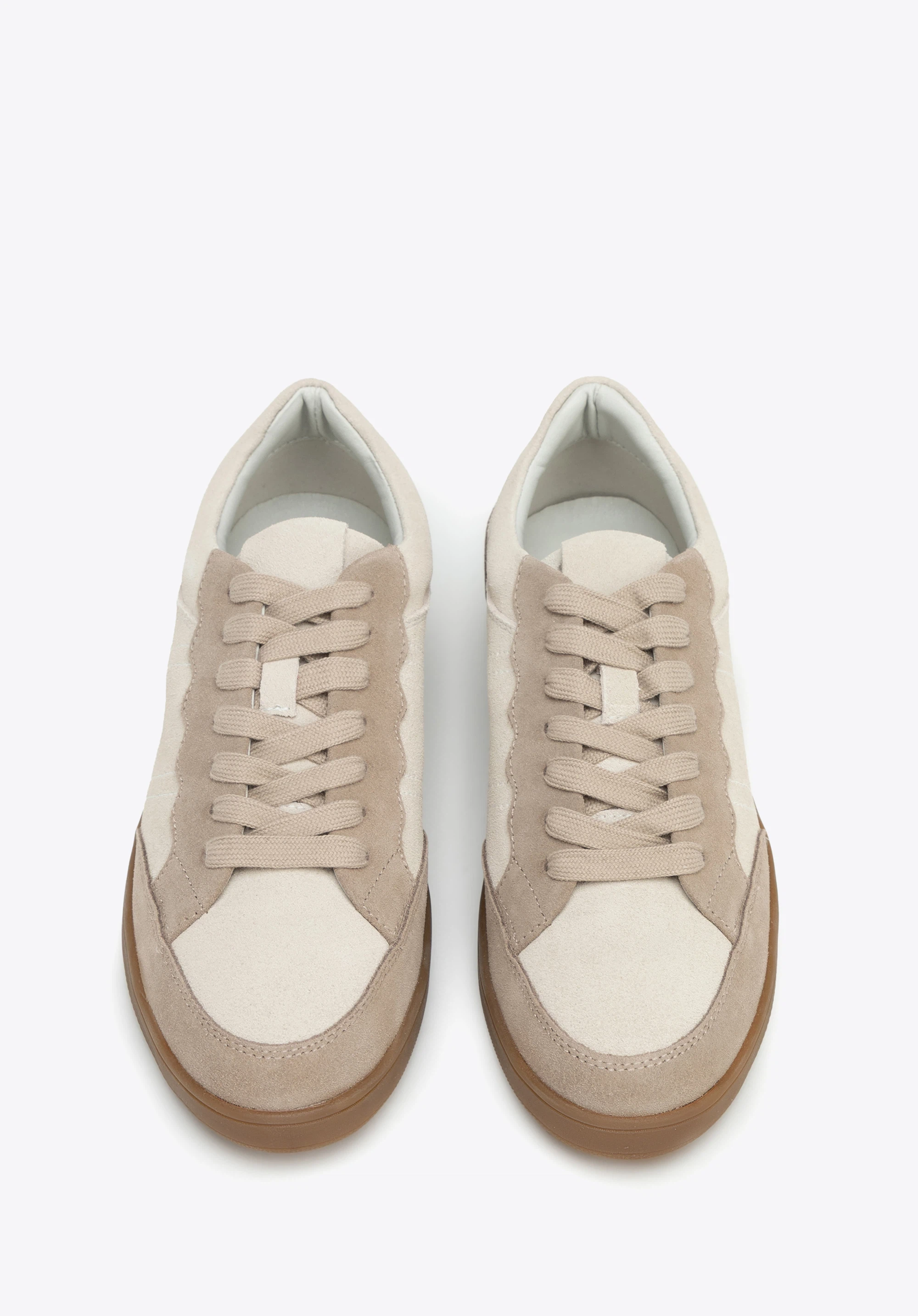 Női edzőcipő, amelyek a divatos megjelenést ötvözi a mindennapi kényelemmel! Puha velúr bőrből készült és műbőr betétekkel kiegészítve kontrasztos textúrájával és modern kinézetével lenyűgöző hatást vált ki. A fűzős dizájn tökéletes illeszkedést biztosít, míg a hátoldalon található finom logó jellegzetes vonást ad. A strapabíró TPR anyagból készült lekerekített orr és platformtalp egész napos kényelmet garantál – bárhová is megy.