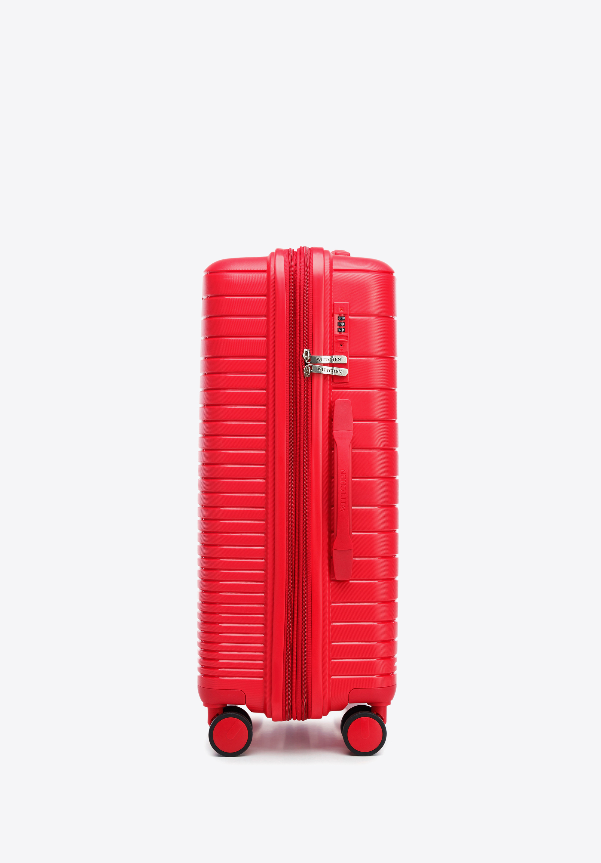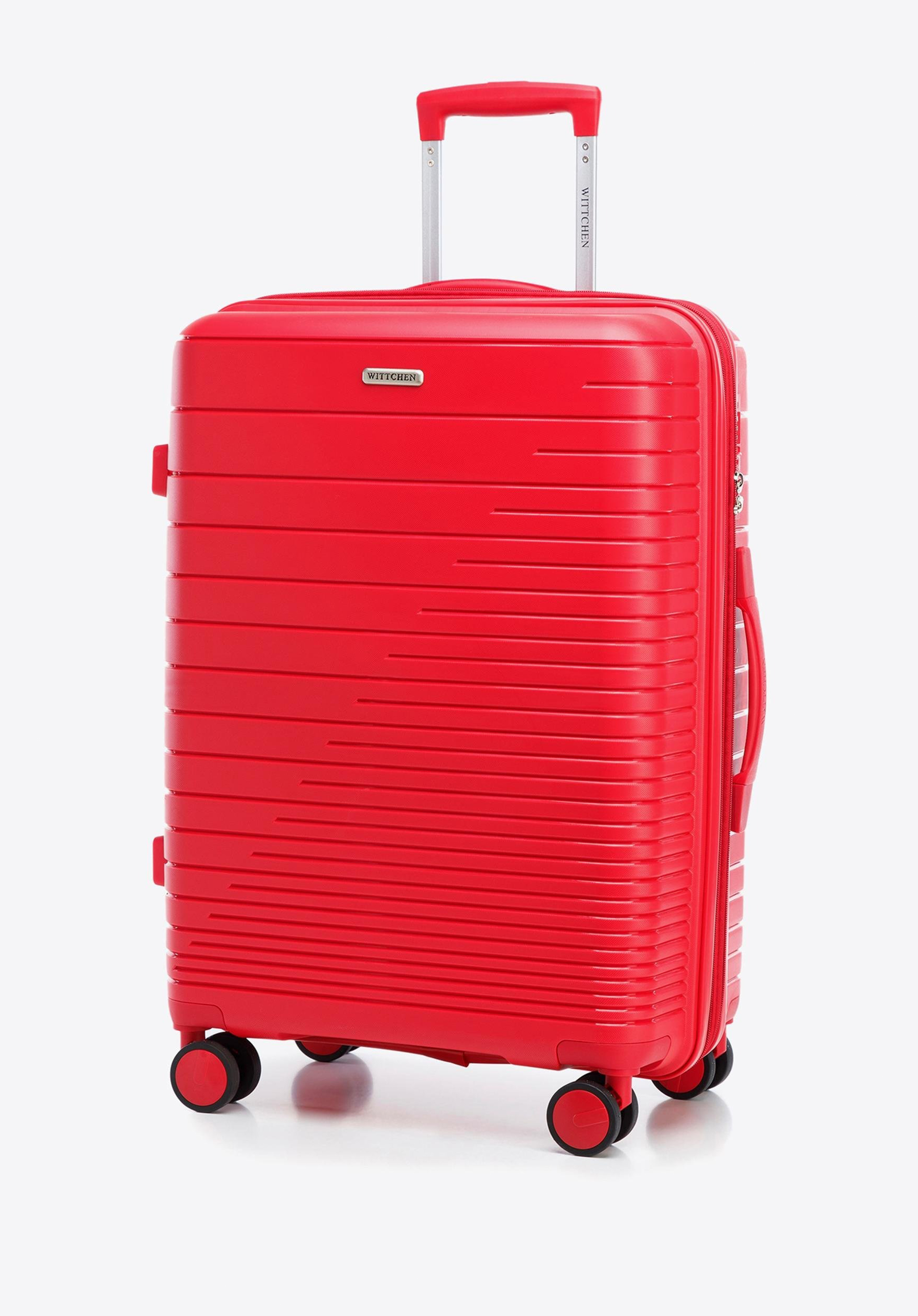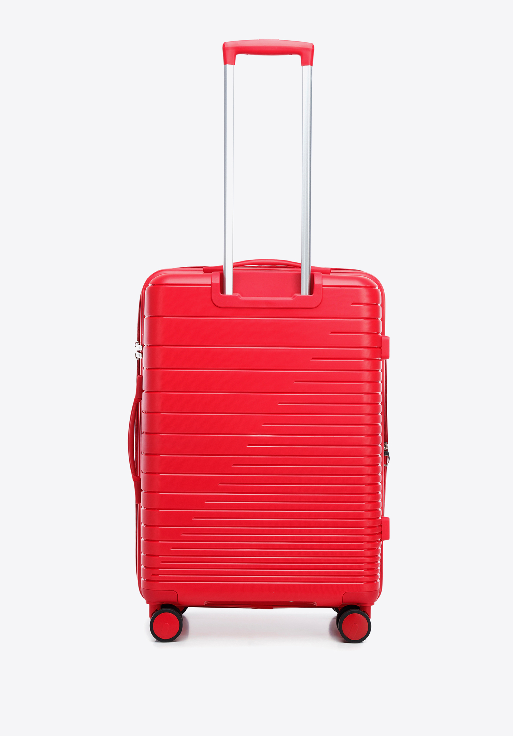 Ez a közepes méretű bőrönd tökéletesen kiegészíti minden utazását. Praktikus, stílusos és TSA zárral van felszerelve , amely biztosítja a tartalom biztonságát. Kiváló minőségű polipropilénből készült , így könnyű és nagyon rugalmas modell . A matt felületet fényes vízszintes csíkok domborítják, amelyek modern jelleget kölcsönöznek az egésznek. Belsejében két rekesz található , ahova könnyedén pakolhatsz. A négy dupla keréknek és a teleszkópos fogantyúnak köszönhetően kényelmes lesz a mozgatása. Ez a közepes méretű , fényes csíkokkal ellátott polipropilén bőrönd minden utazásrajongó számára remek választás.