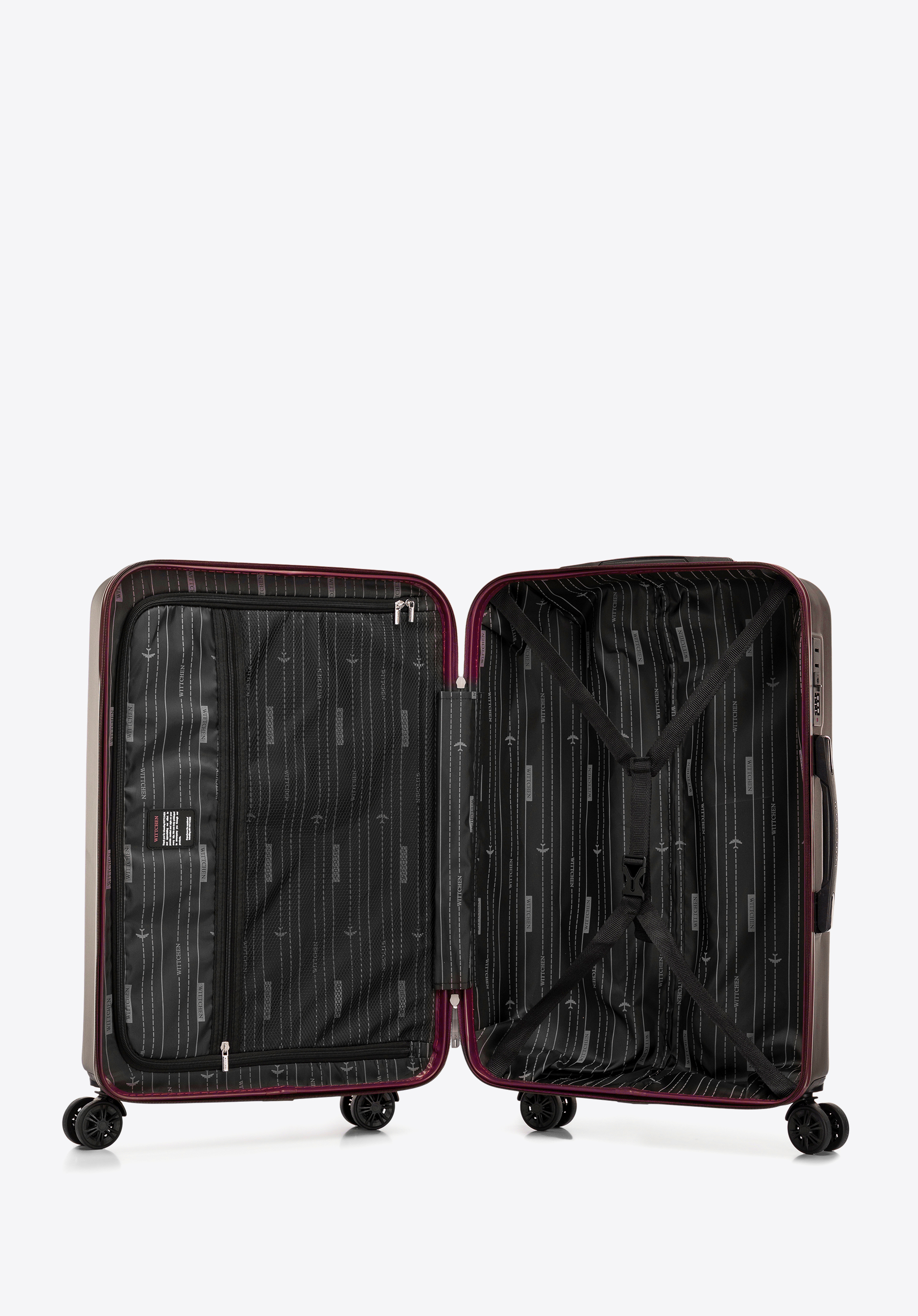 - Teleszkópos fogantyú: három fokozatú magasságállítás biztosítja a kényelmet a bőrönd manőverezése során.