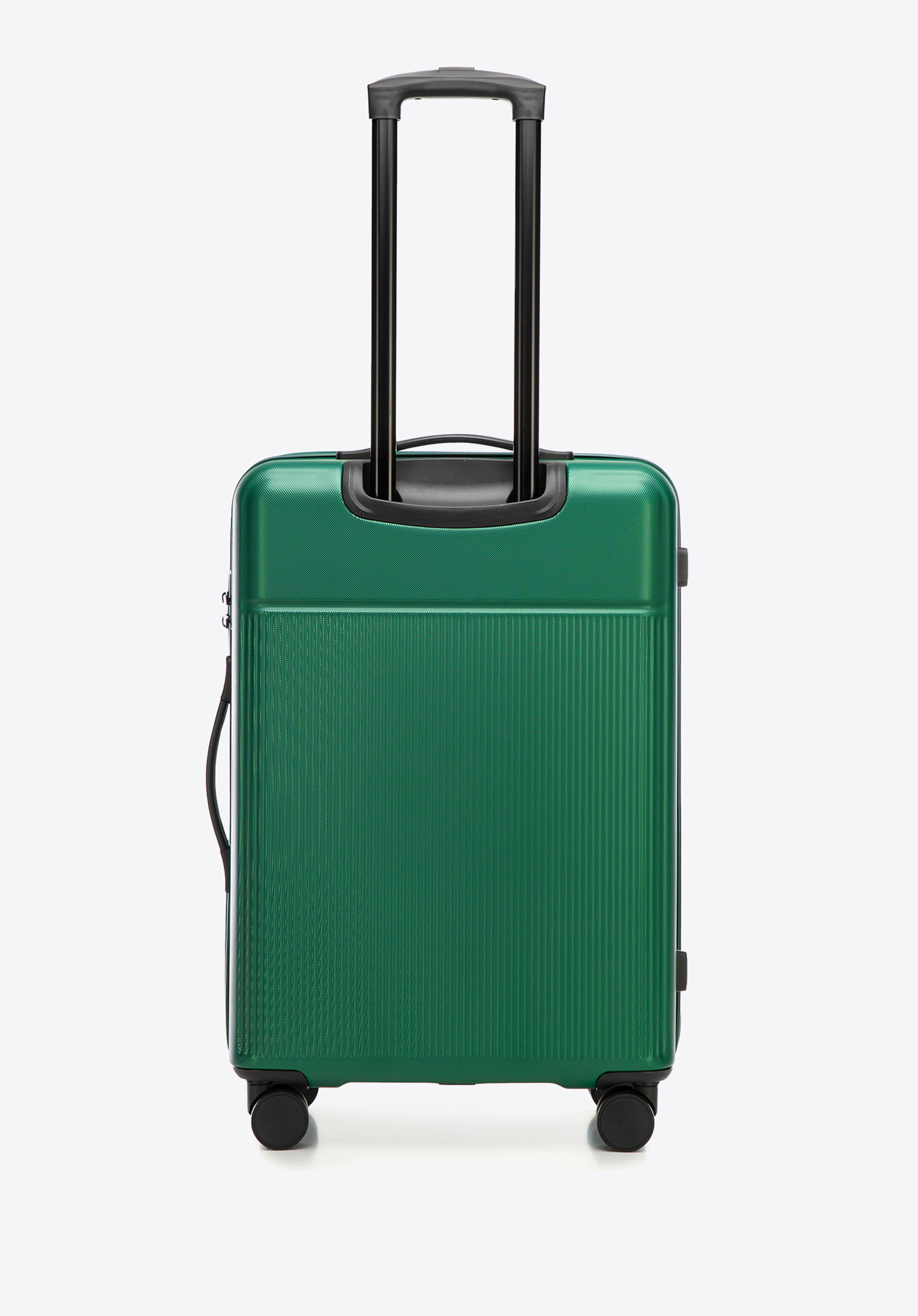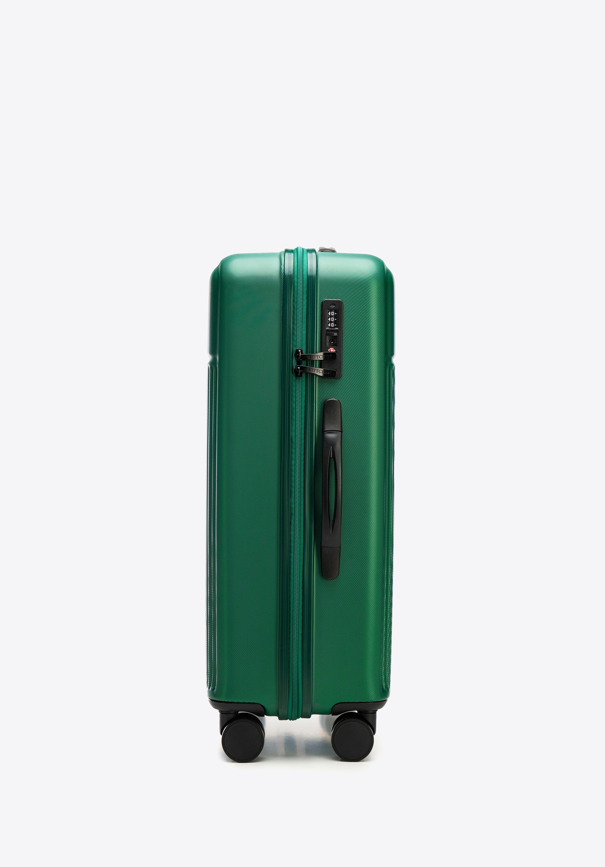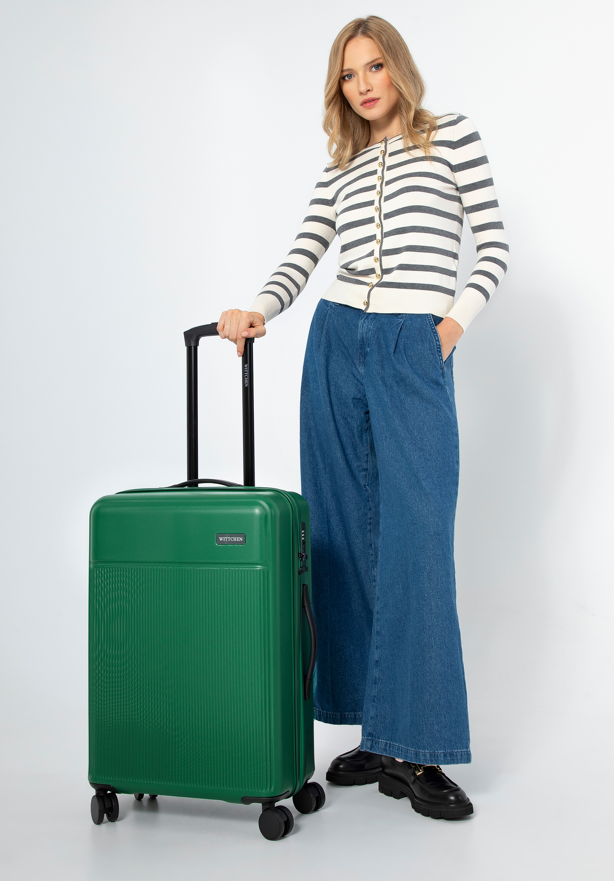 Ez a bőrönd tökéletesen kiegészíti utazásait. A klasszikus formát a dombornyomott függőleges csíkos minta hangsúlyozza. Az egész bőrönd kifinomultan fénylő ABS-ből készült. A két rekesznek köszönhetően könnyedén rendet tarthat, és több napra elegendő holmit pakolhat be. A négy dupla keréknek és a kihúzható fogantyúnak köszönhetően könnyen manőverezhető. A TSA zár gondoskodik a tartalom biztonságáról. Az ABS közepes méretű, függőleges pántokkal ellátott bőrönd stílusos és praktikus választás mindenki számára.