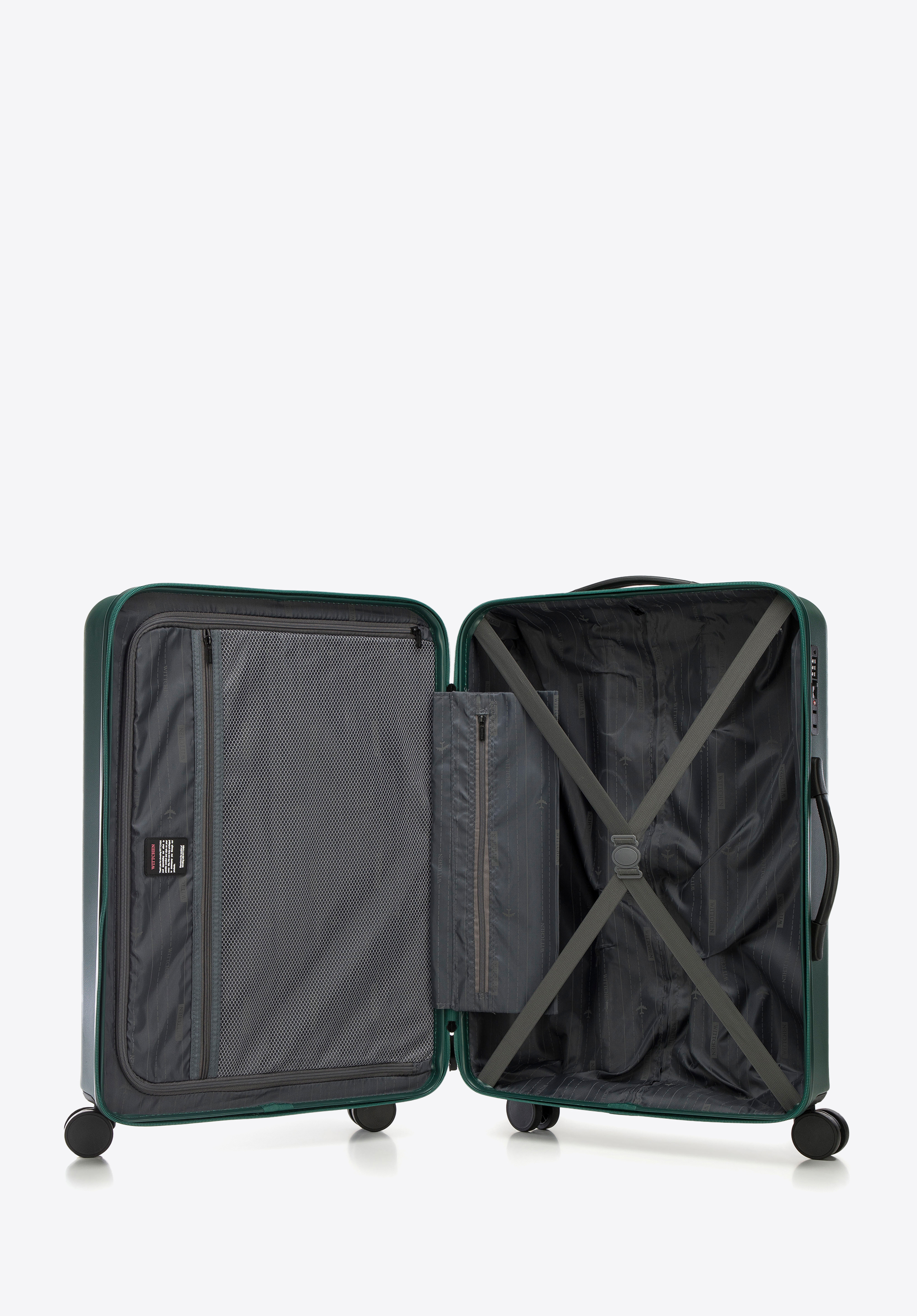 - TSA-rendszerrel ellátott zár, amely nagyon hasznos vámvizsgálat esetén - garantálja, hogy a bőrönd a zár sérülése nélkül kinyitható és újra lezárható;