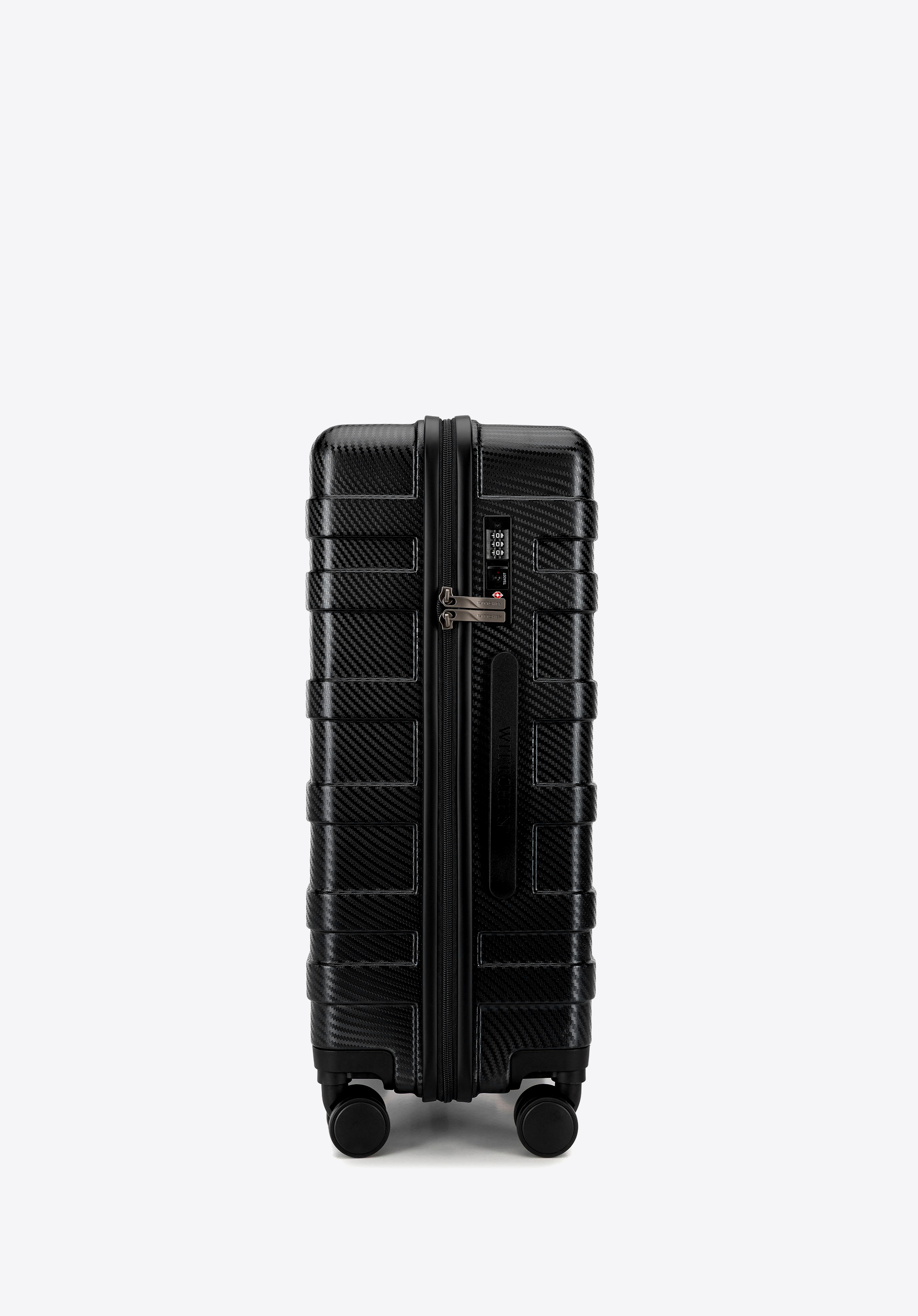 - Kényelem és stabilitás: Két fogantyú – a tetején és az oldalon – megkönnyíti az emelést, négy oldalsó láb pedig lehetővé teszi, hogy a bőröndöt biztonságosan helyezd vízszintes felületekre.