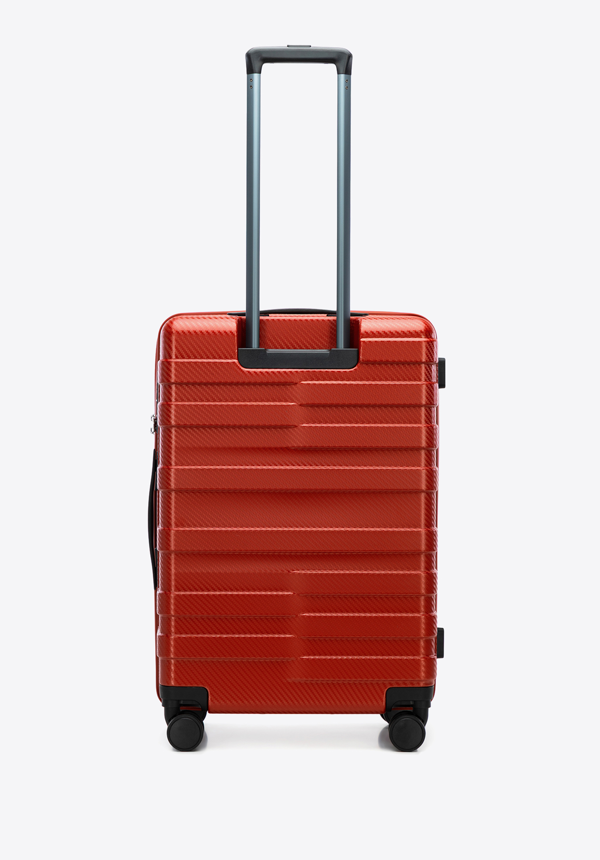- Kényelem és stabilitás: Két fogantyú – a tetején és az oldalon – megkönnyíti az emelést, négy oldalsó láb pedig lehetővé teszi, hogy a bőröndöt biztonságosan helyezd vízszintes felületekre.